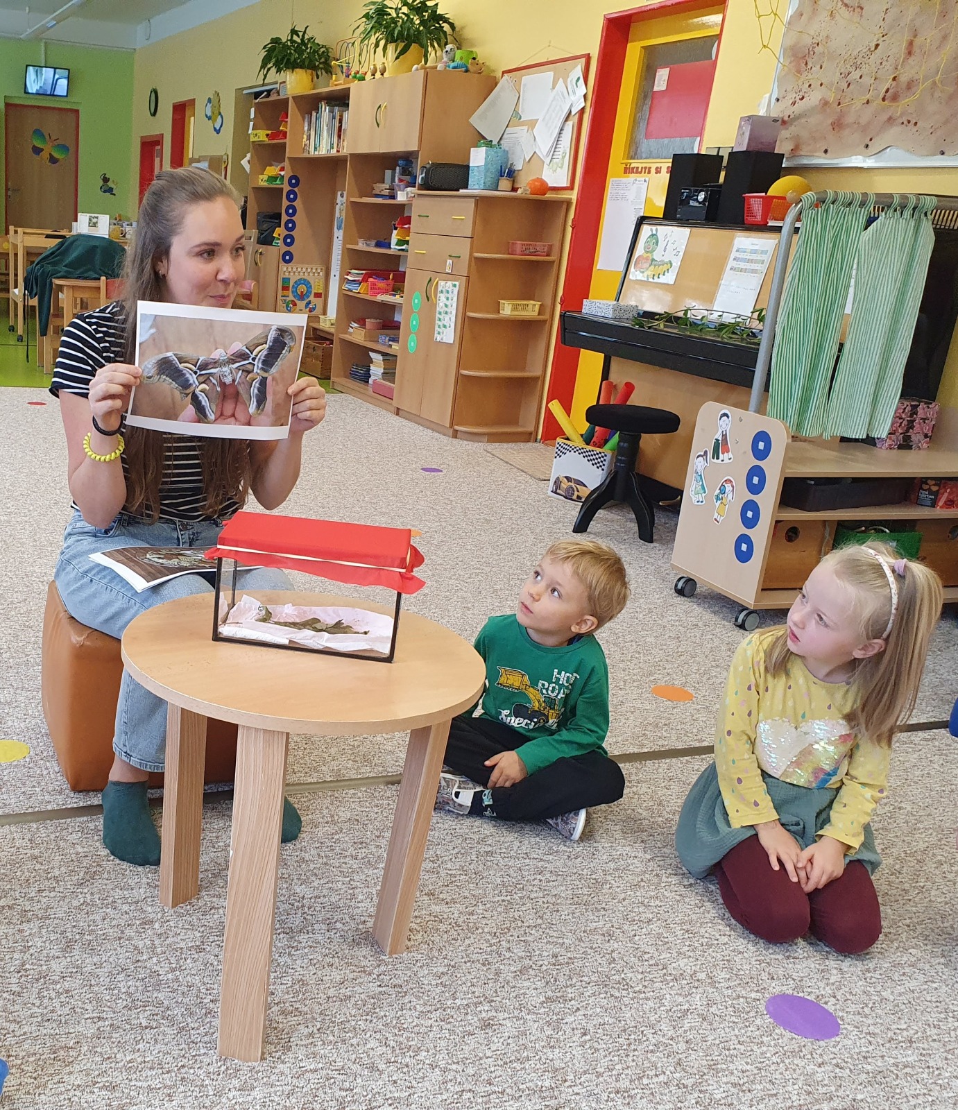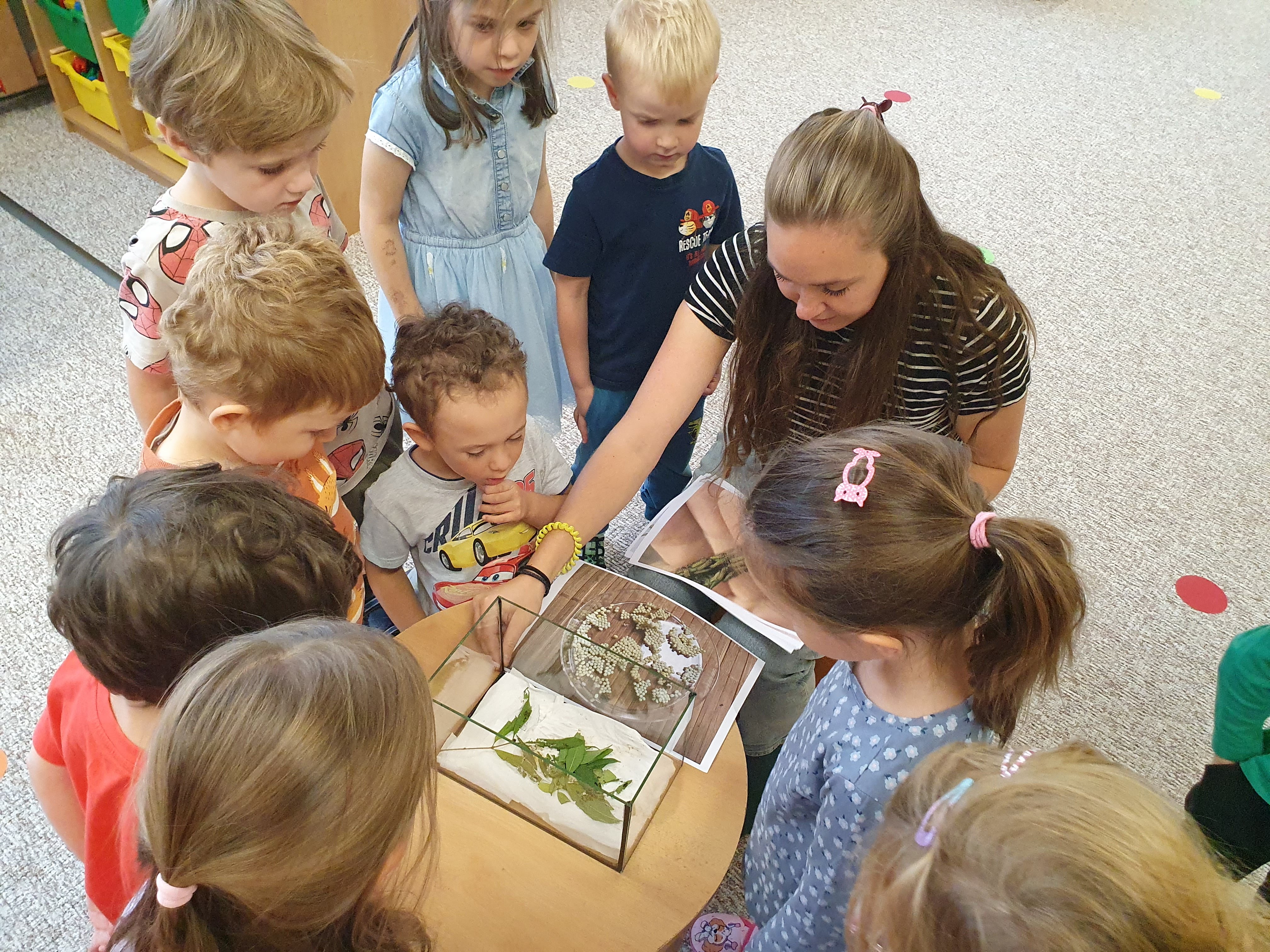 Z malinkatých vajíček se začínají líhnout housenky, které když se o ně budou děti dobře starat porostou,
