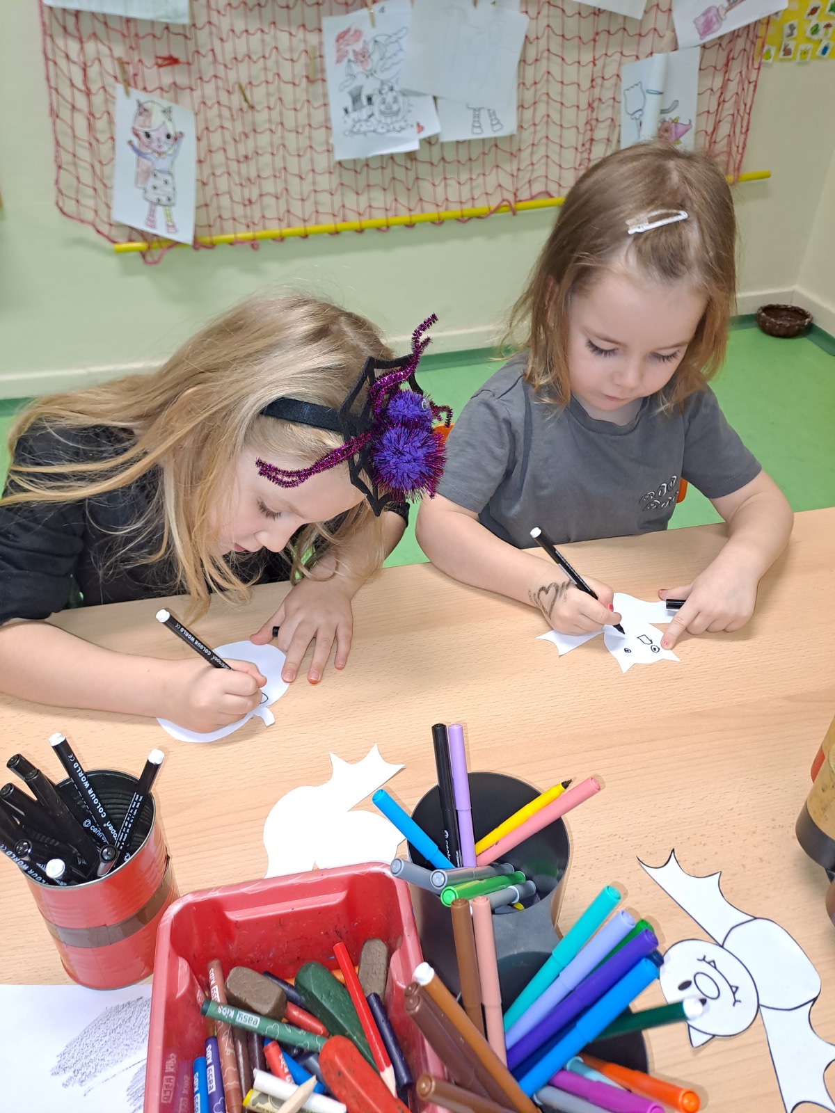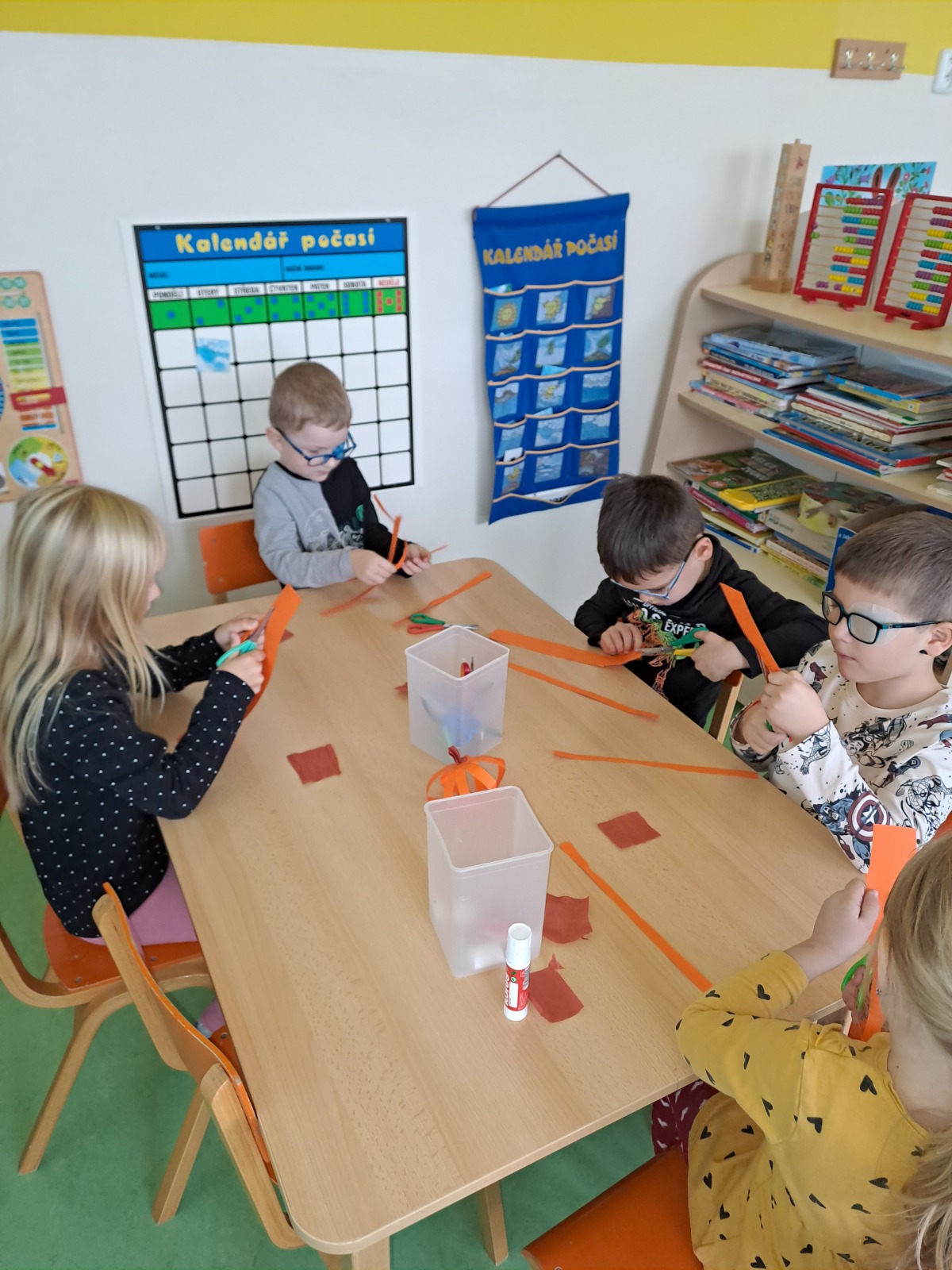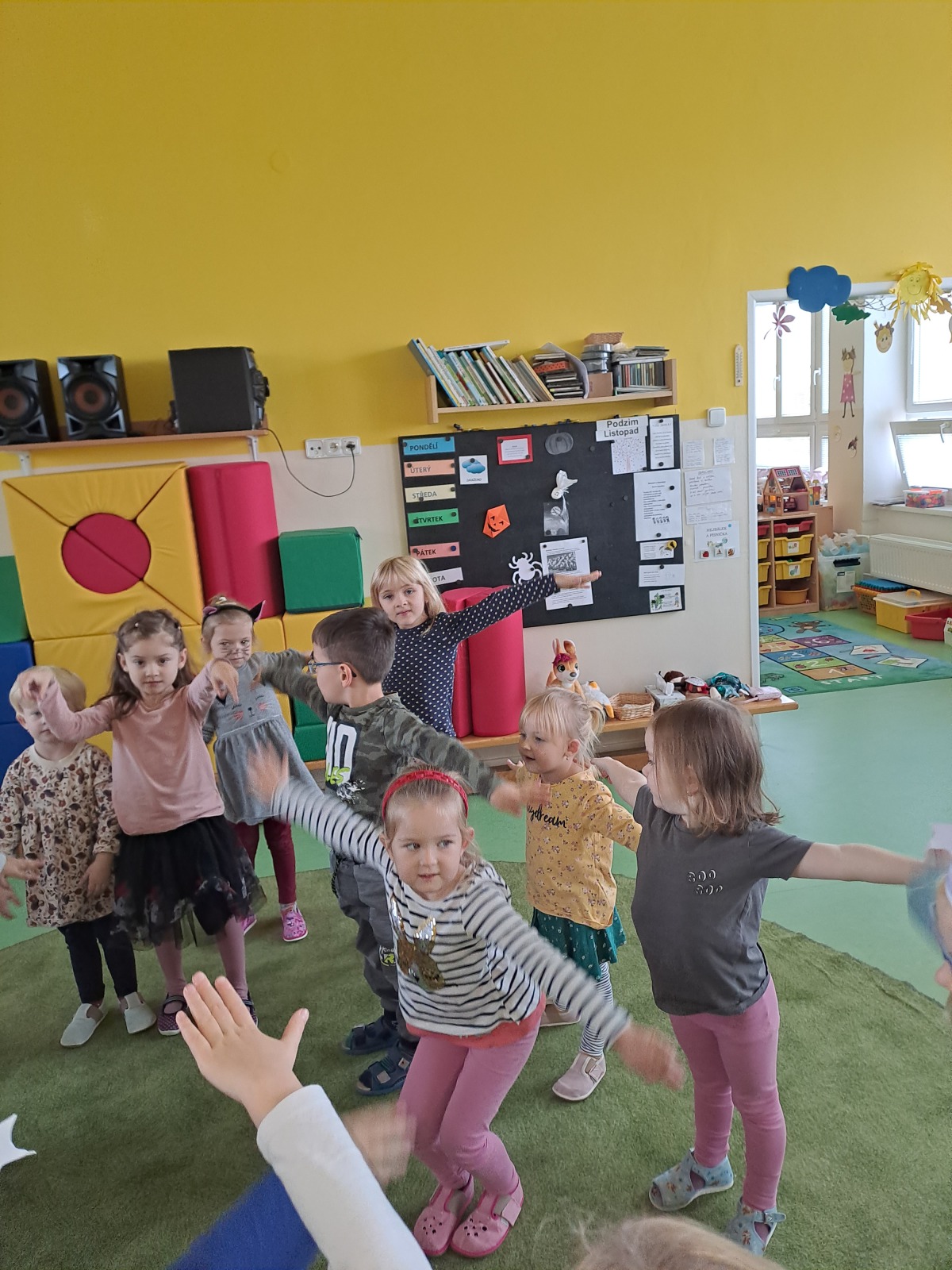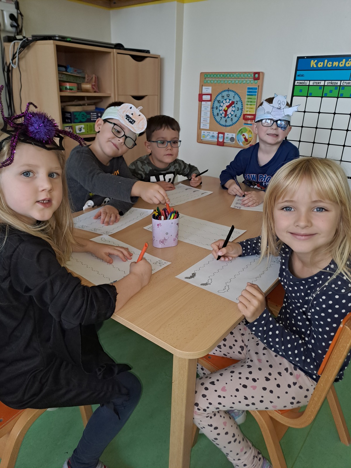 Kosíčci se seznamovali s pojmy " Dušičky a Halloween". Připomněli si podzimní zvyky u nás a v jiných zemích. Zavzpomínali na Dušičky v nebíčku. Hráli pohybové hry, tančili a tvořili. Tajemný až strašidelný týden se všem moc líbil.