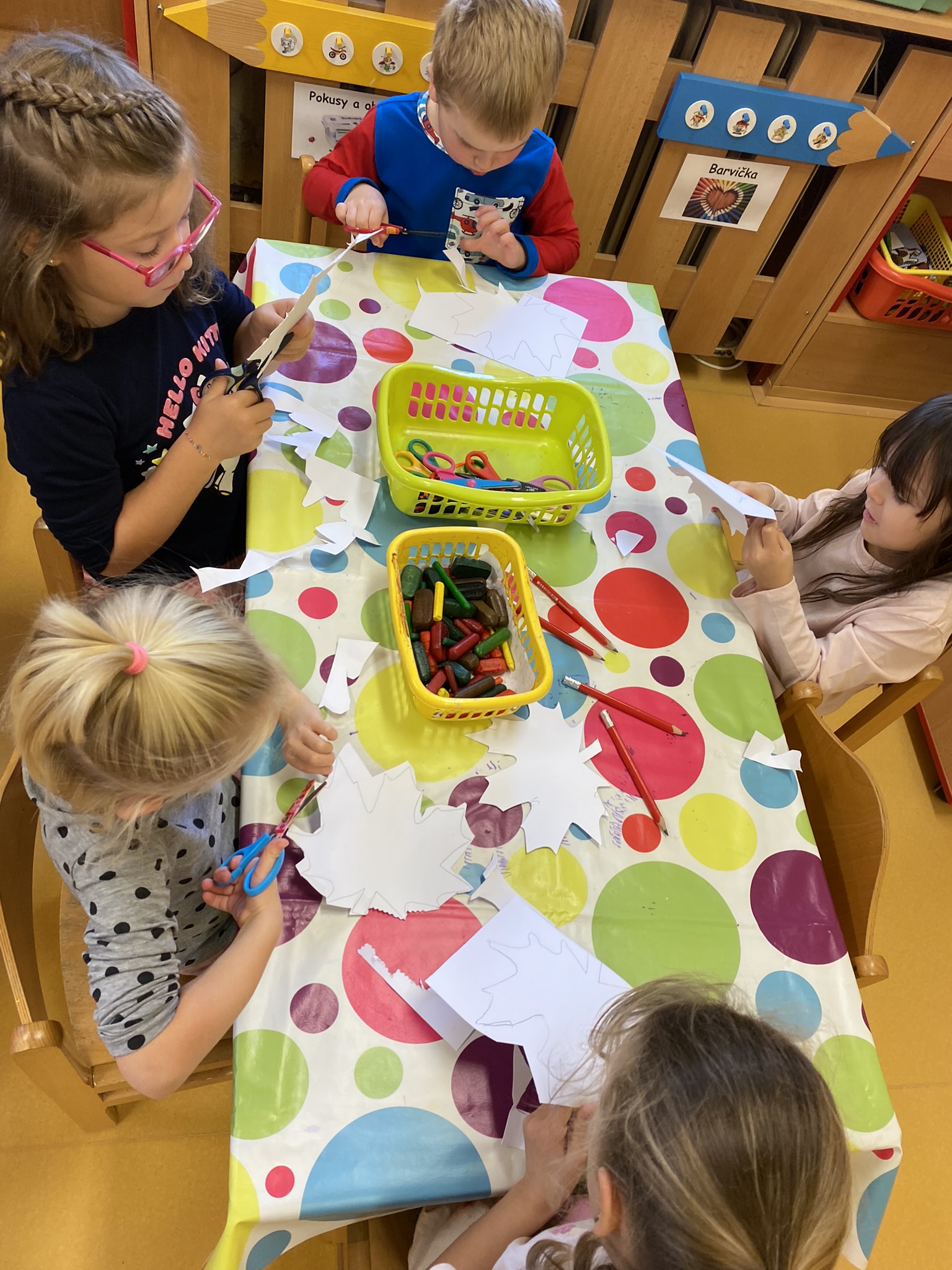 Uplynulý týden děti v MOTÝLKÁCH provázelo téma proměnlivého podzimního počasí a pouštění draků, které se promítalo do činností v centrech aktivit.