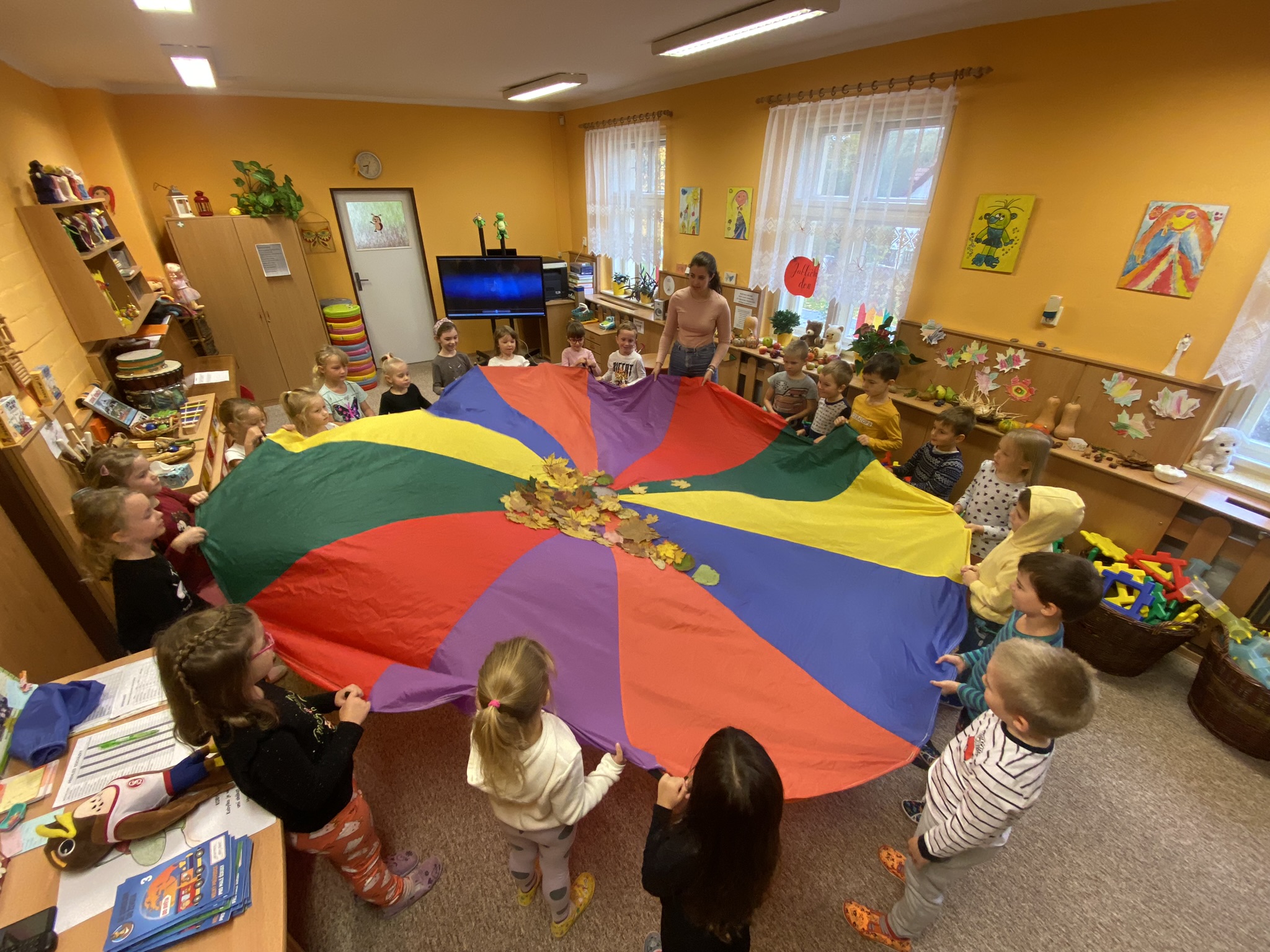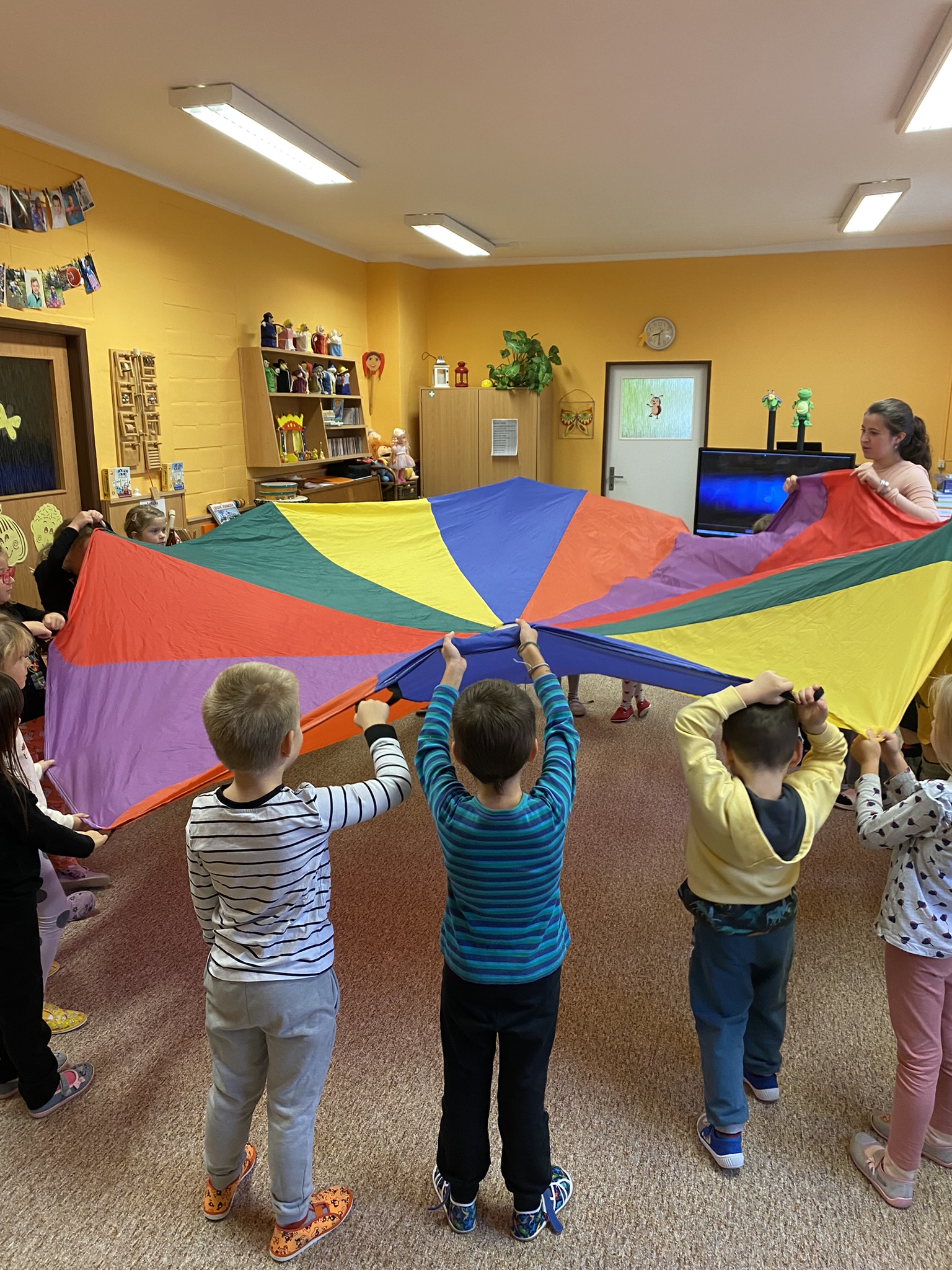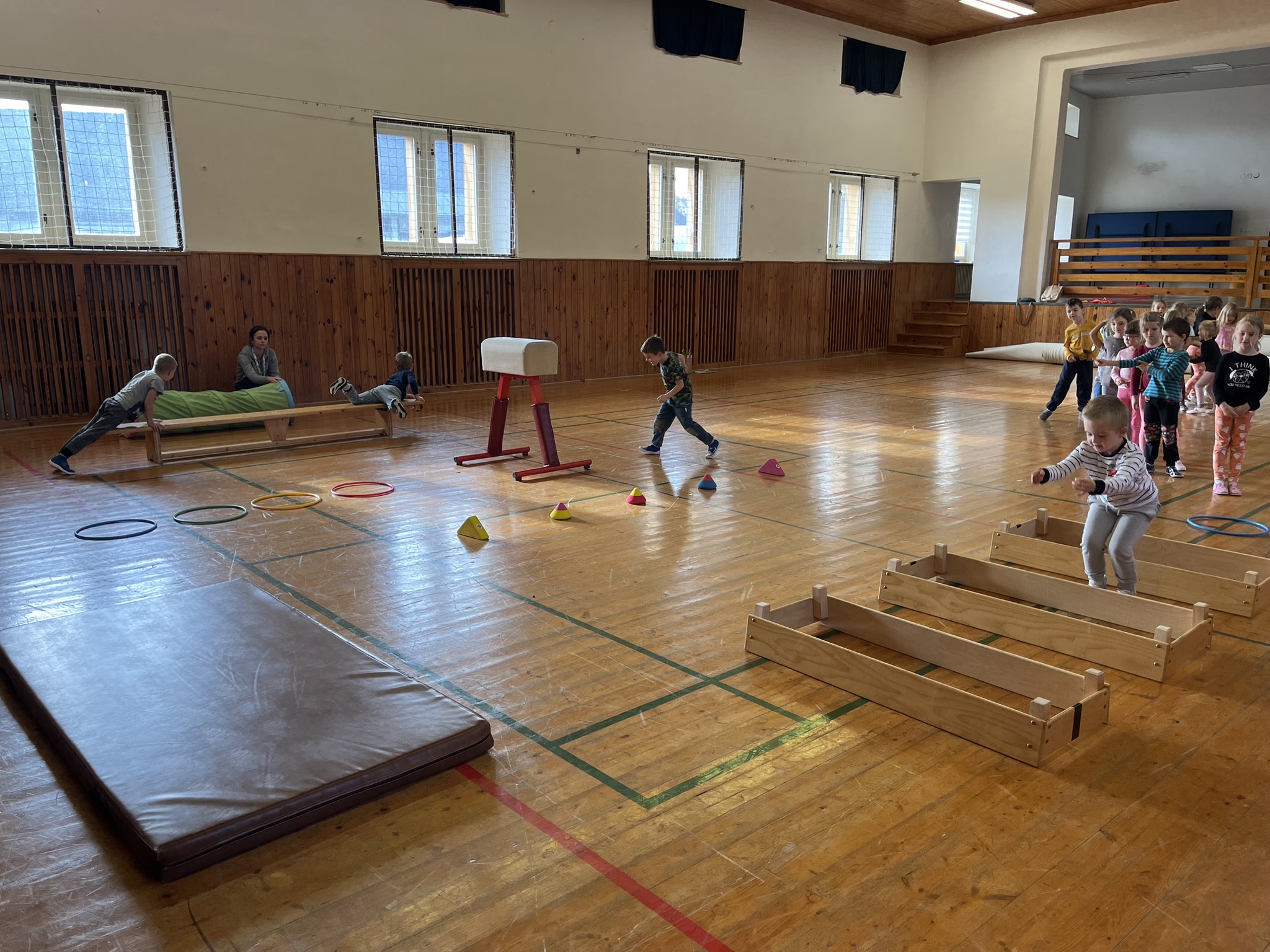 Úterní den patřil projektu Se Sokolem do života. Děti si v tělocvičně užily dopoledne plné pohybu, hru Semafor nebo Kaštánkovou rozcvičku.