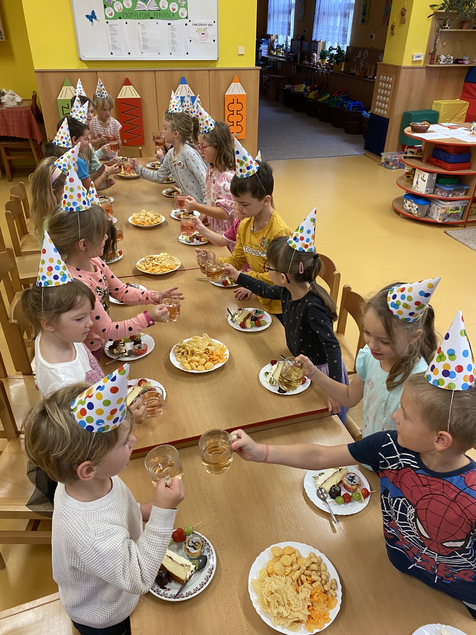 Páteční celý den se nesl v duchu oslav a veselí. V MOTÝLKÁCH proběhla druhá velká narozeninová oslava našich 6 oslavenců.