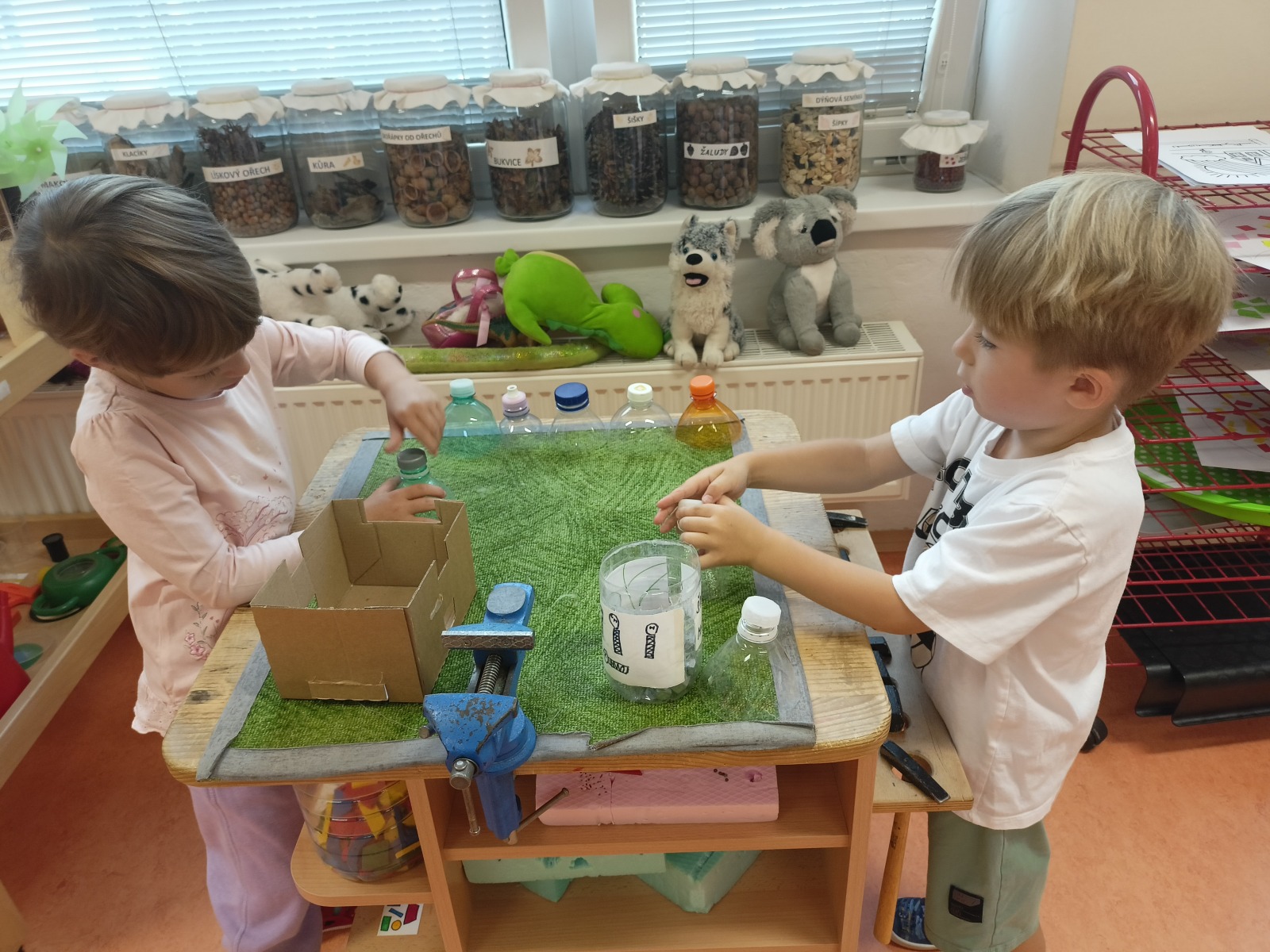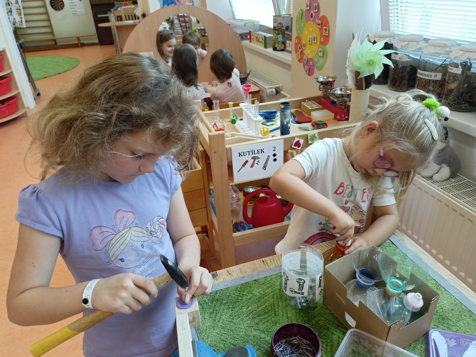 KUTÍLEK – šroubování PET víček a matiček, zaťukávání hřebíčku, práce se dřevem