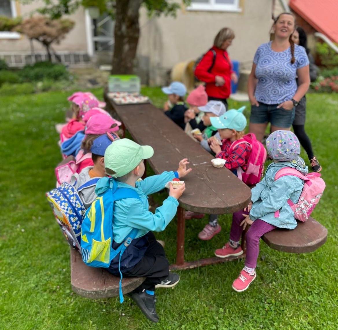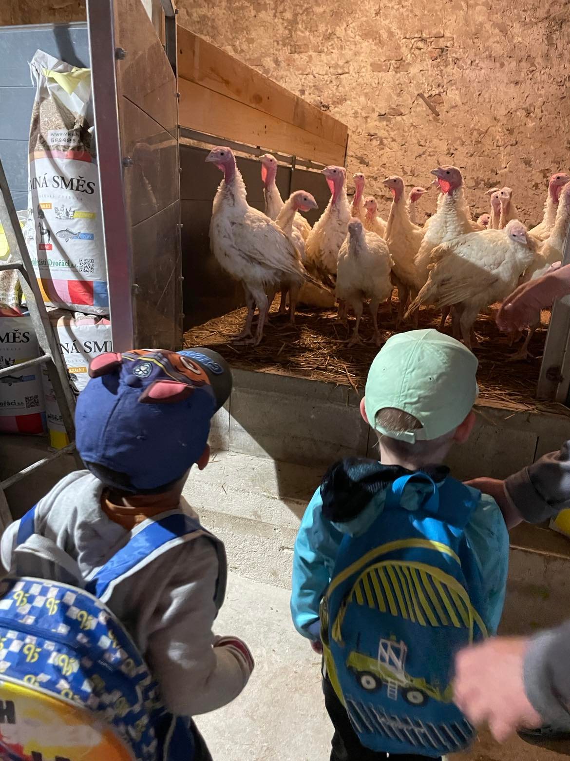 Potom děti zkontrolovaly všechna zvířátka v hospodářství u Hošků a paní Hošková měla pro děti připravené i pohoštění.