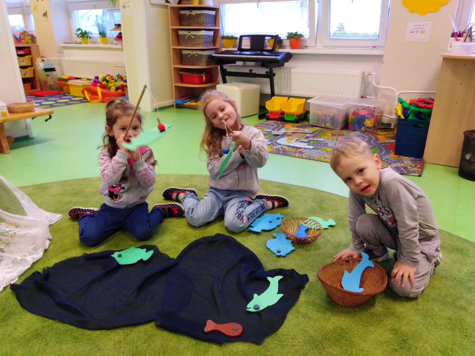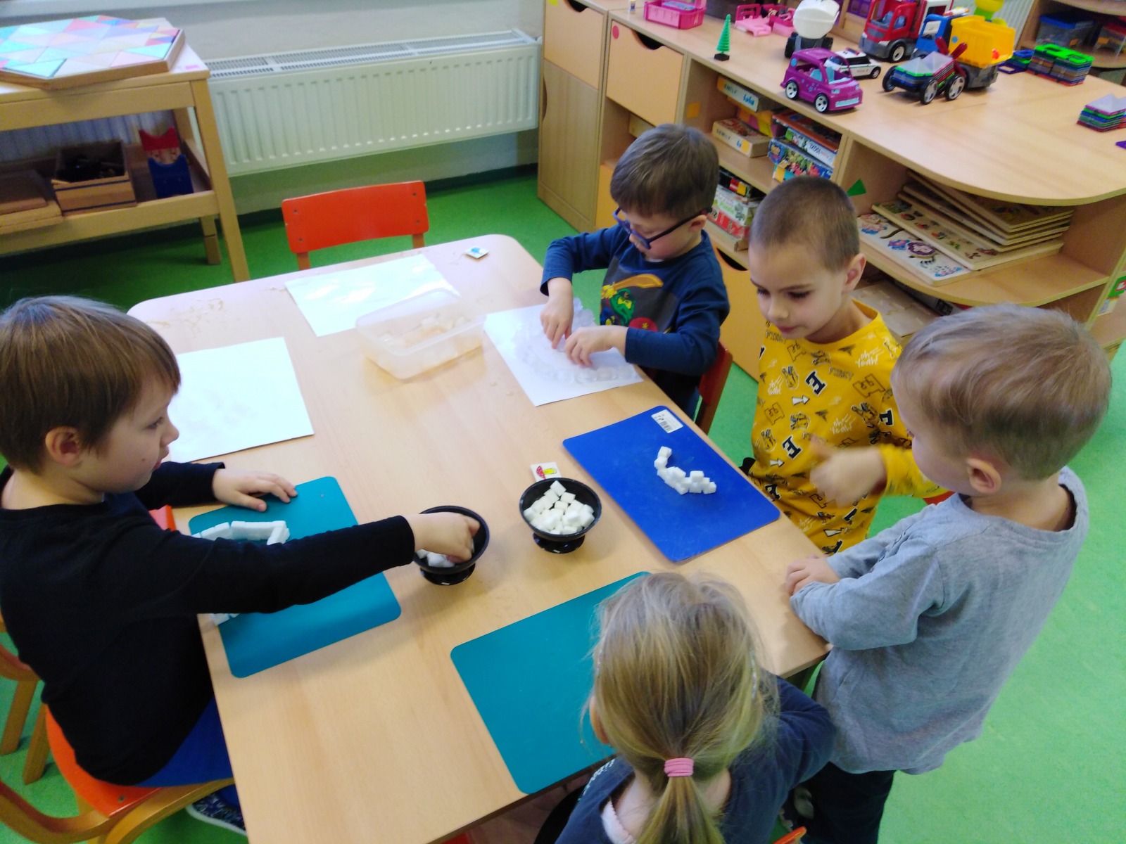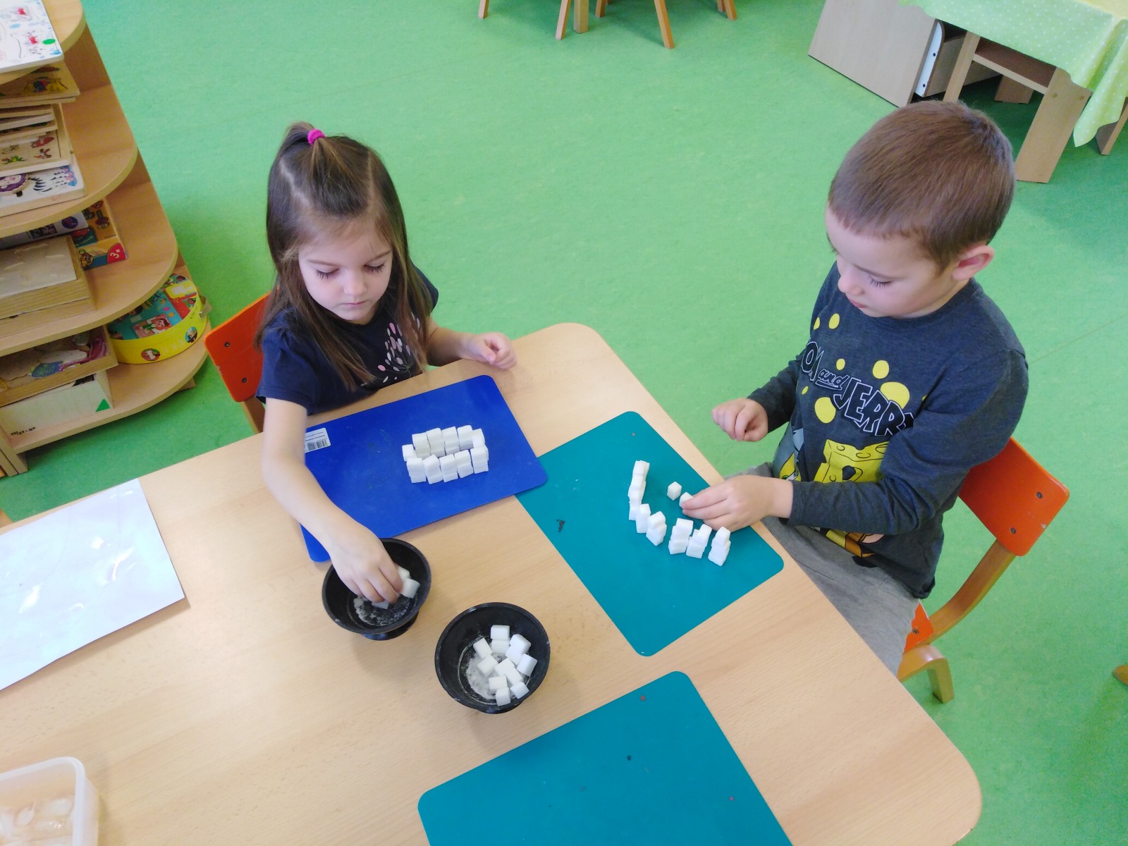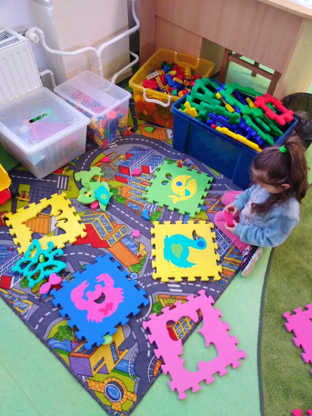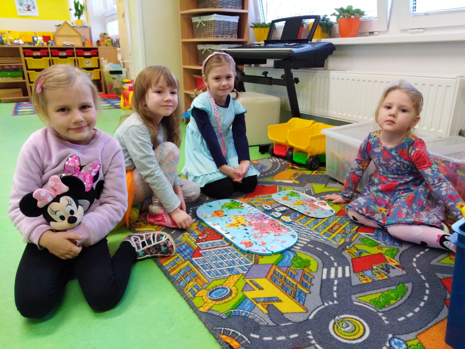 Ve Figurce skládaly lehčí a těžší puzzle - hledaly Grónsko a Antarktidu a v Kostičce skládaly pěnové puzzle.