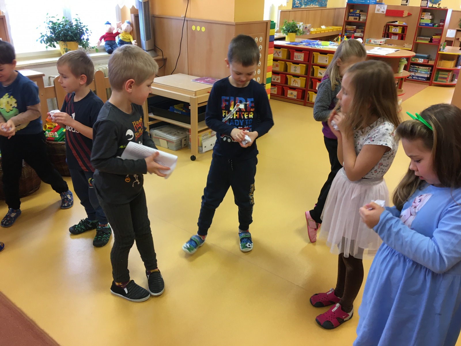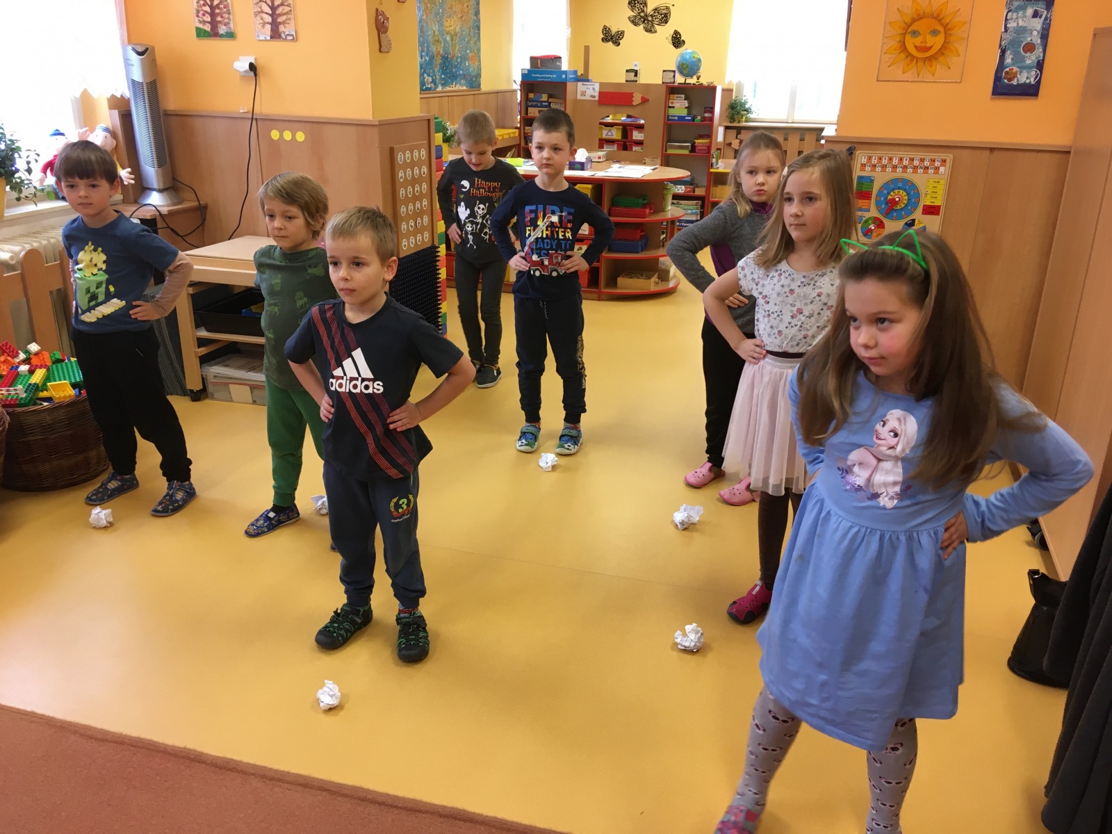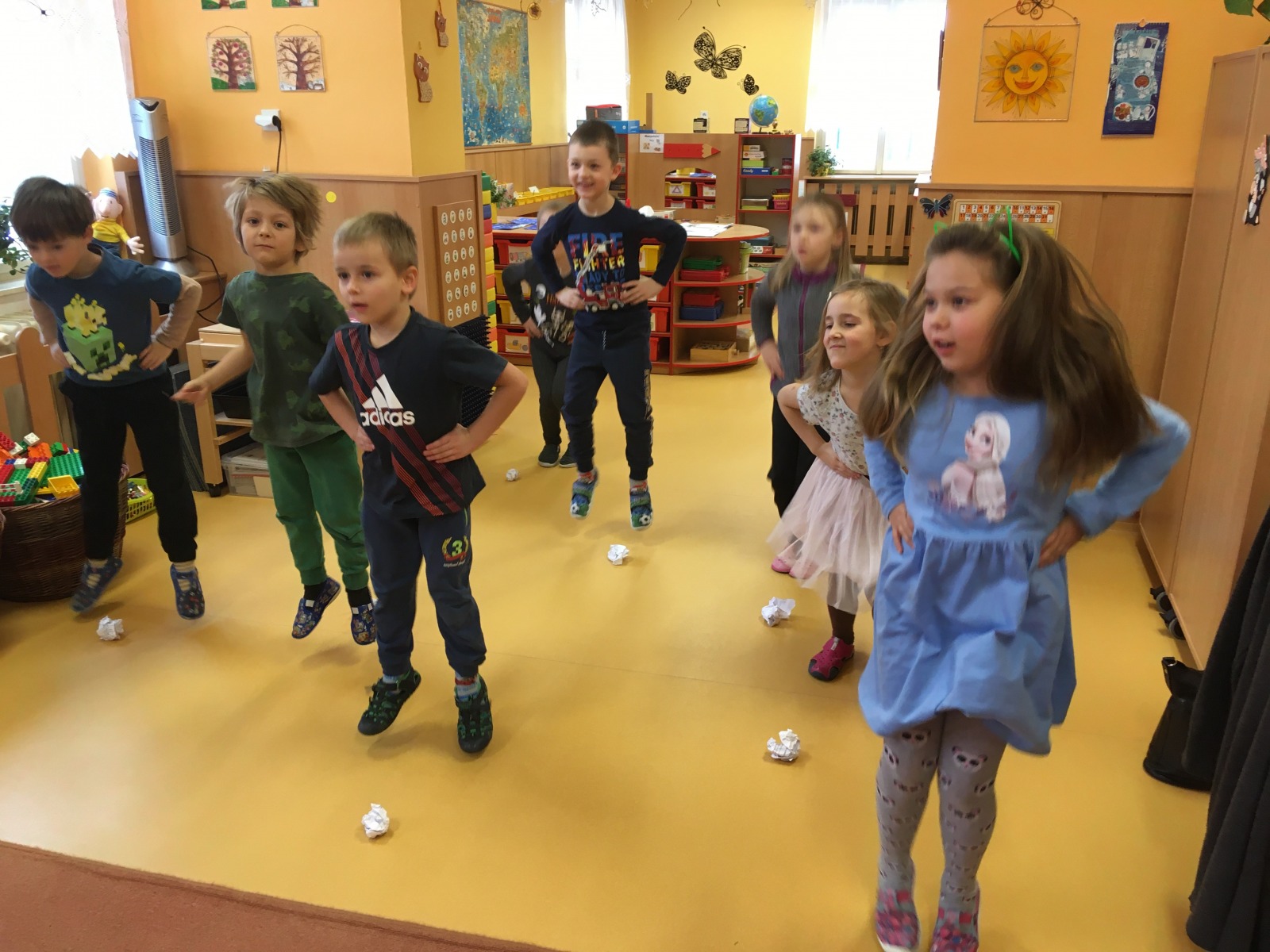 Během pohybových aktivit si děti vytvořily z papíru sněhové koule,