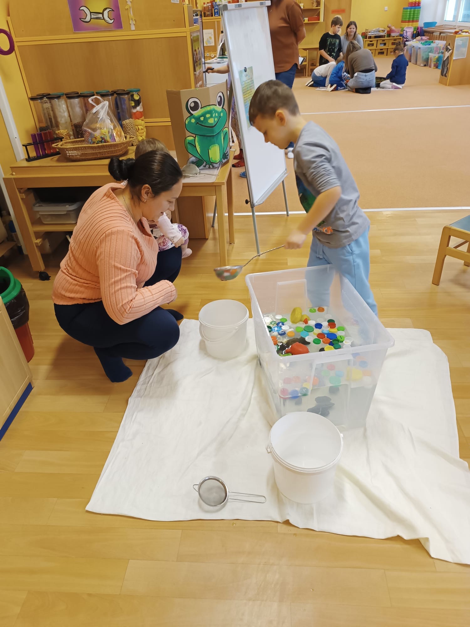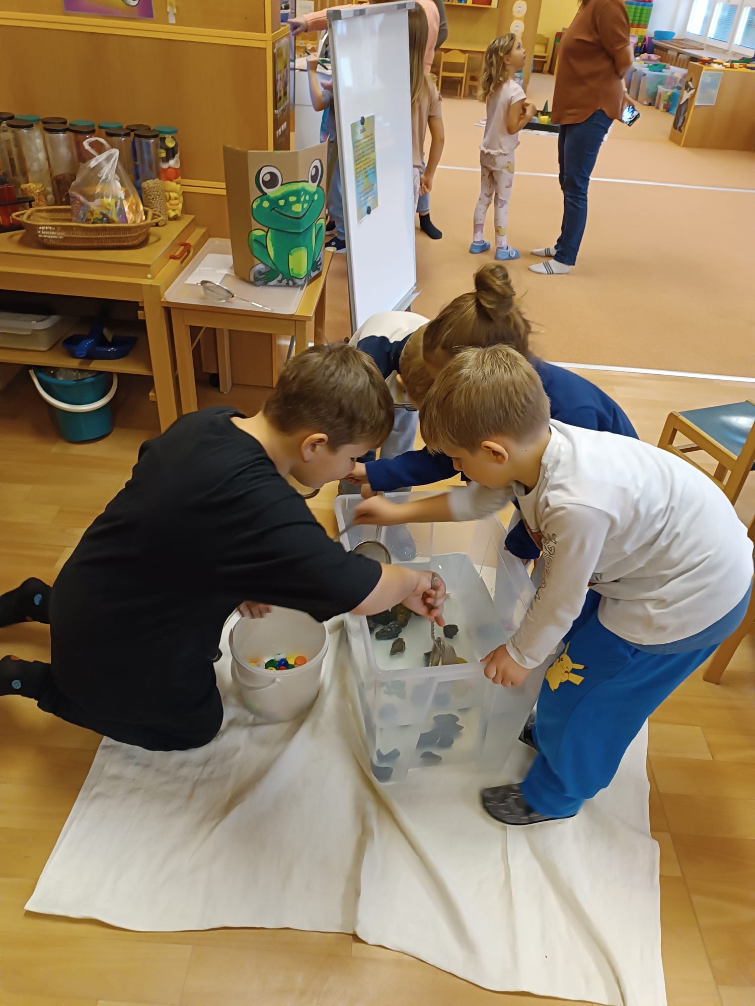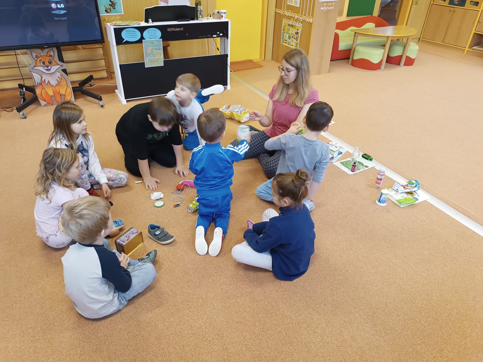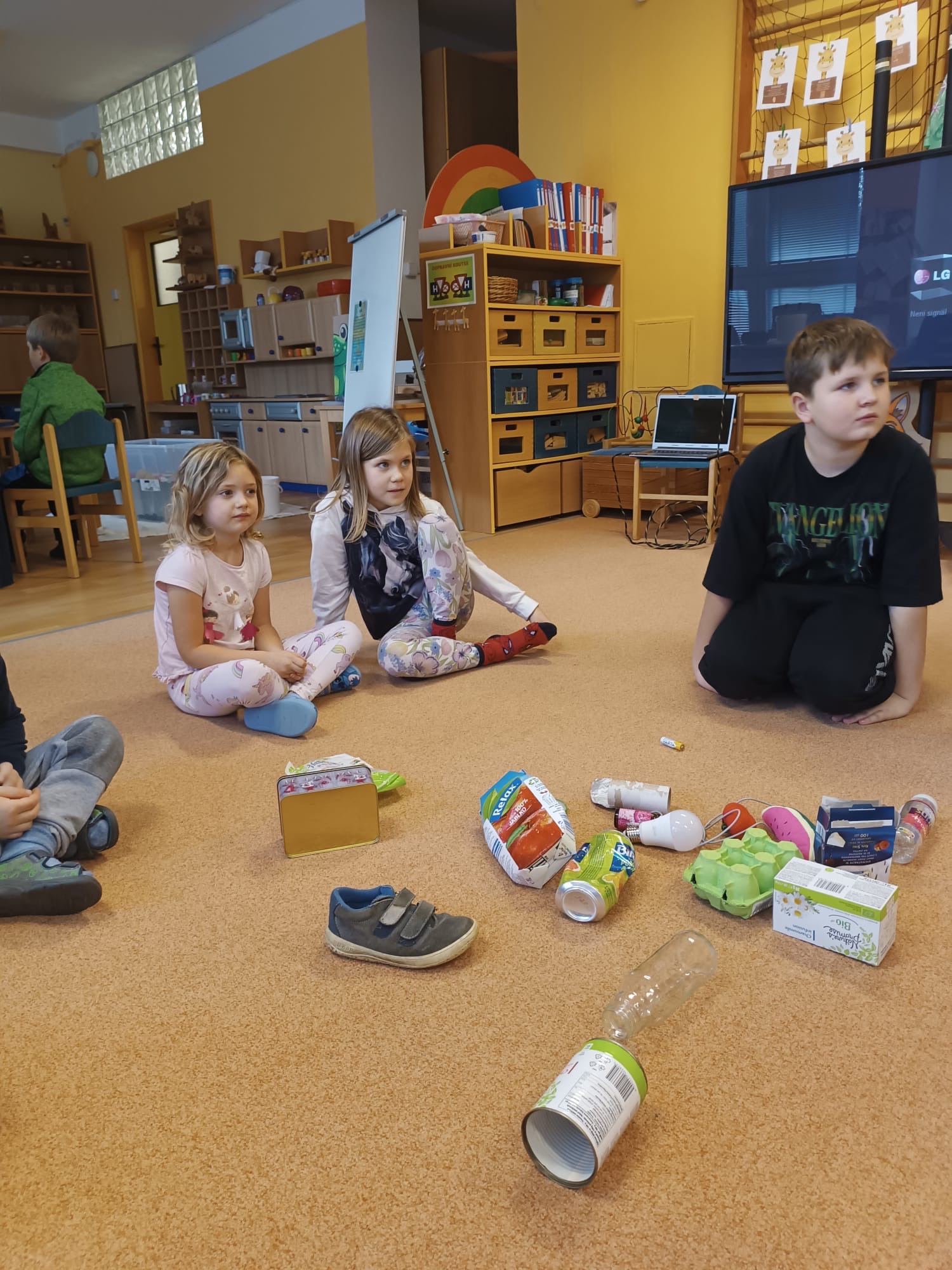 Zahrály si také pohybovou hru "Barevné kontejnery", která jim pomohla hravou formou pochopit princip třídění odpadu.