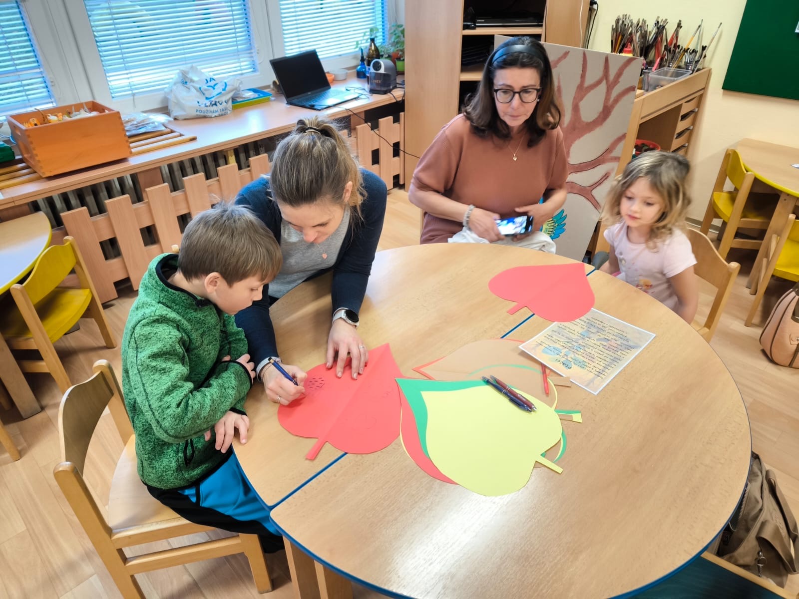 a nakonec pomohly ptáčkovi vytvořit list na náš ekostrom.