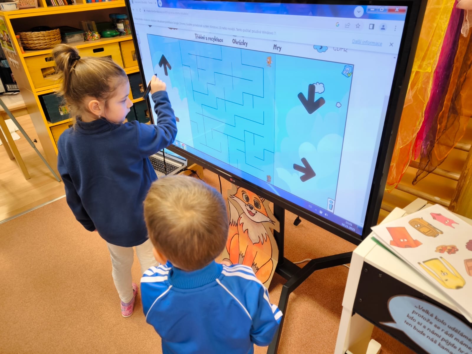 lišce na interaktivní tabuli přenesly bludištěm odpadky pryč z lesa