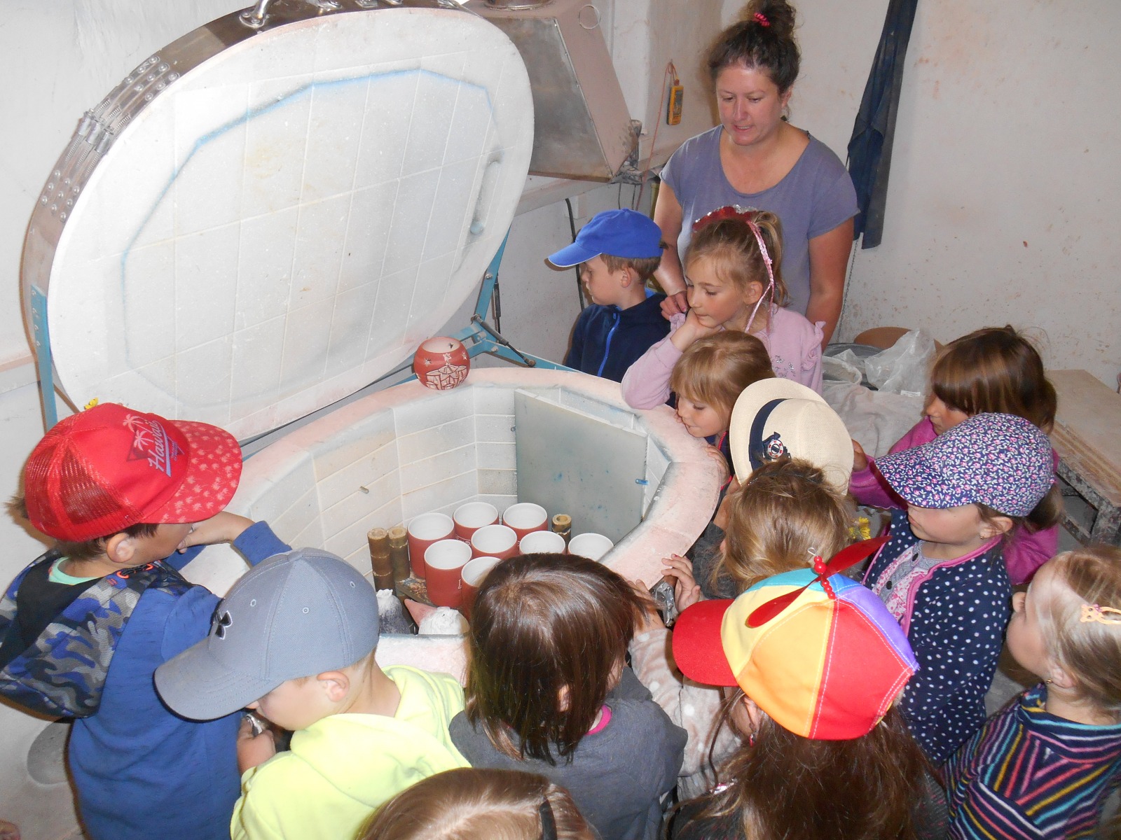 Popsala dětem, jak funguje pec na vypalování keramiky,