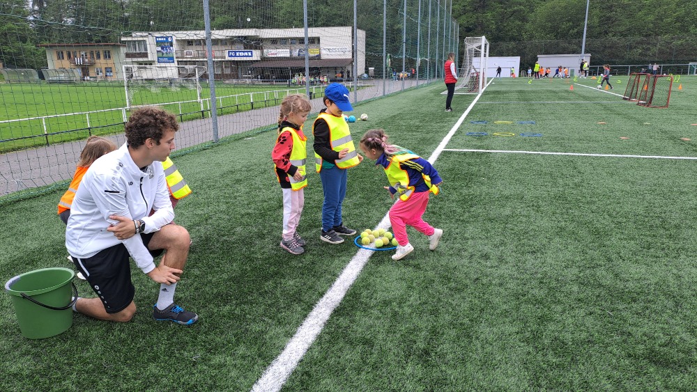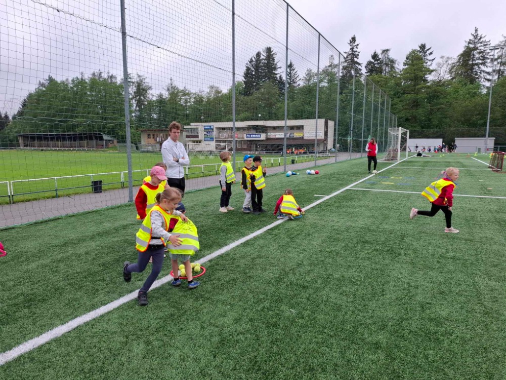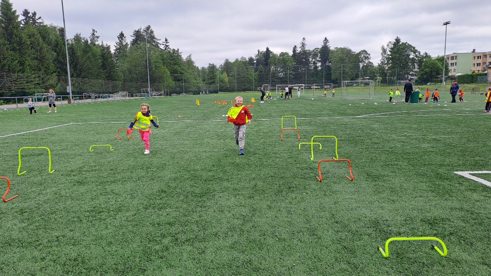 kde si pro ně trenéři společně s hráči připravili naprosto báječné dopoledne plné překážkových drah, fotbalových rozcviček a pohybových her.