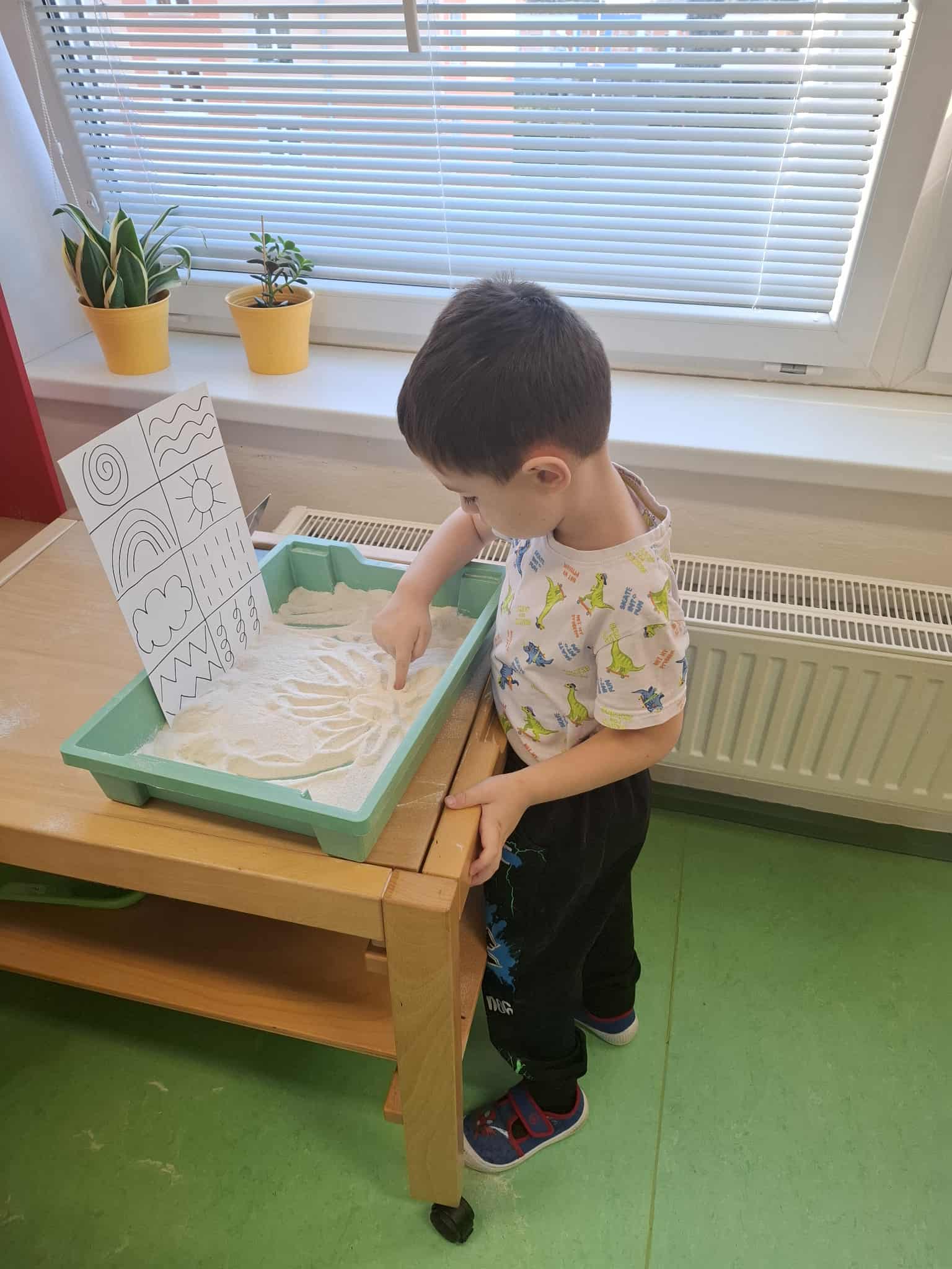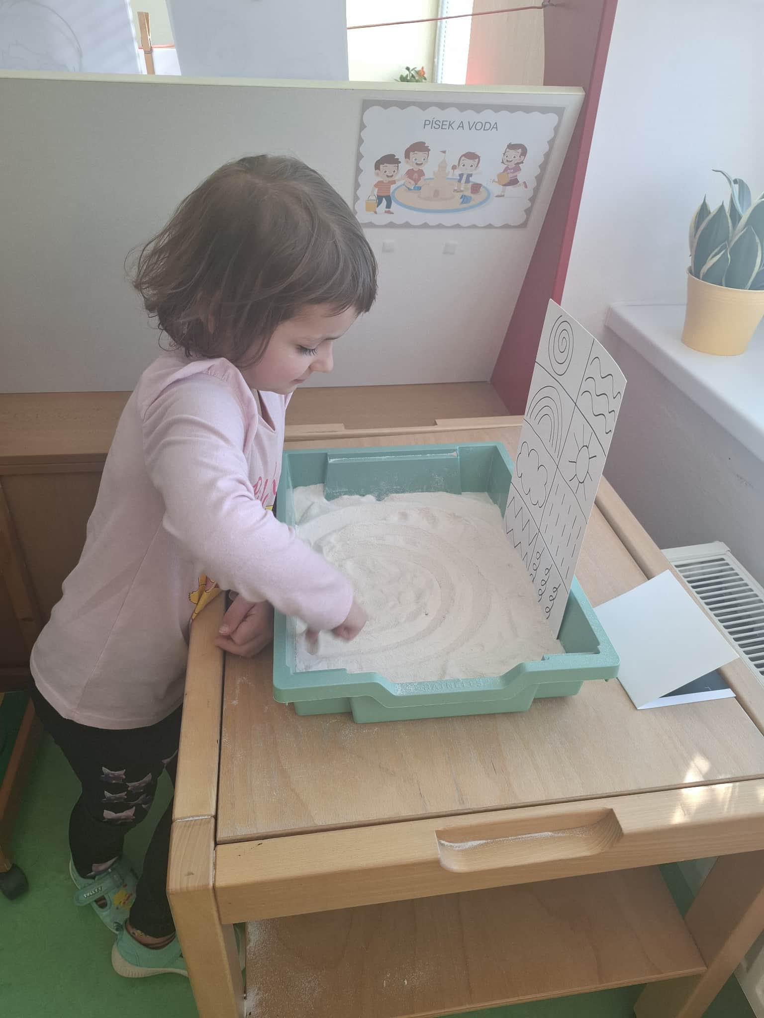 V centru Pohyb na děti čekala překážková dráha inspirovaná počasím, která je pěkně rozhýbala. V Dílničce zatloukaly hřebíčky podle předlohy a v Knihách a písmenech uvolňovaly ruku grafomotorickým kreslením do krupice.