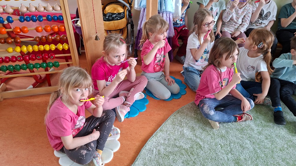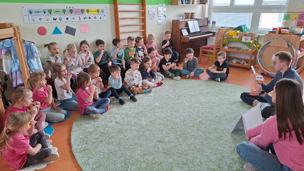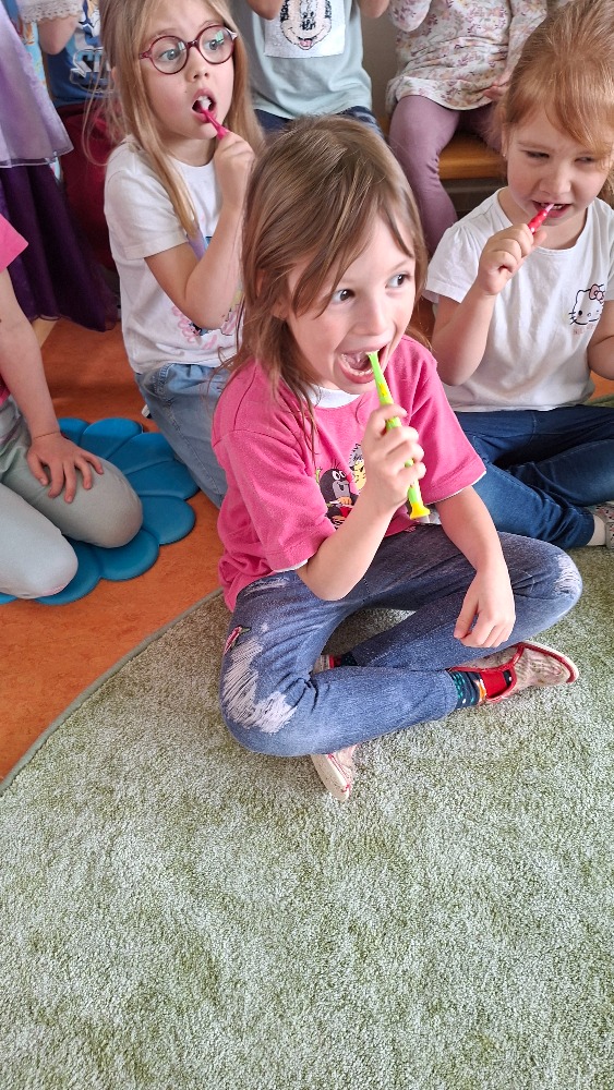 Povídali si s dětmi o tom, proč je důležitá pravidelná péče o chrup, a společně si vyzkoušeli správnou techniku čištění.