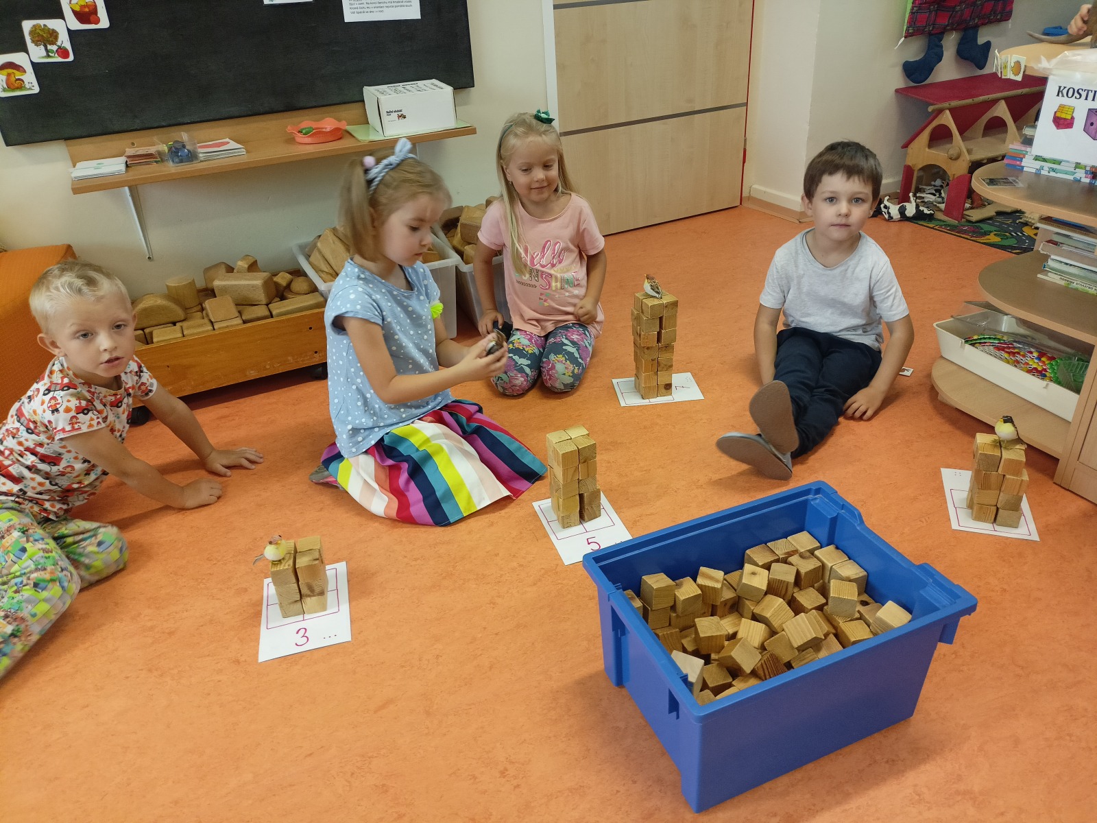 KOSTIČKA – děti stavěly stromy, starší podle číselného pravidla.