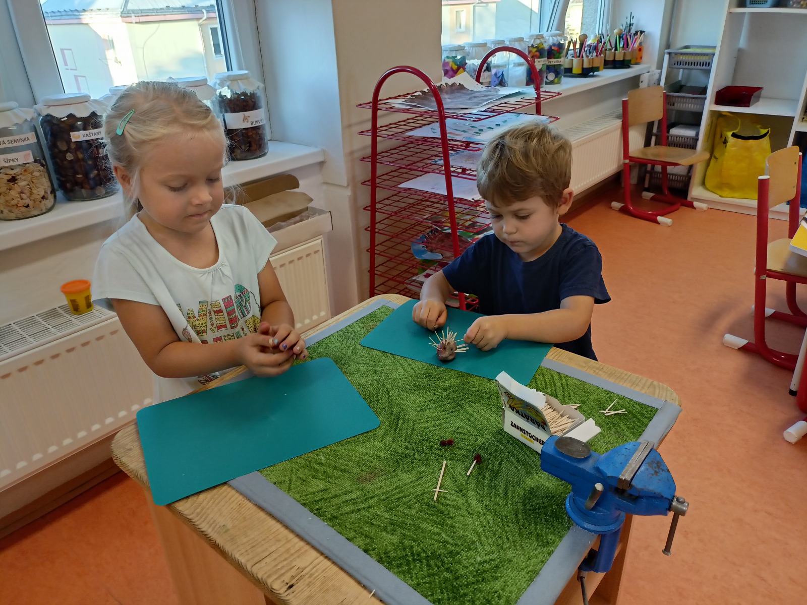 KUTÍLEK – děti modelovaly ježka a dotvářely párátky a přírodninami.