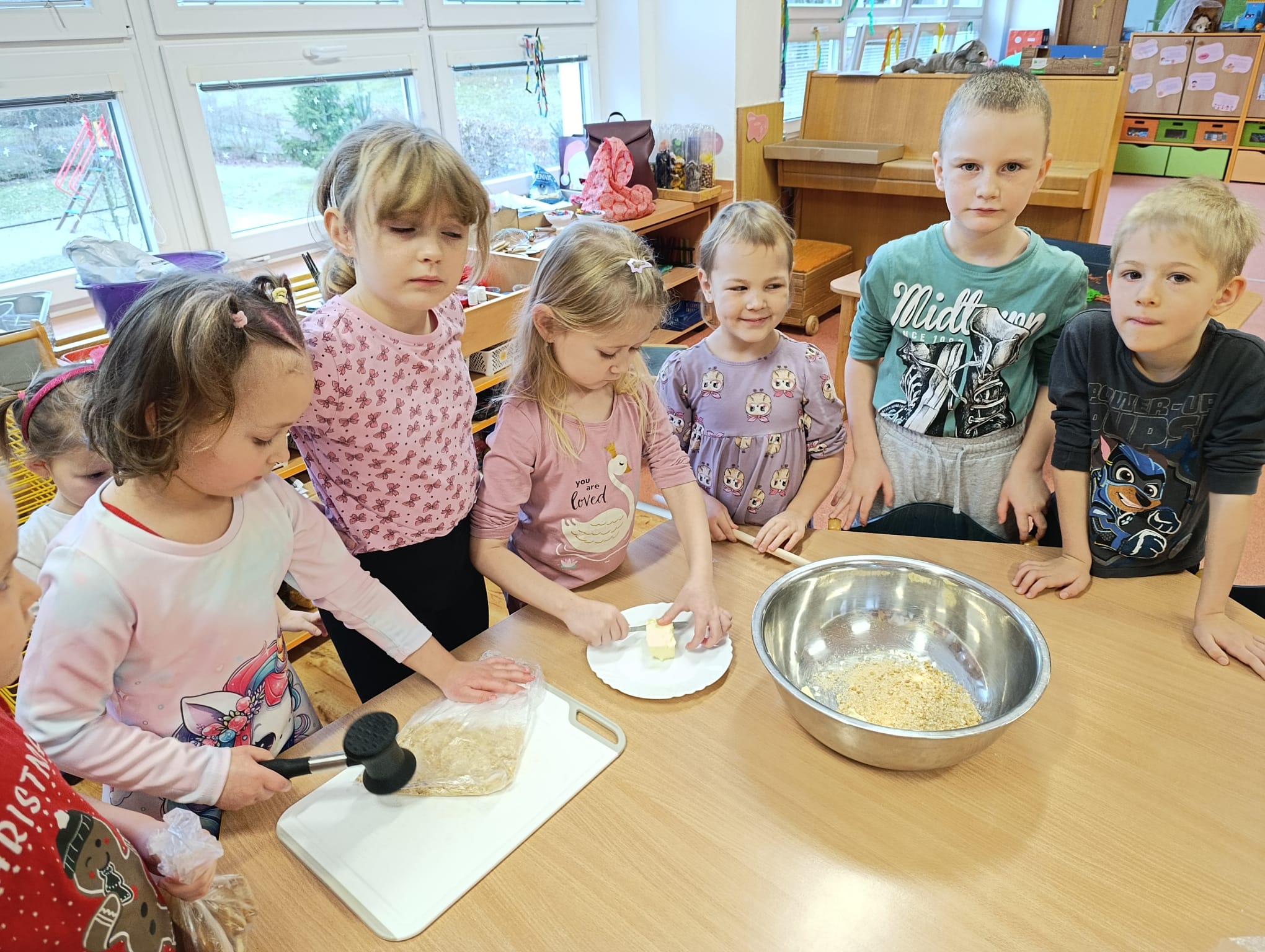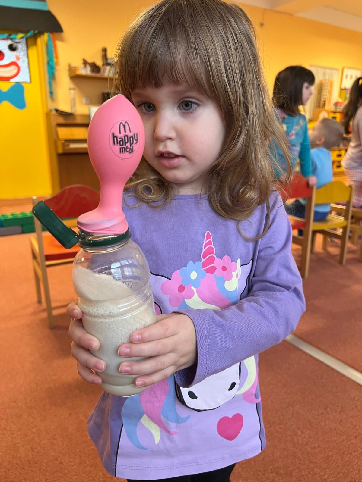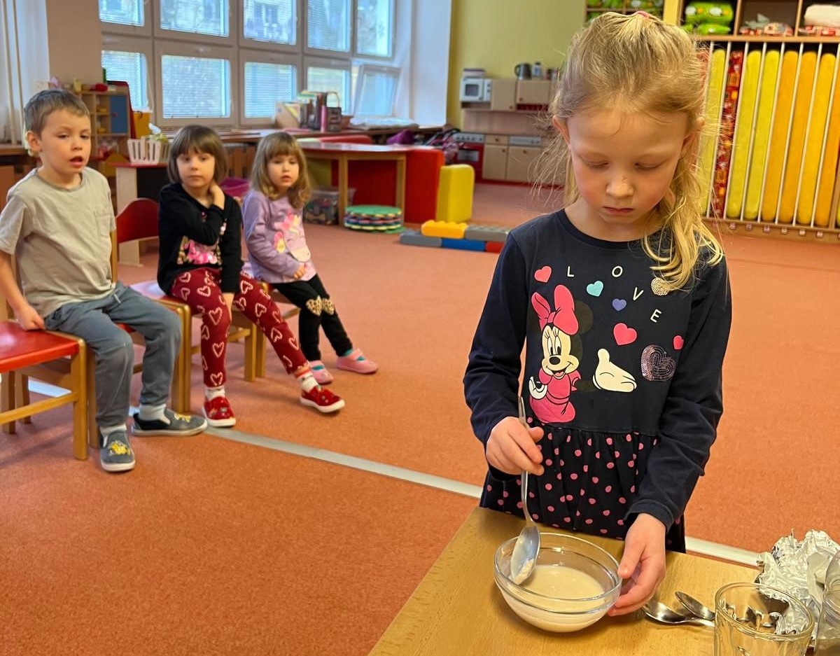 Děti z Veverky se pustily do malé „pekařské“ výzvy. Společně připravily kvásek, seznámily se s jeho vznikem, pozorovaly, jak pracuje a postupně se proměňuje. Zároveň se učily trpělivosti při čekání na výsledek. Také si zahrály pohádku „O Koblížkovi“ a vyzkoušely si roli malých herců.