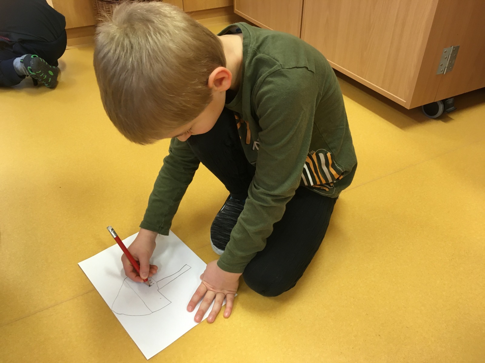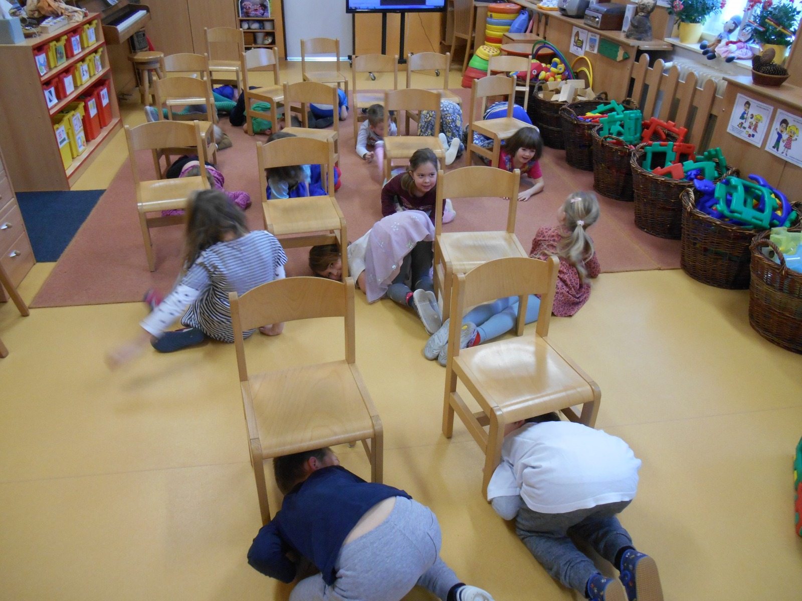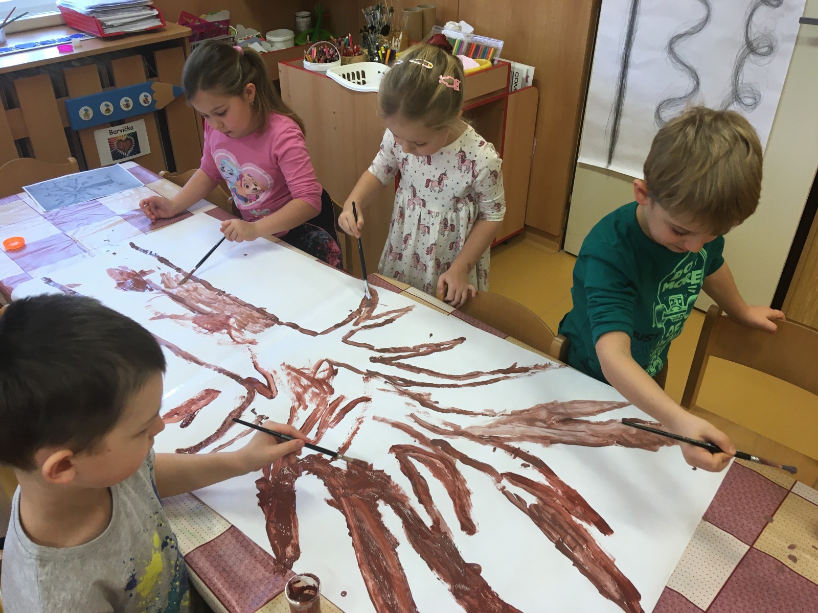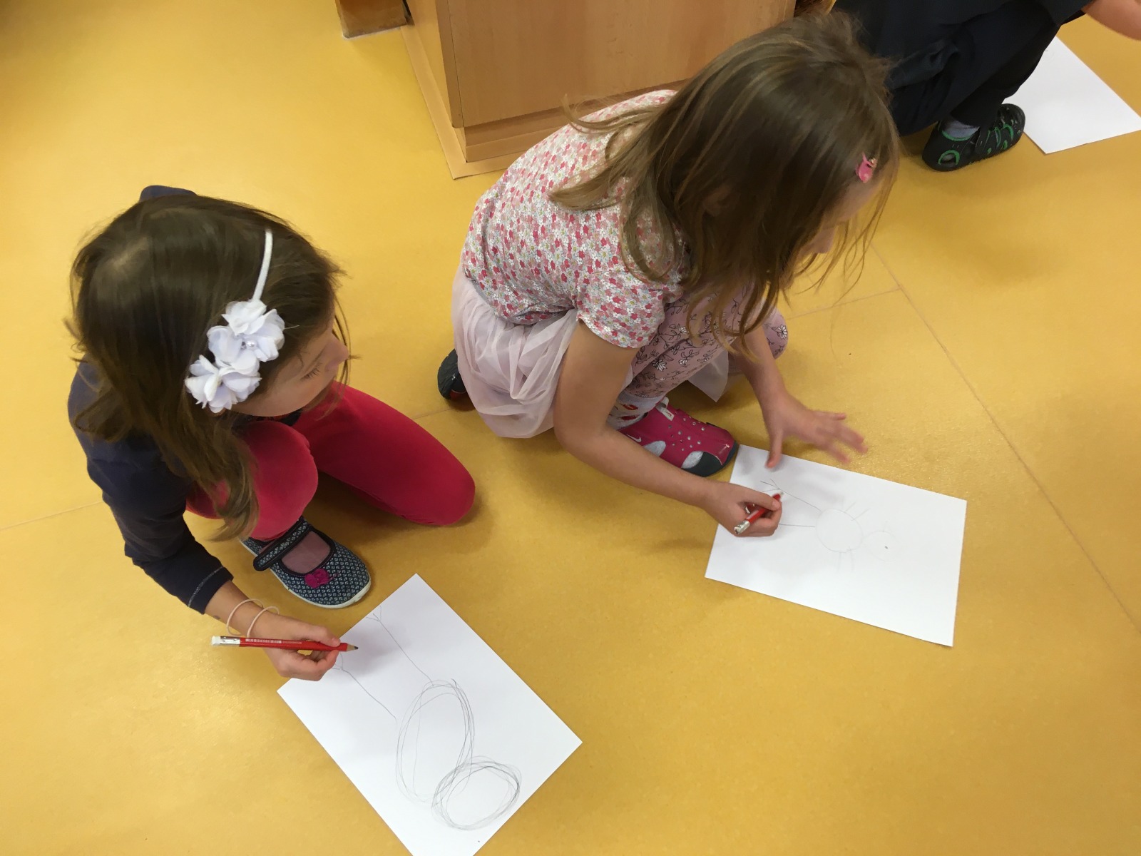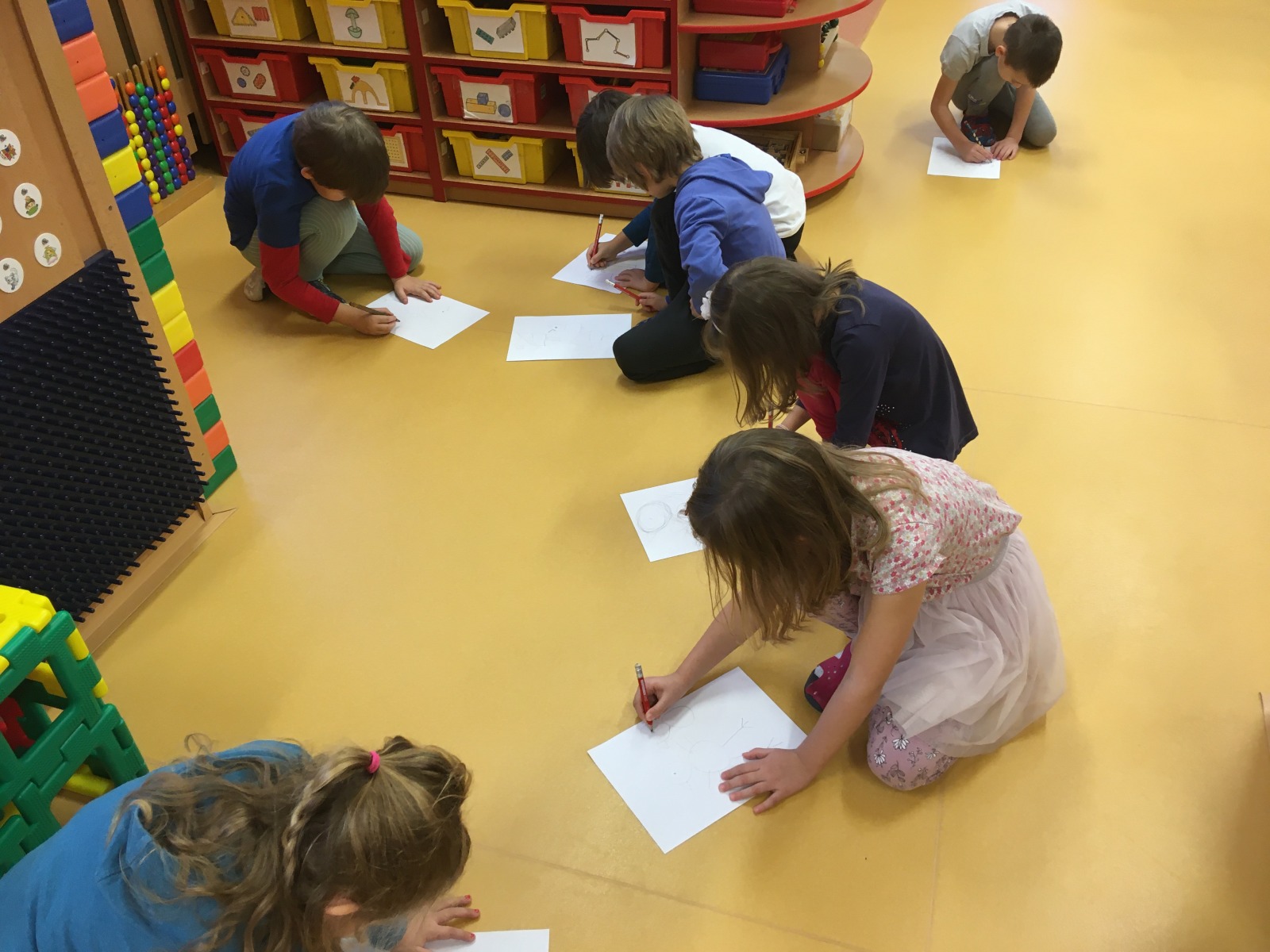 Děti si vyzkoušely také grafomotoriku v kleče na zemi se správným držením těla