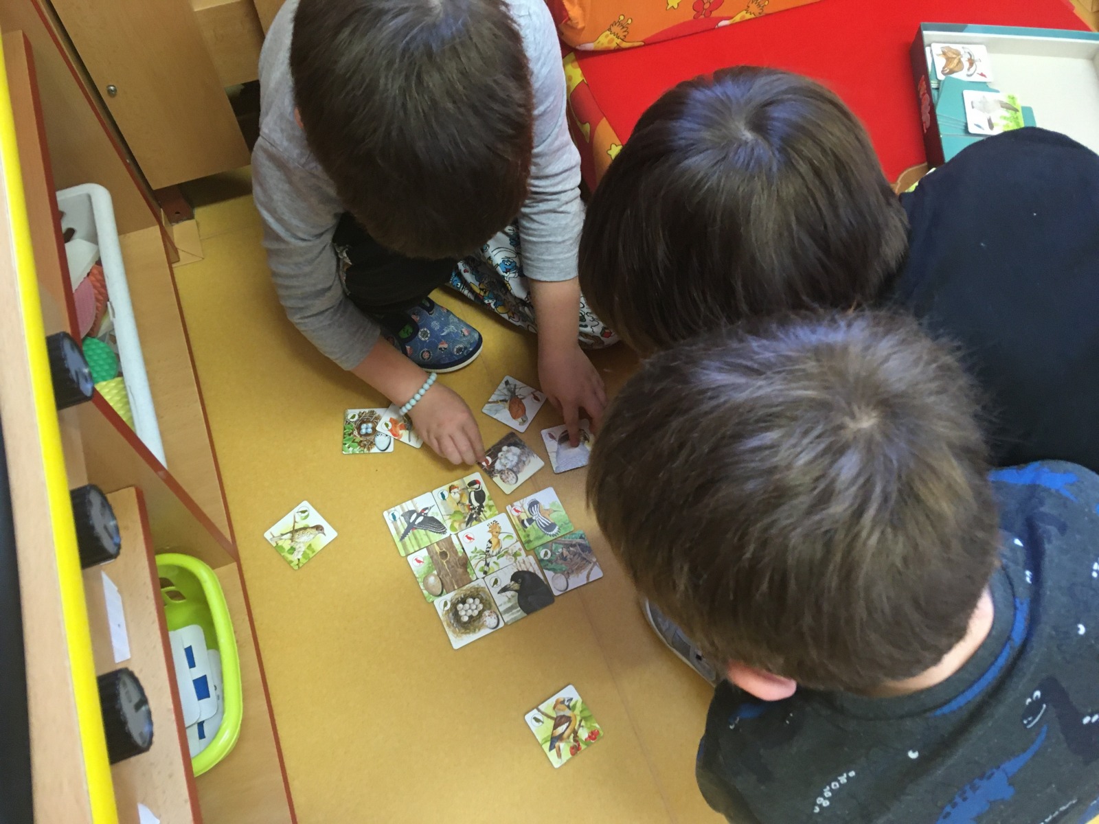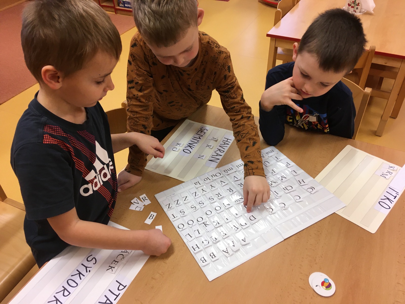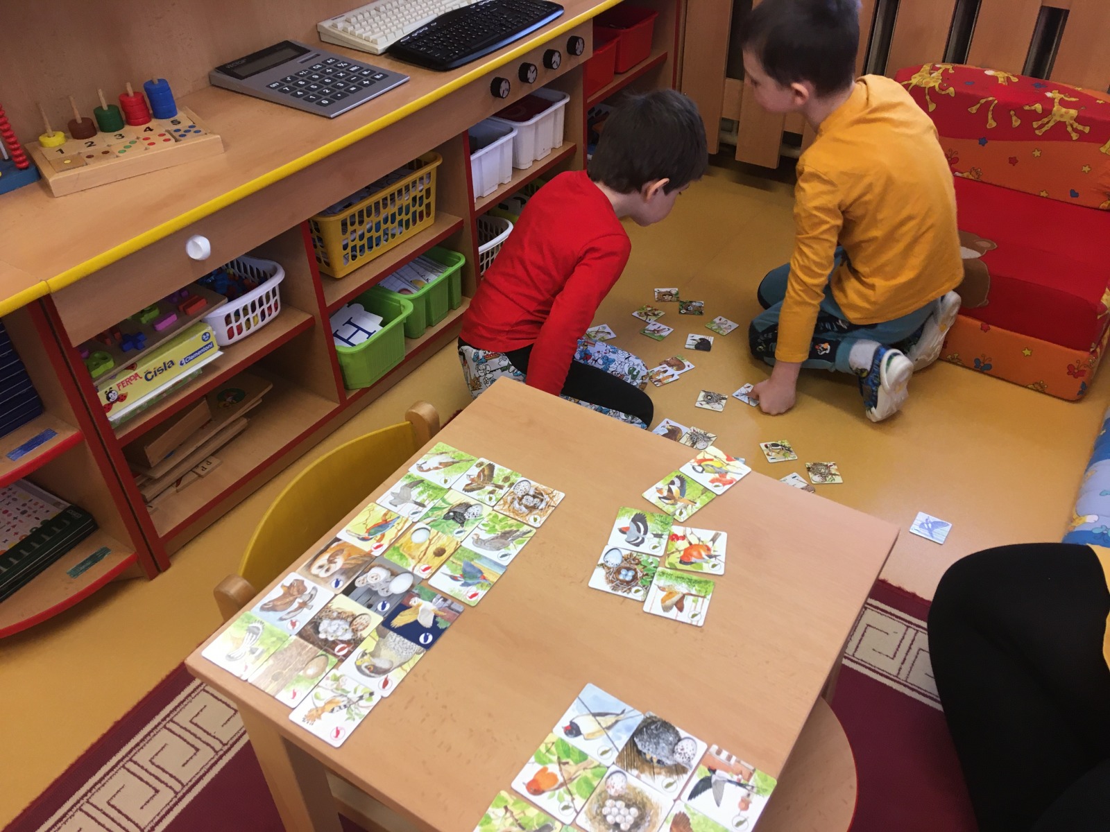 - práce s knihou - vyhledávání ptáků, psaní slov podle předlohy na mazací destičky,