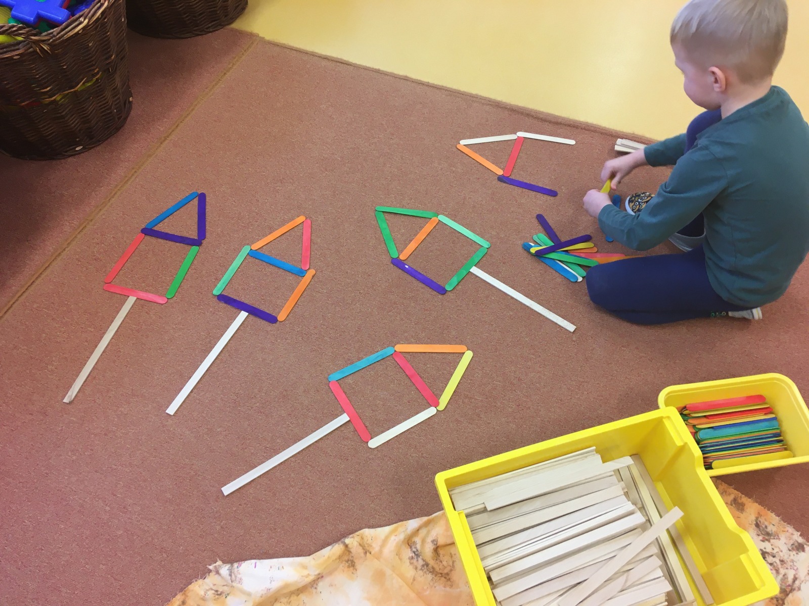 - skládání ptáčků pomocí různých stavebnic, stavění krmítek pomocí dřevěných špachtliček