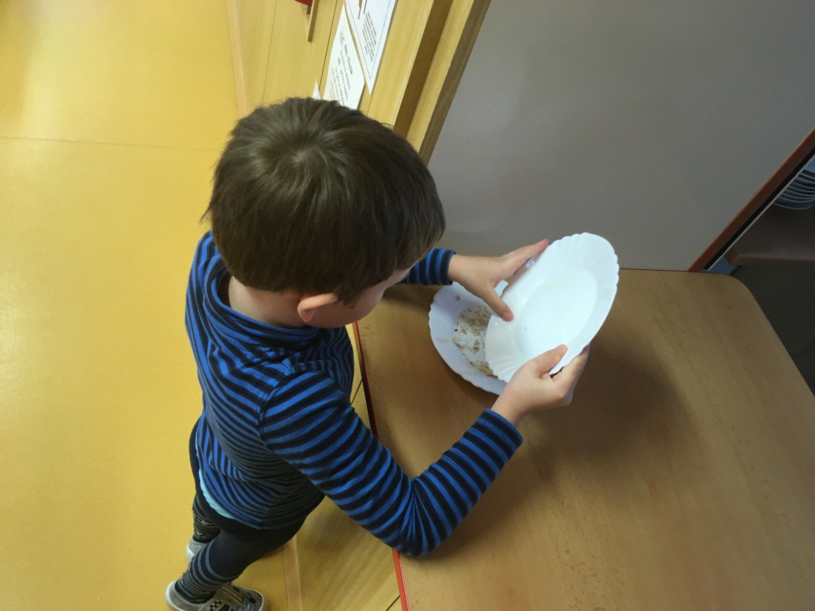 Na ptáčky jsme mysleli i během svačinky a sbírali jsme jim drobečky