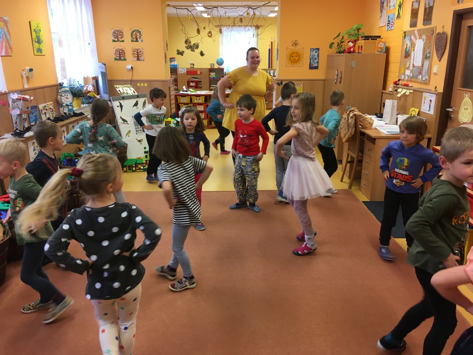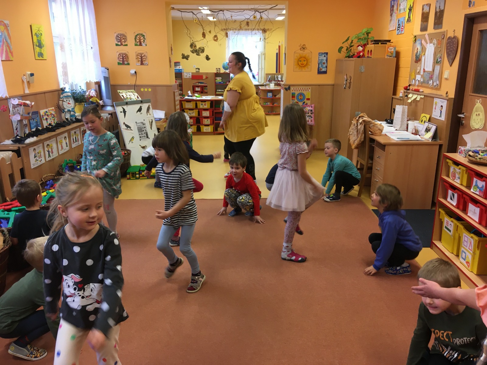 zpěv písní i taneček k písni VZAL VRABEČEK NA TANEČEK SÝKORKU,