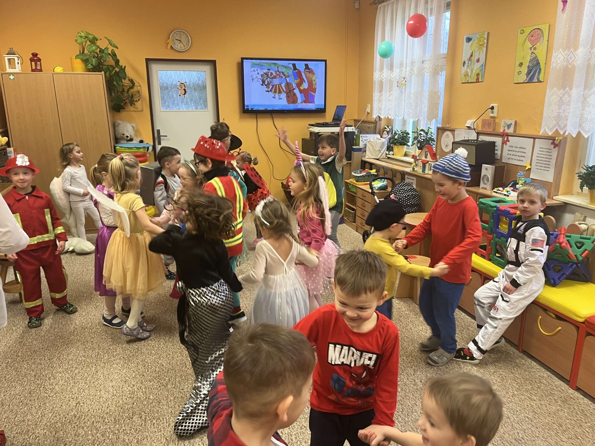 Hudba zněla celou školkou a úsměvy byly tím nejkrásnějším doplňkem všech masek.