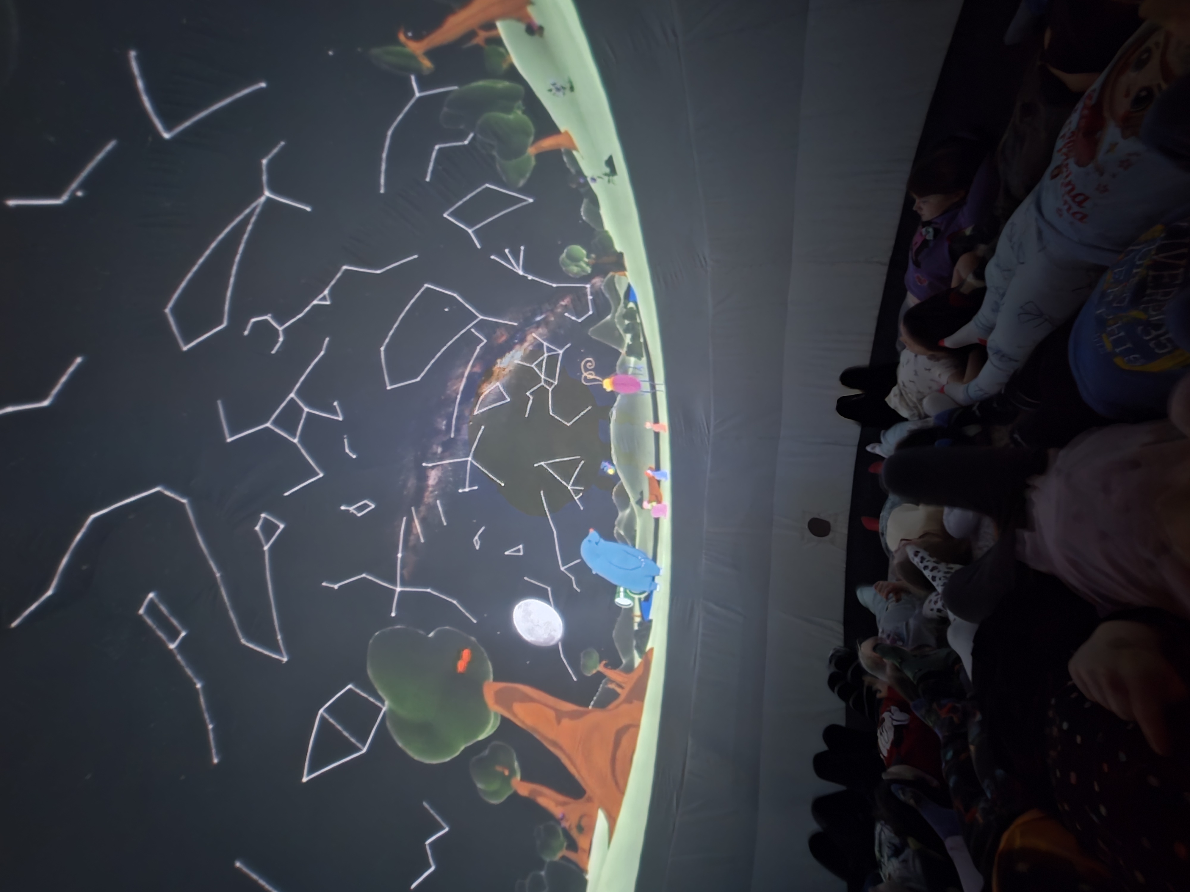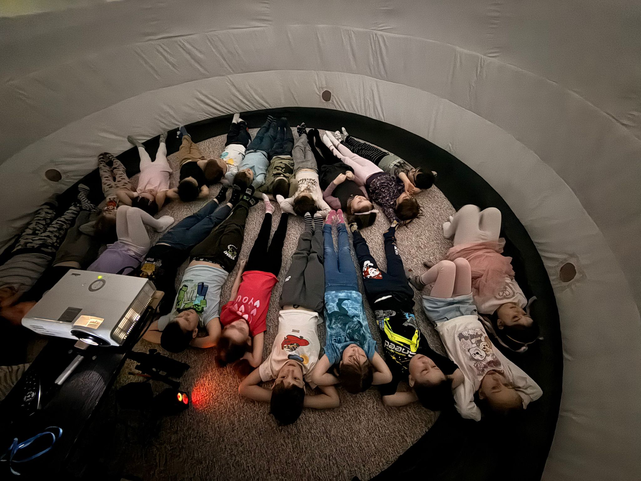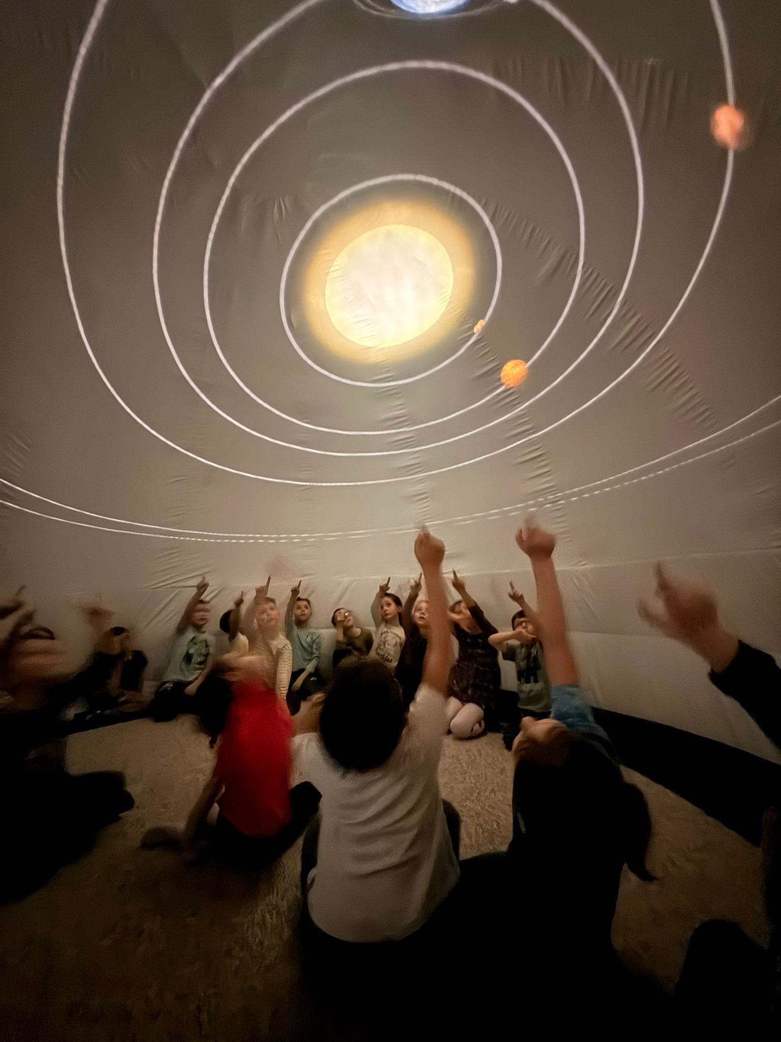 Výuka probíhala i mimo stan, kde byly připraveny modely planet a aktivity,