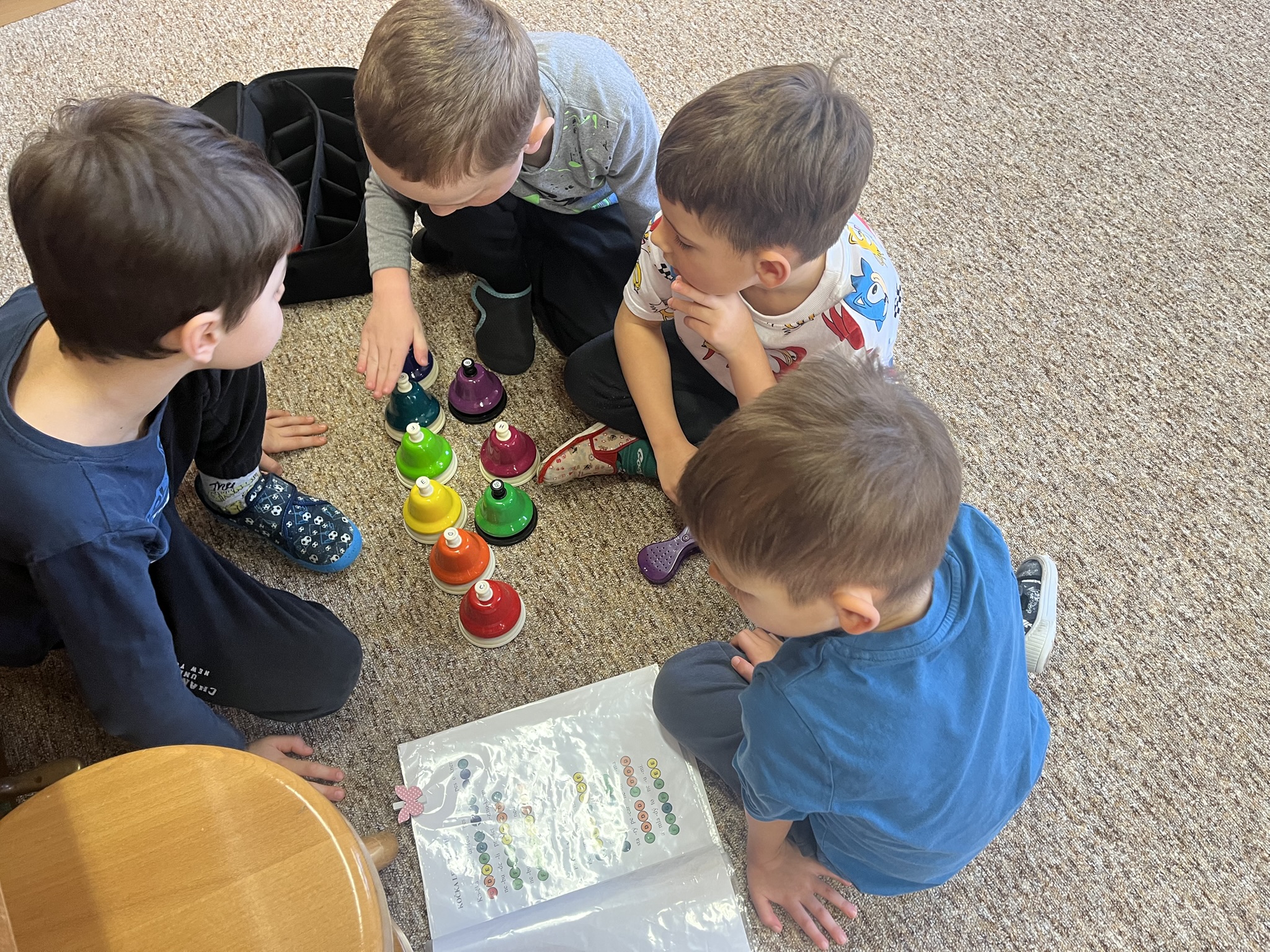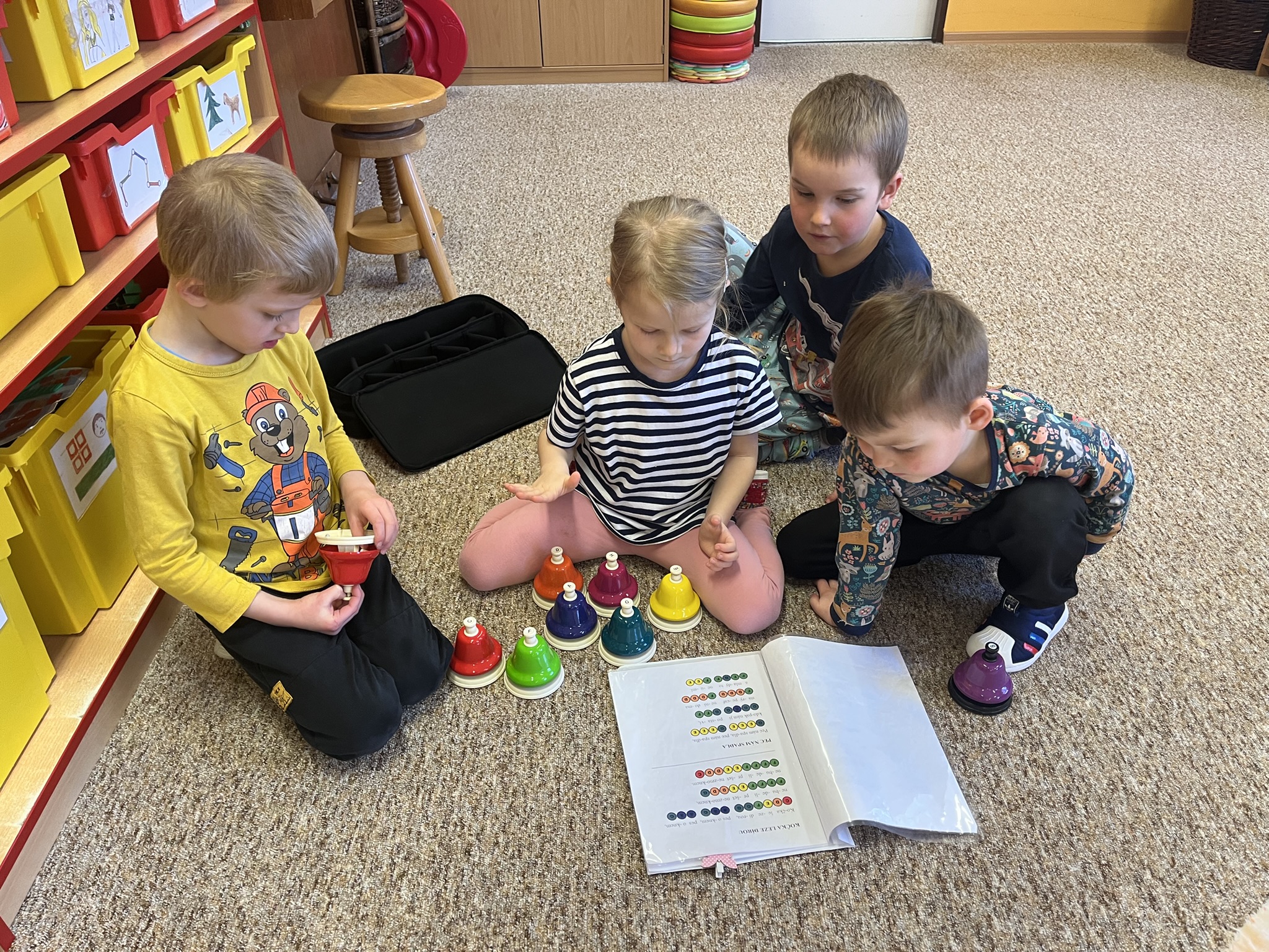 V centru notička si vyzkoušeli zvonkohru a prohlíželi si dětské zpěvníky.