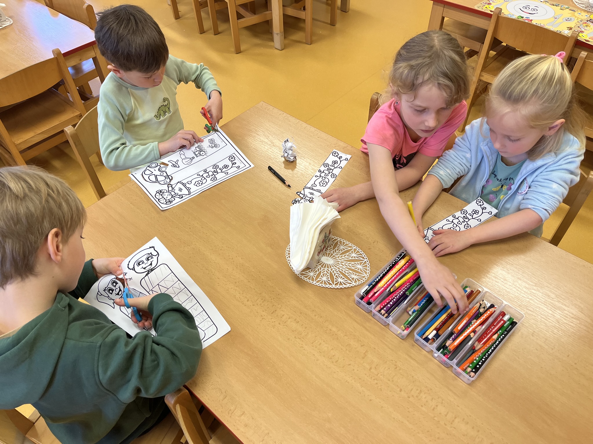 Aktivita pomáhala rozvíjet práci s tvary a barvami, prostorovou orientaci, porozumění mluvené řeči i schopnost reagovat na zadání.