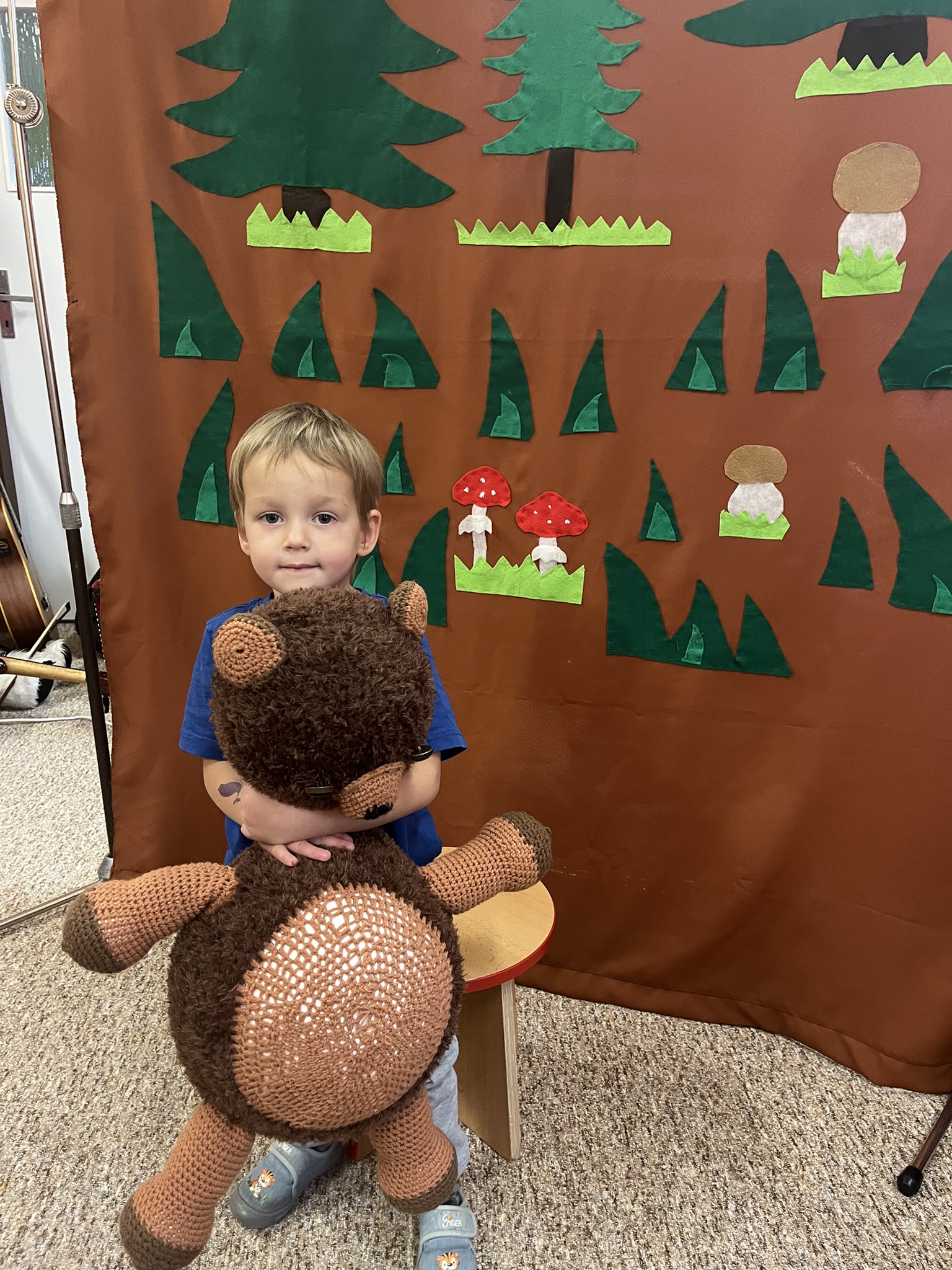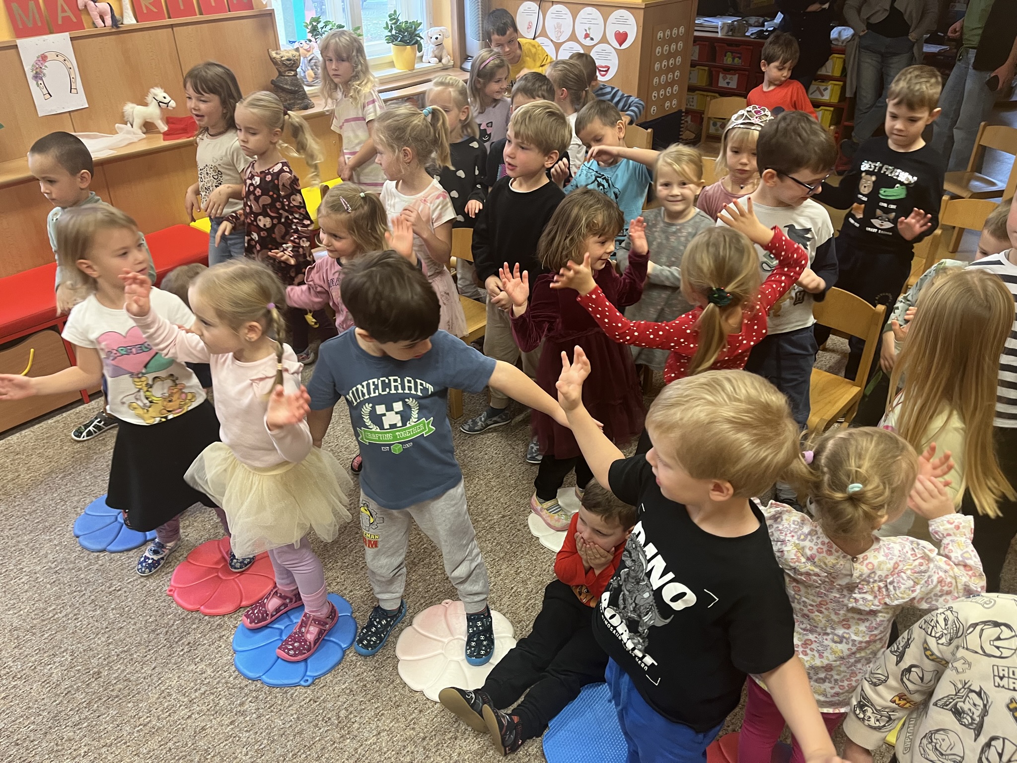 Děti se do hudebně – vzdělávacího programu zapojily rytmizací i pohybem – např. tanec medvěda.