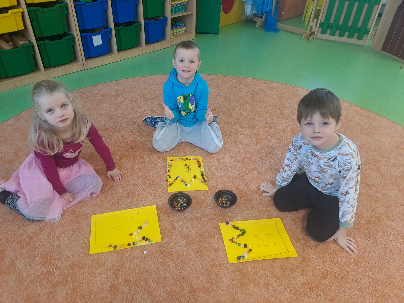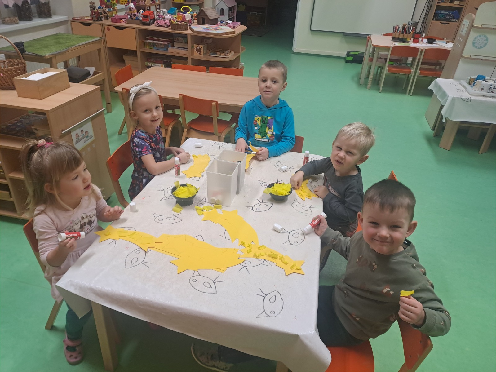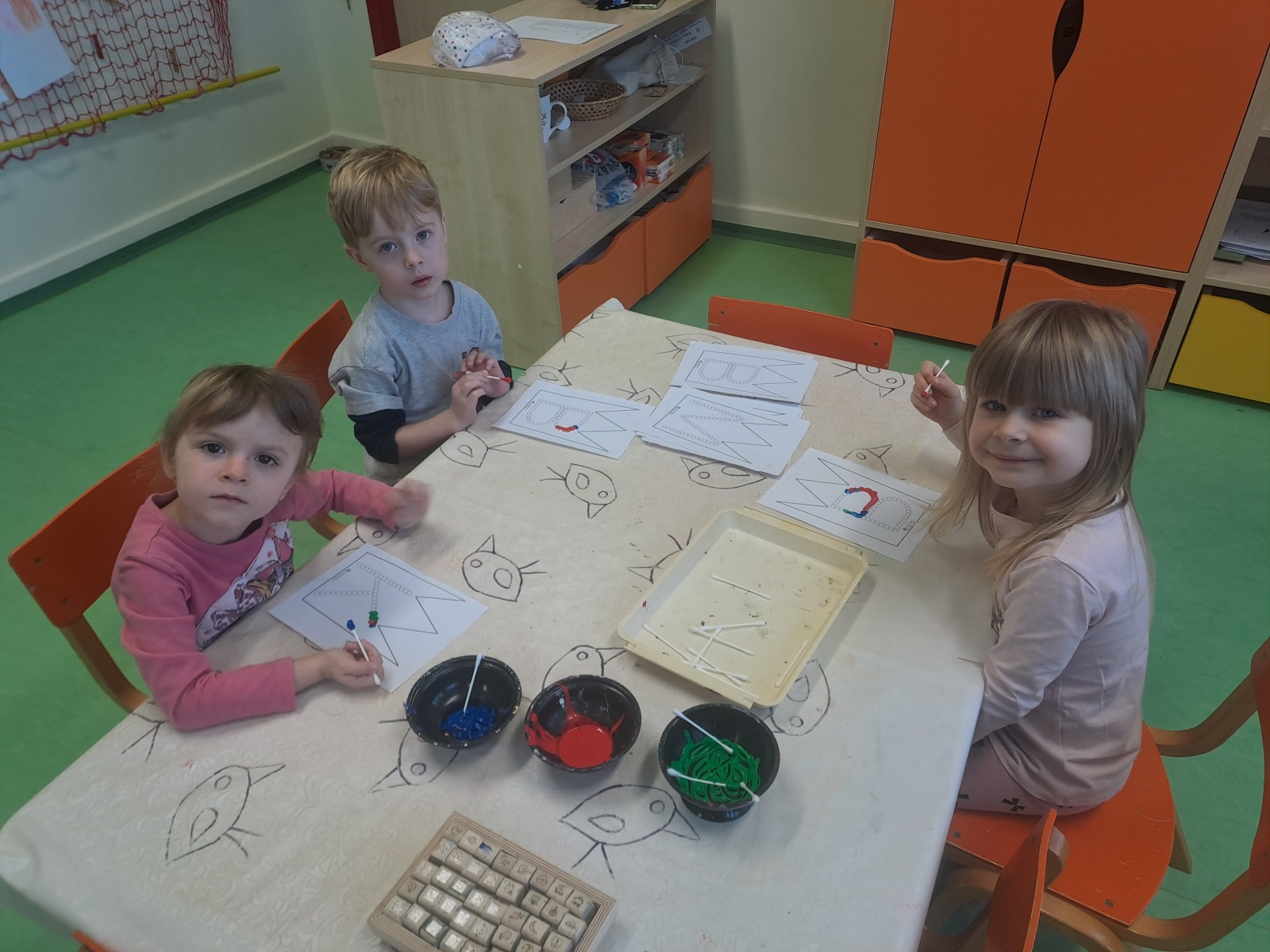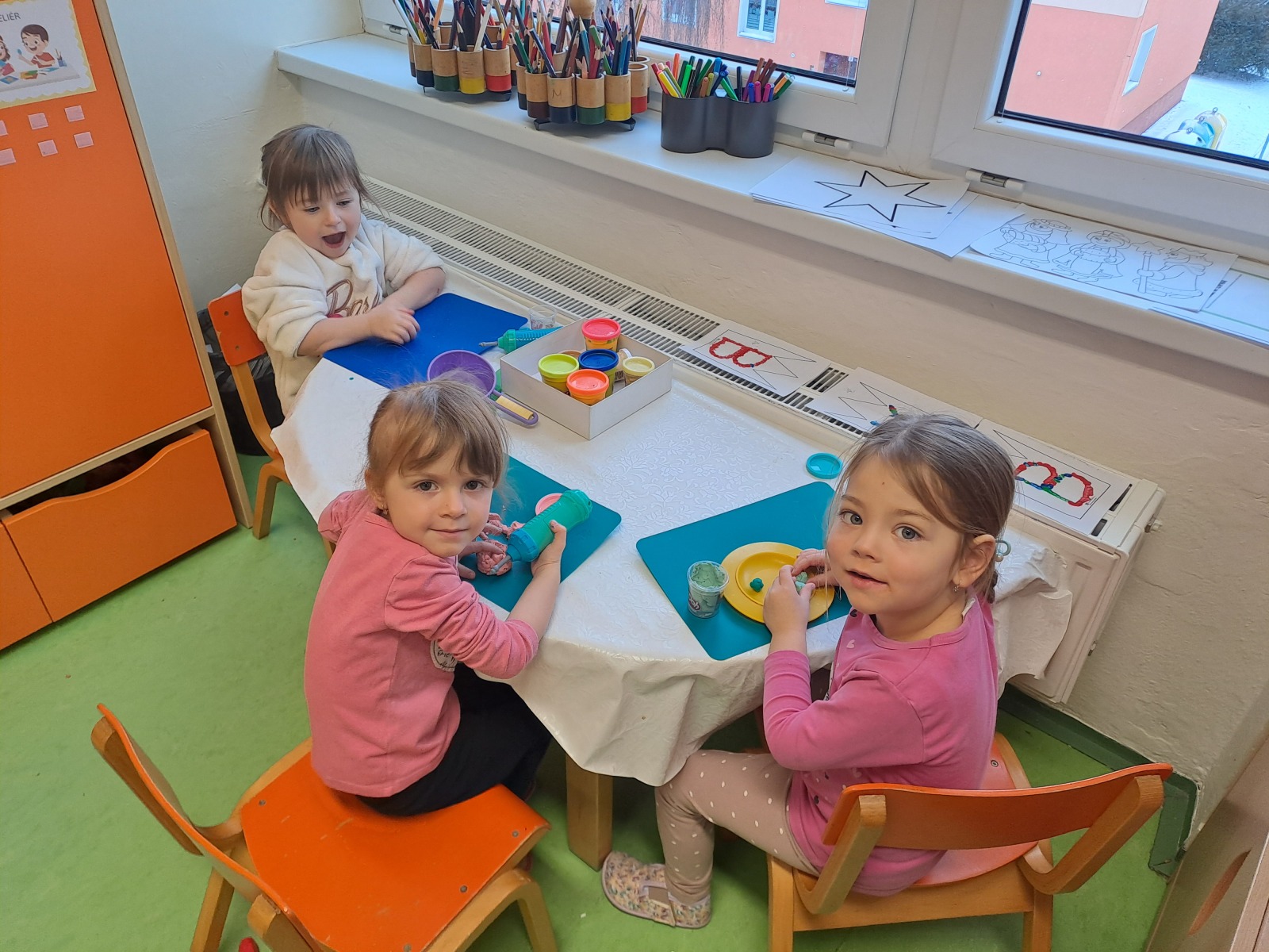 Starší děti vyráběly postavy Tří králů – mačkaly papír, dokreslovaly detaily a zdobily. Při práci si přirozeně rozvíjely jemnou motoriku, sílu prstů a trpělivost. Mladší děti se pustily do výroby komet z papíru, kde si vyzkoušely mačkání krepového papíru, lepení a špetkový úchop. Jemná motorika dostala pořádně zabrat, ale zvládly to s chutí a nadšením. Dále jsme vyťupkávali královské koruny z papíru, při čemž jsme procvičovali barvy a soustředění. Koruny si děti také zdobily korálky, což byla oblíbená činnost a zároveň skvělý trénink koordinace ruky a oka.Nechyběly ani námětové hry, ve kterých si děti hrály na Tři krále, a pohybové hry, aby se pořádně protáhly. Týden jsme doplnili zpěvem písně „My tři králové…“, kterou si děti rychle oblíbily a zpívaly ji s radostí. Týden byl plný tvoření, pohybu, zpěvu a objevování.😊