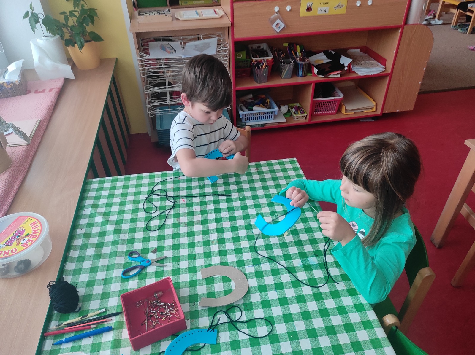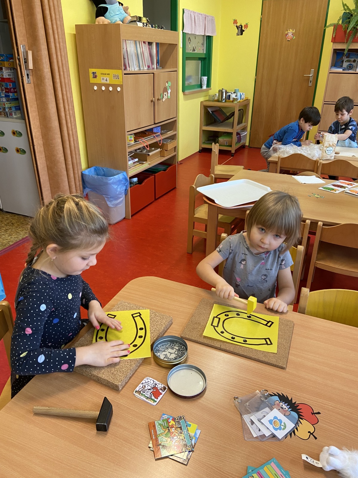 Potom děti pracovaly v centrech aktivit na dané téma. Oblíbily si koníčka a pěkně si tím procvičily vázání uzlíků.