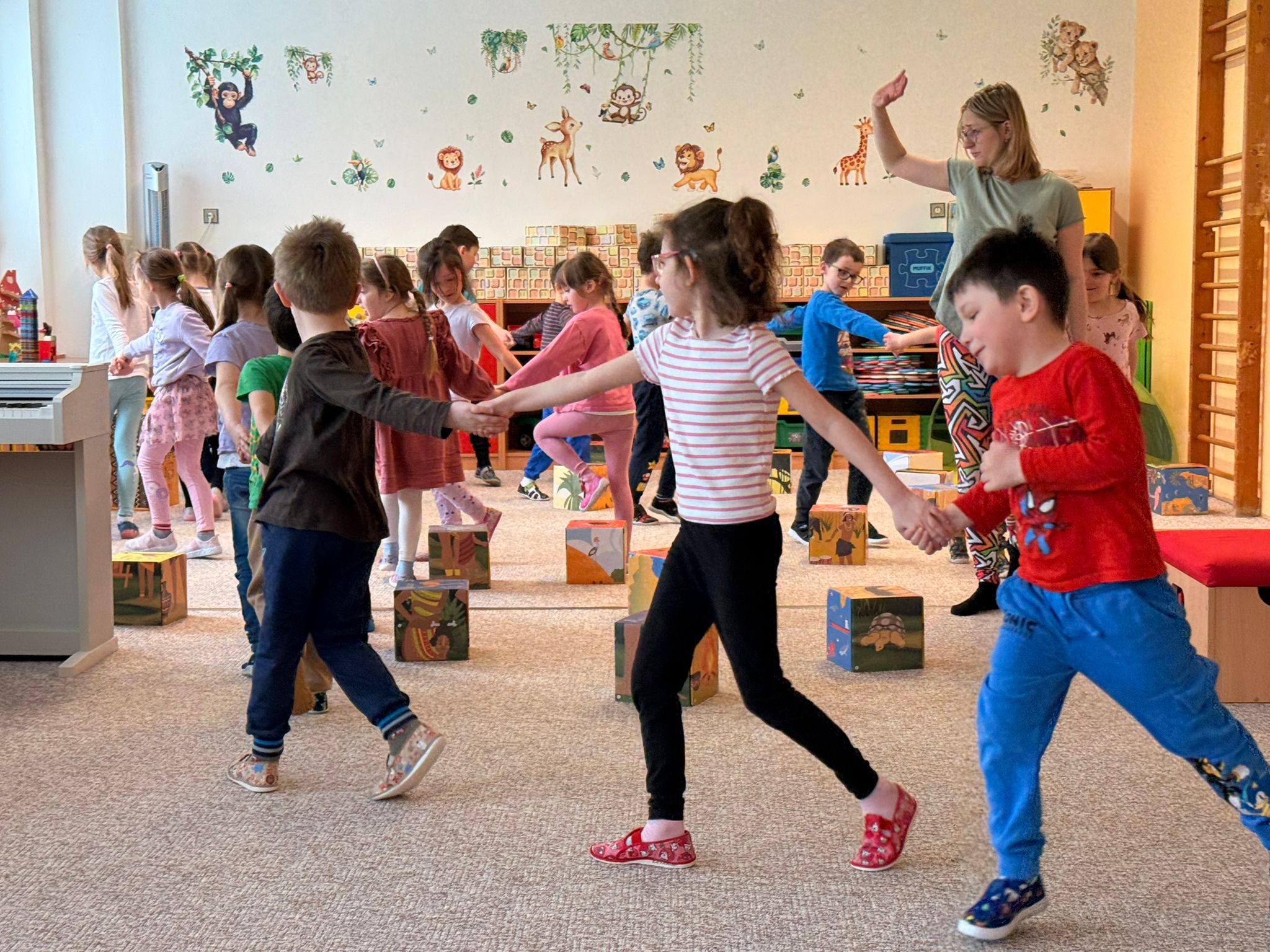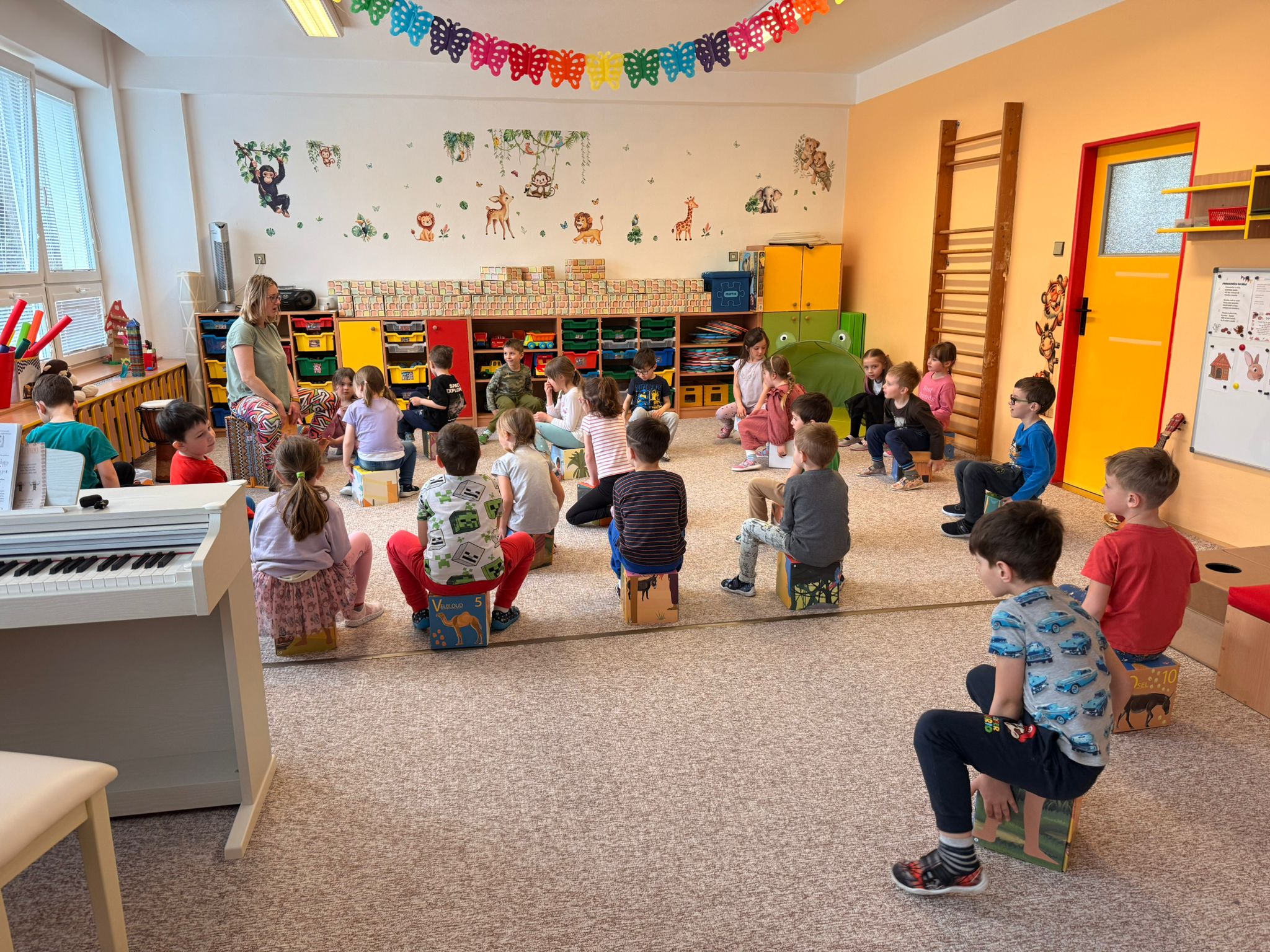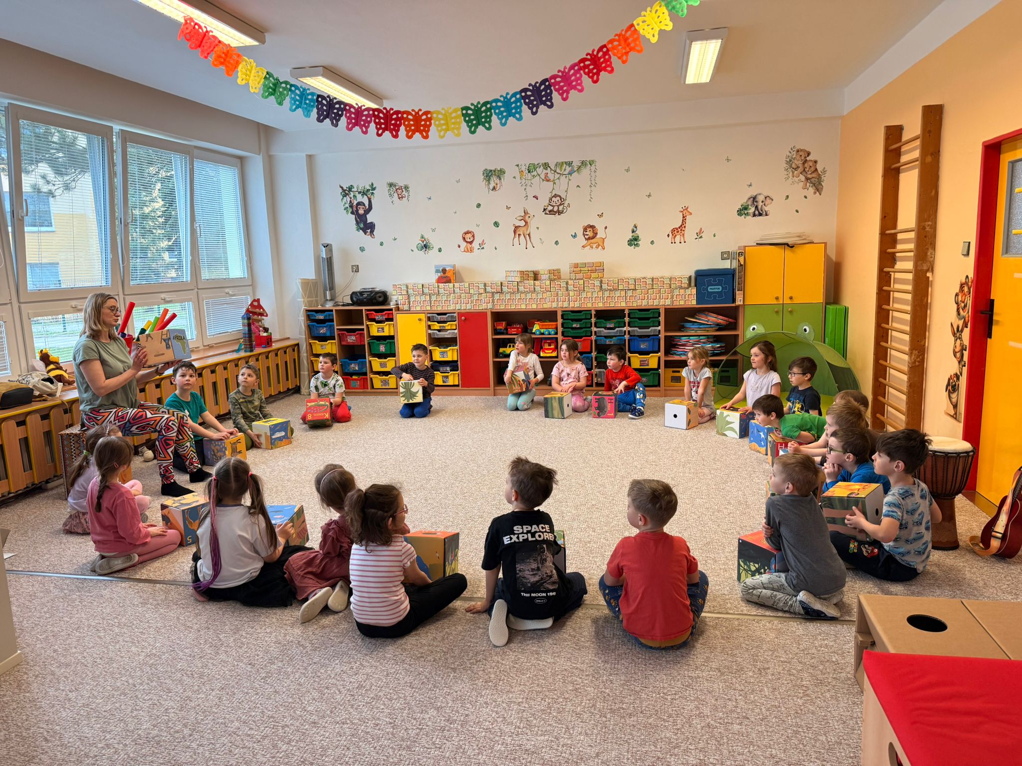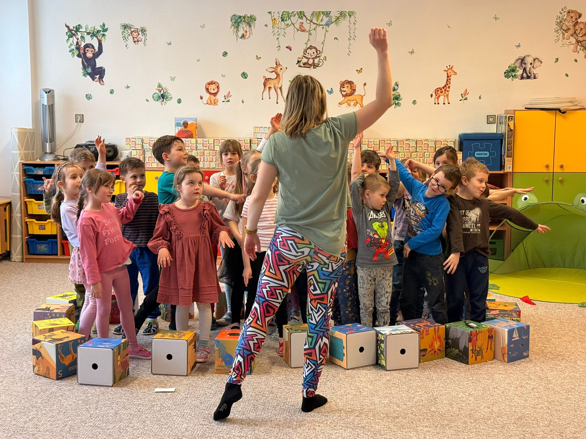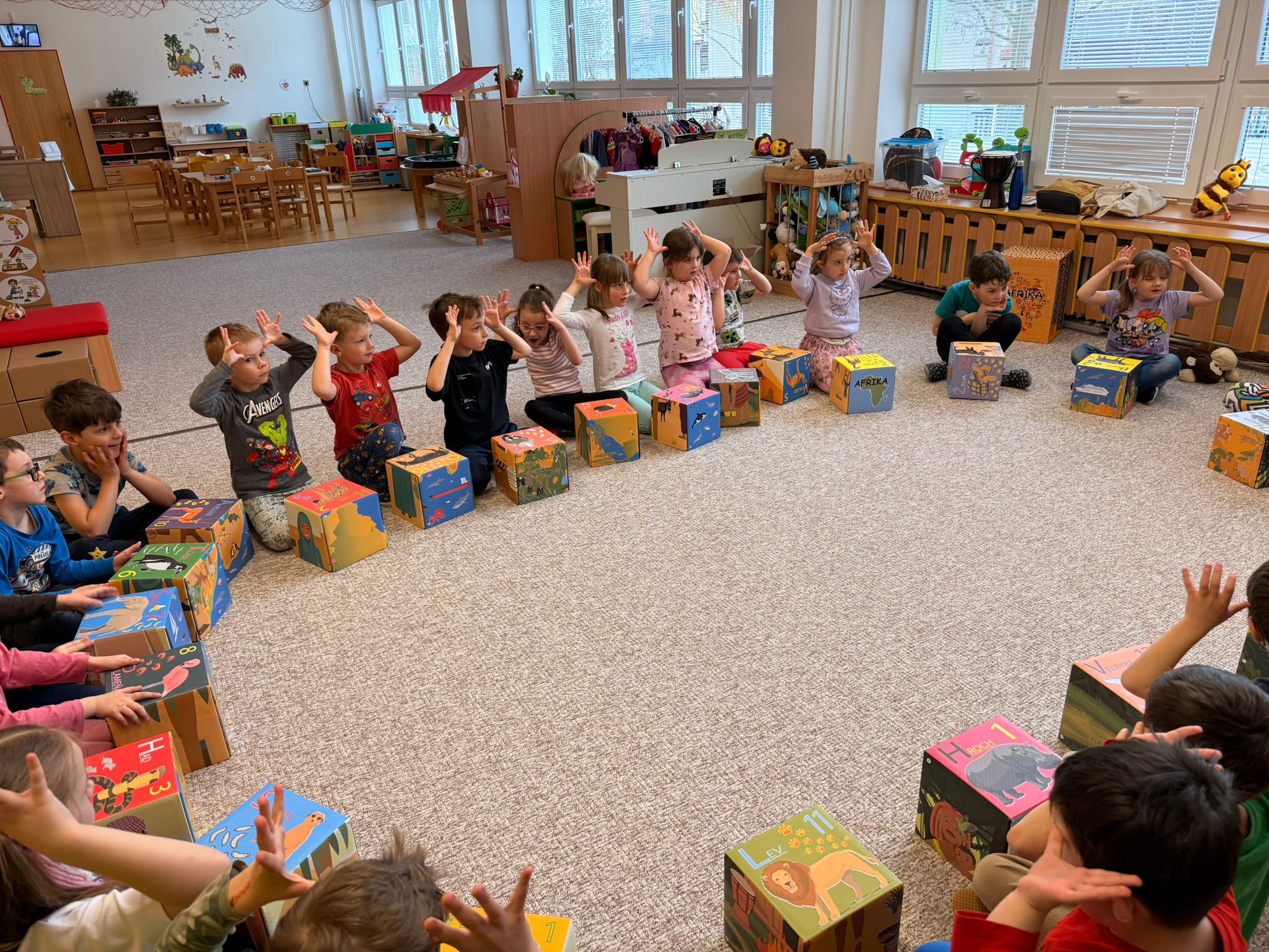 Zazpívali jsme si veselé africké písničky a vyzkoušeli jsme si hry na tělo – tleskání, dupání a vytváření rytmů vlastním tělem.