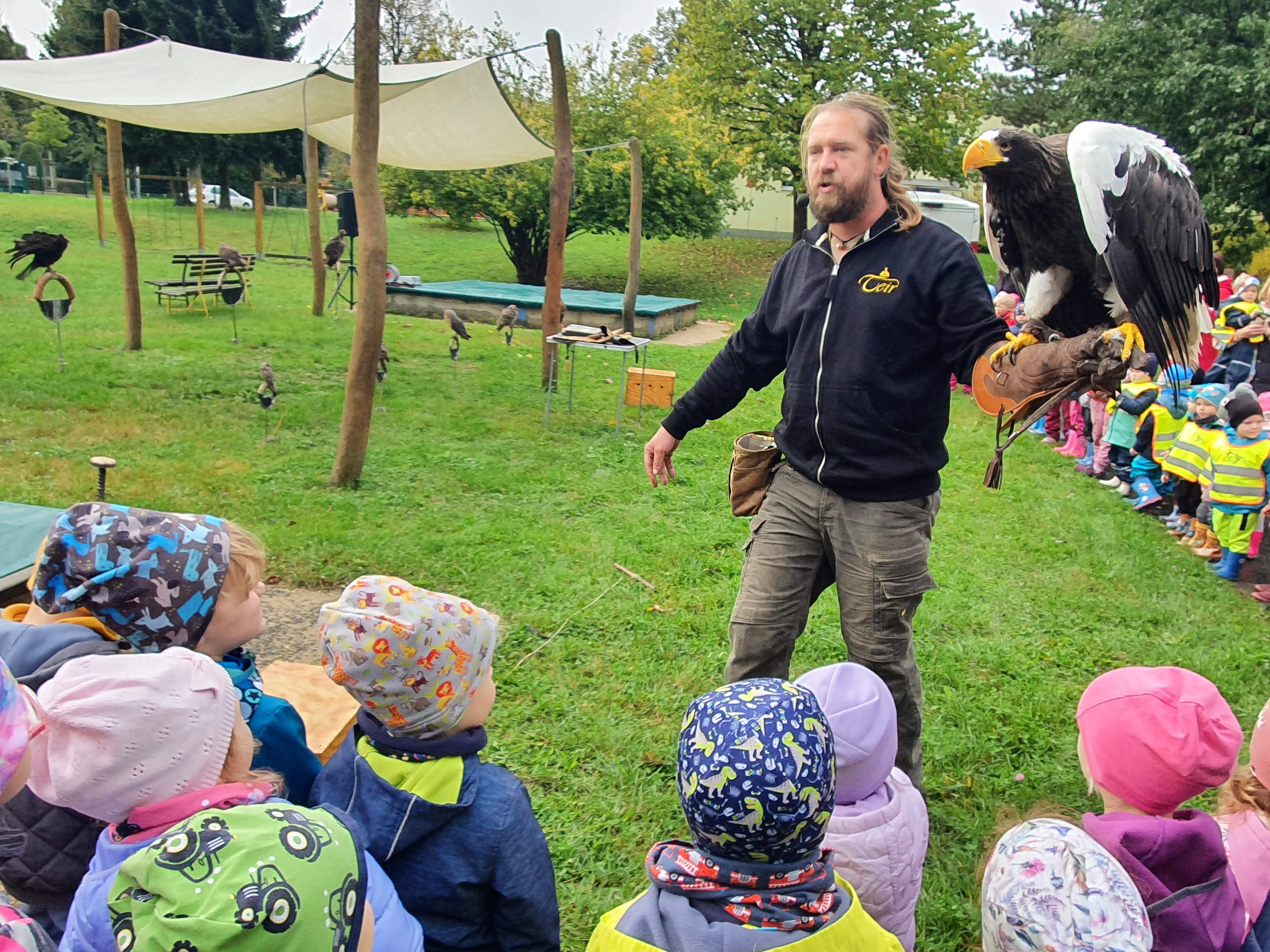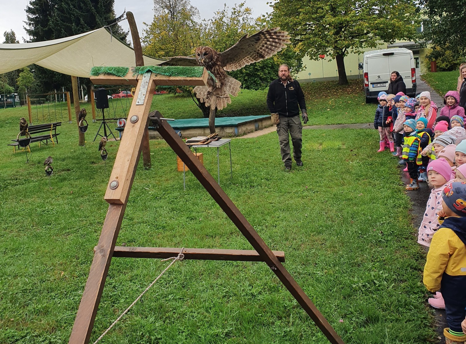 Předvedl nám názornou a velmi poutavou ukázku dravců a sov.
