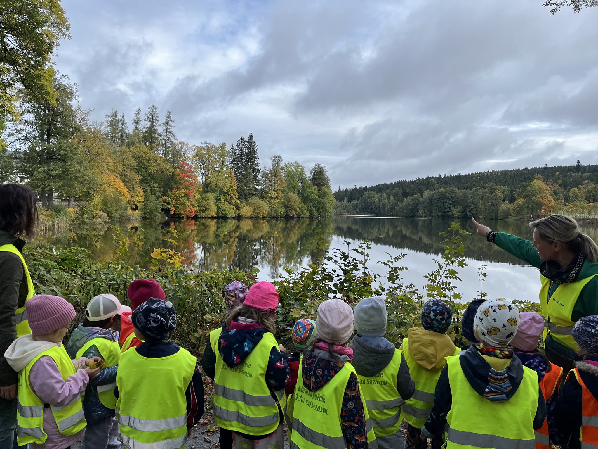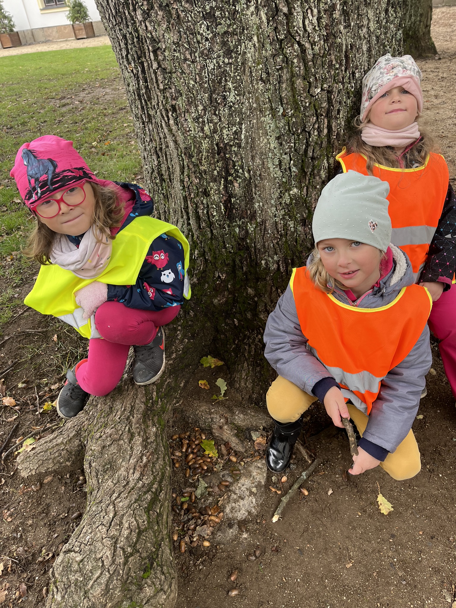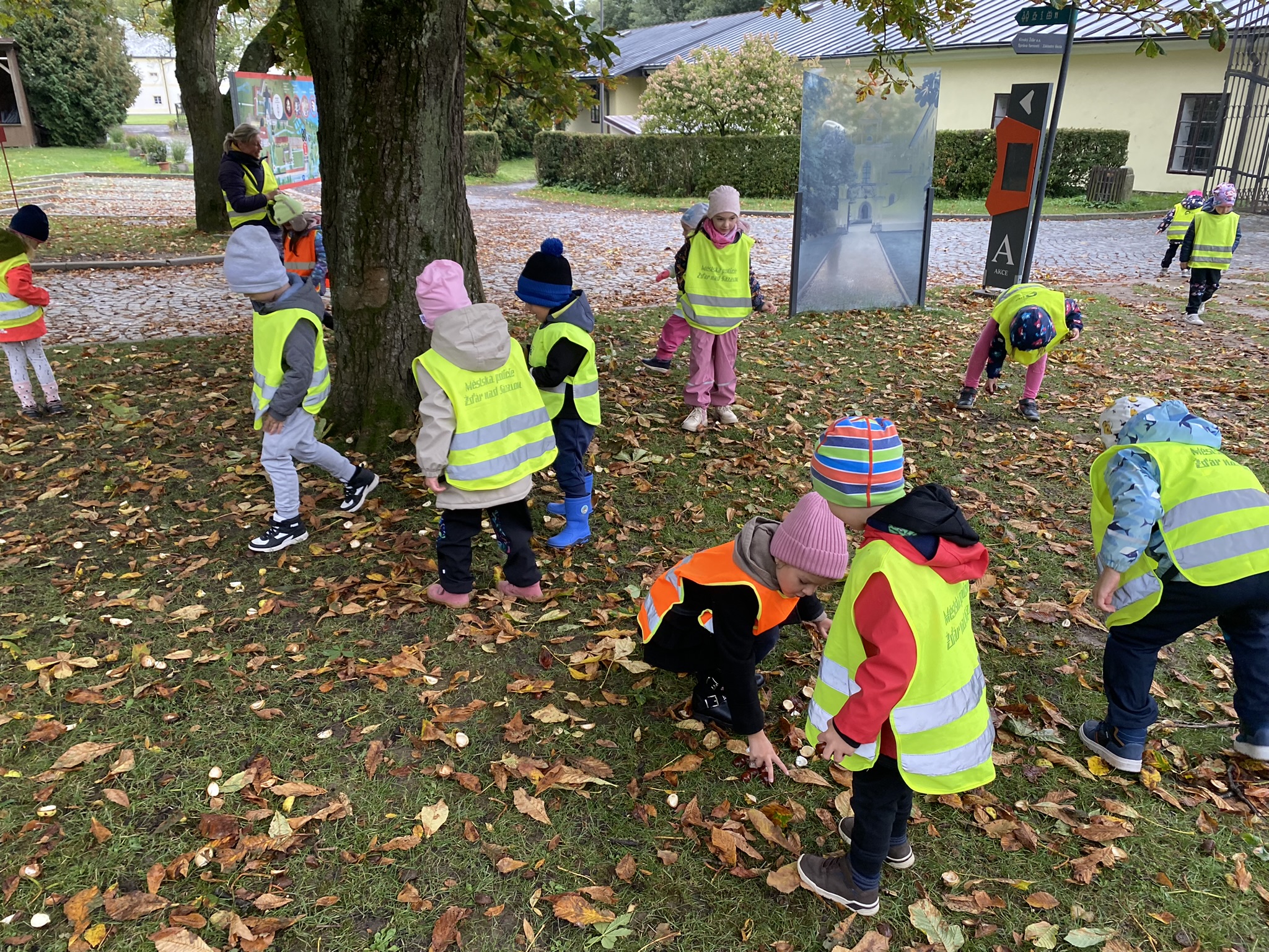Téma Život v lese jsme si s dětmi při procházkách do okolí mateřské školy zpestřili sbíráním kaštánků či pohledem na krásně zbarvené Muchomůrky červené u hřbitova Zelené hory.