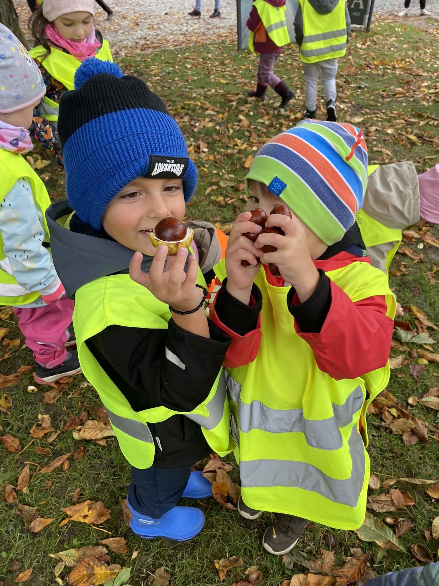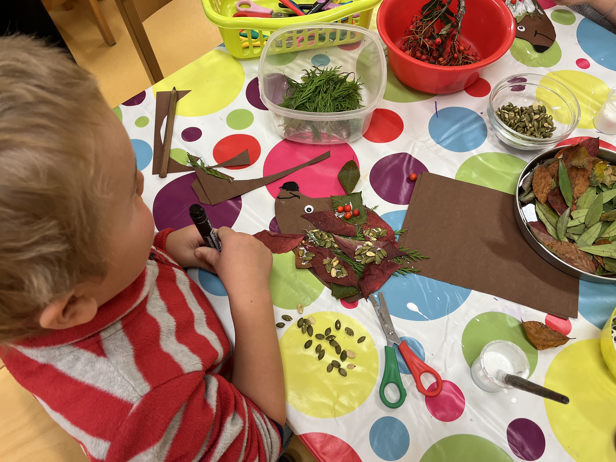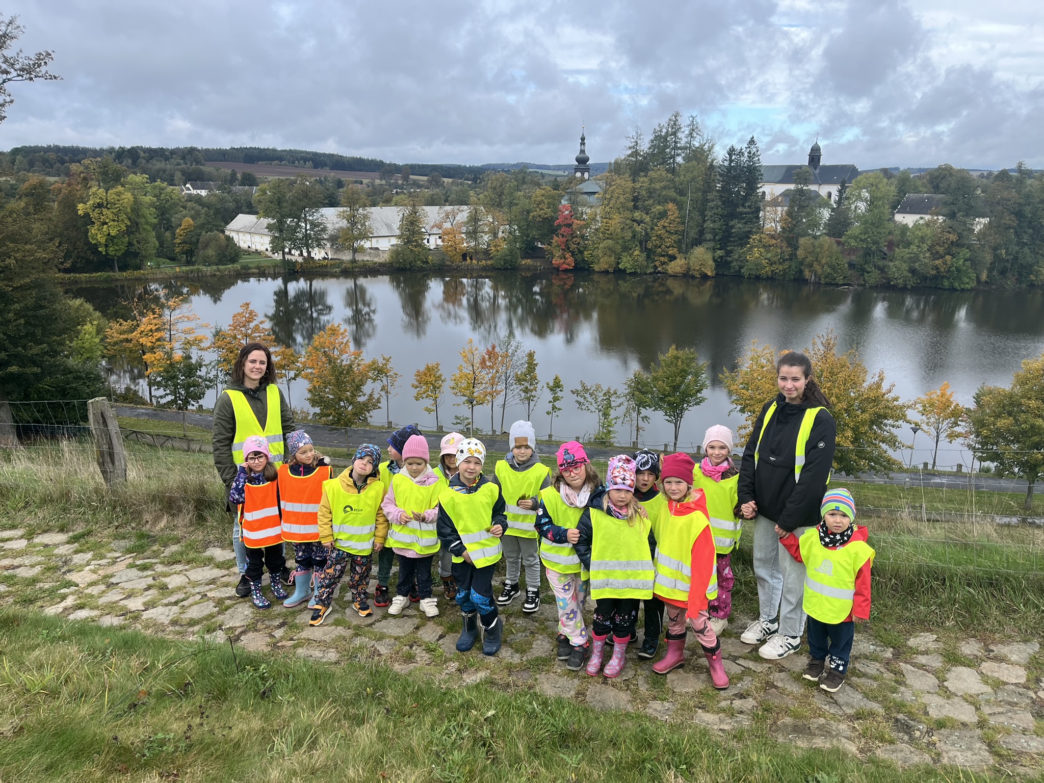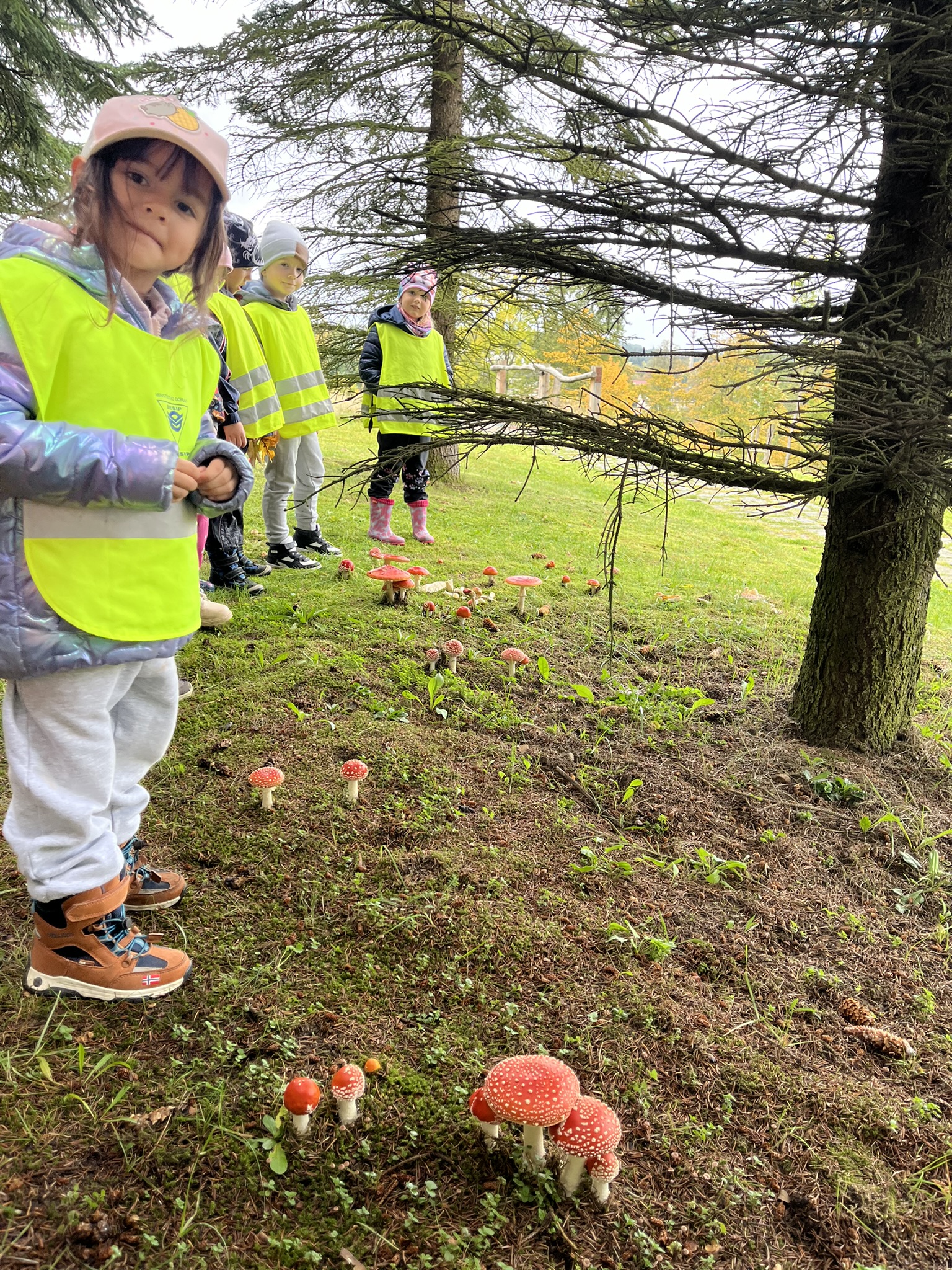 Téma Život v lese jsme si s dětmi při procházkách do okolí mateřské školy zpestřili sbíráním kaštánků či pohledem na krásně zbarvené Muchomůrky červené u hřbitova Zelené hory.
