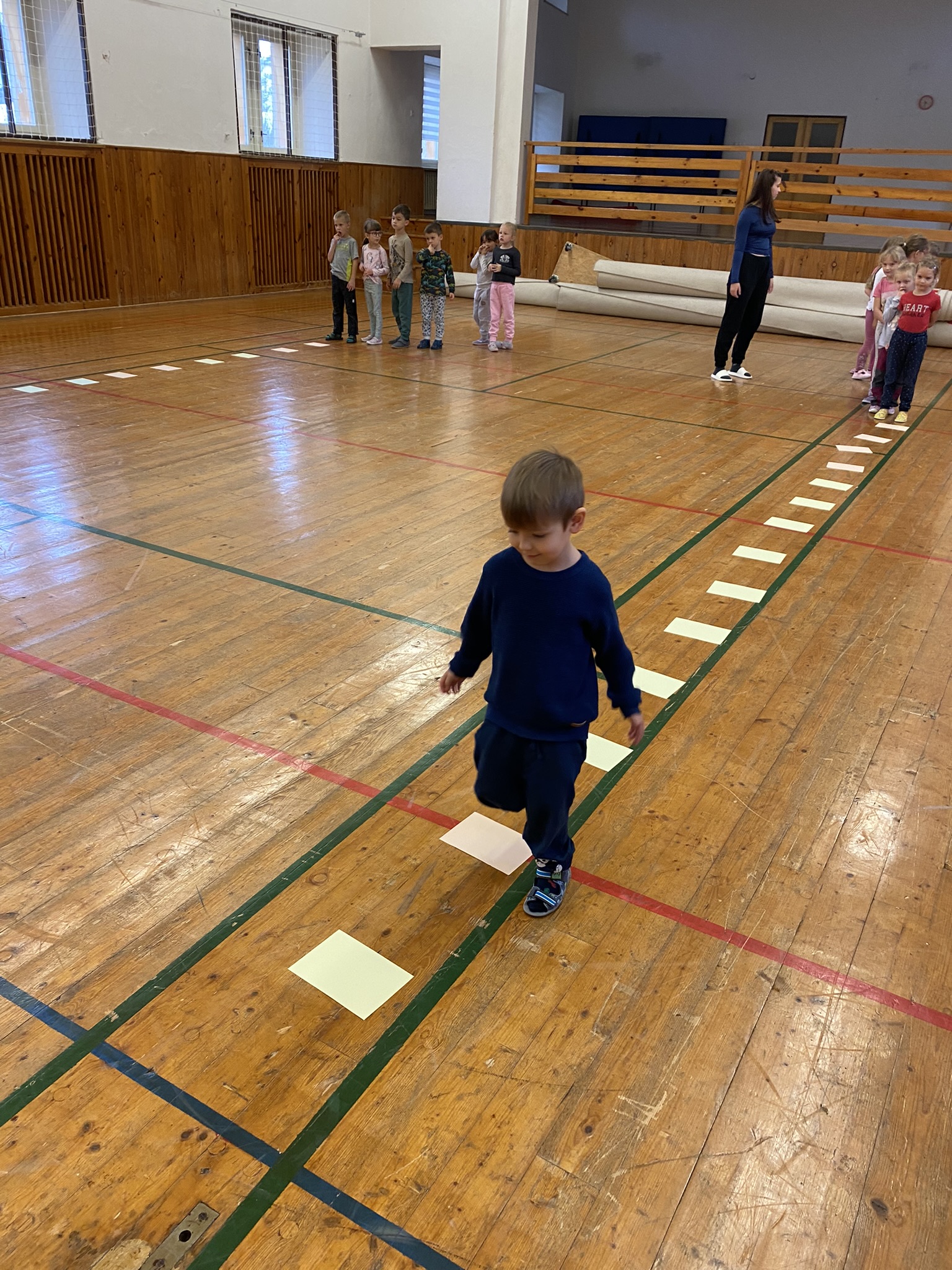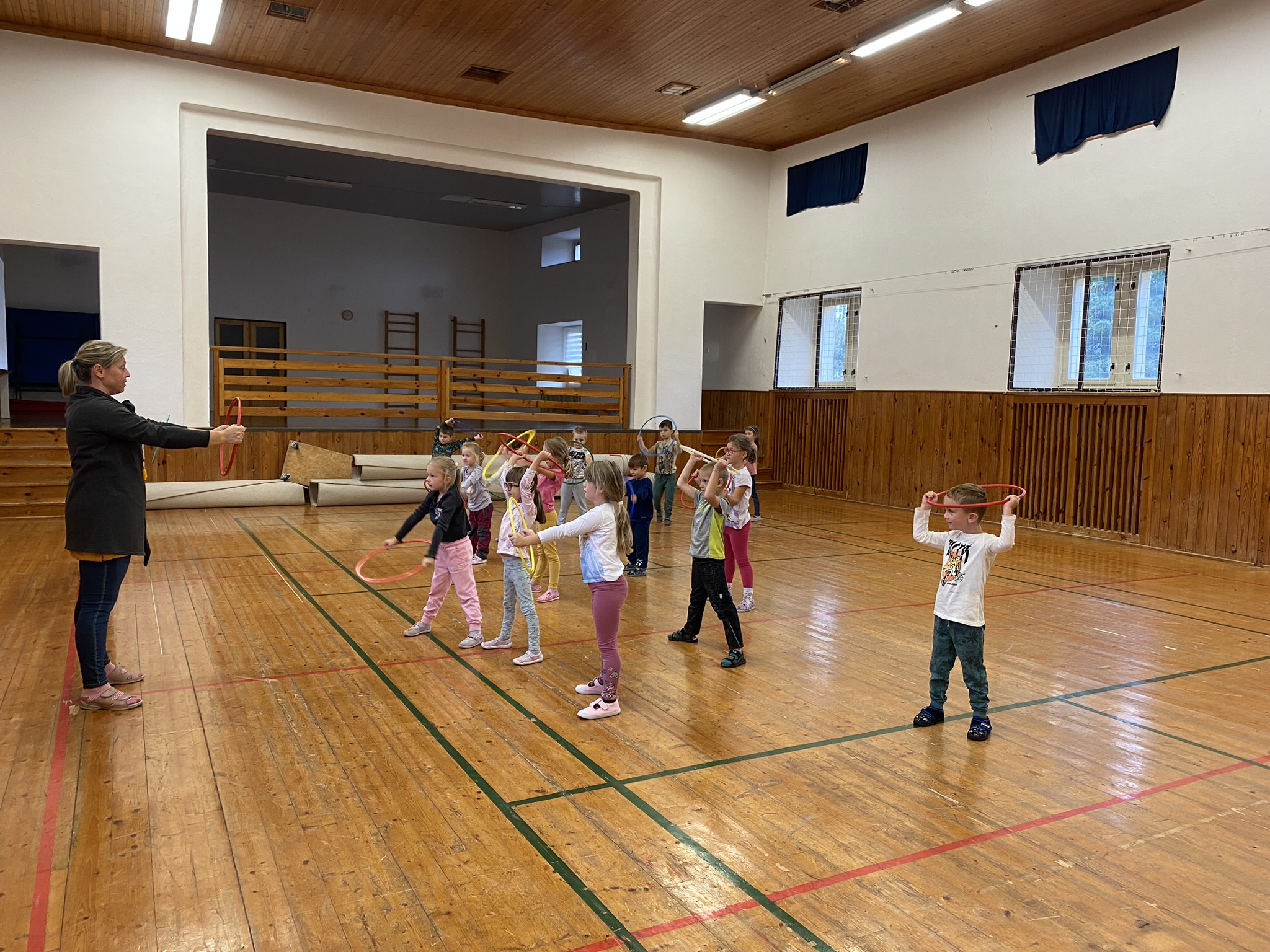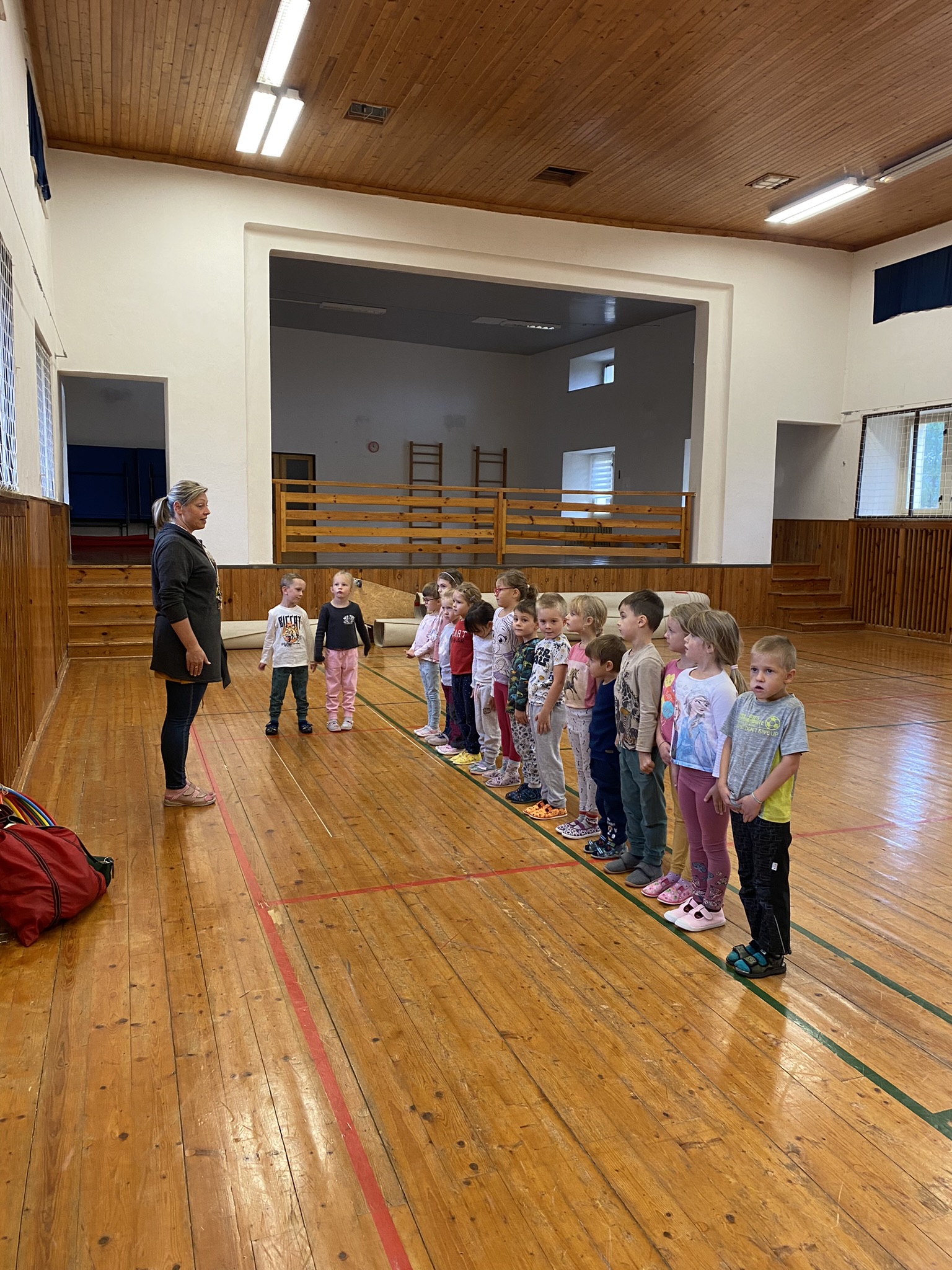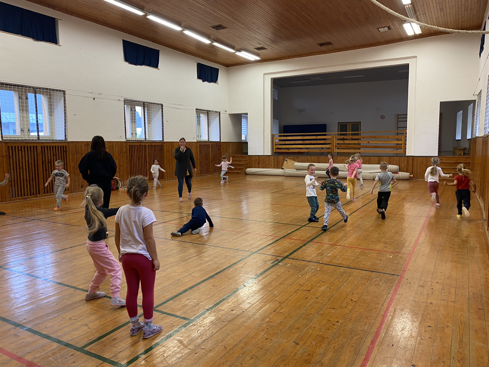 Děti byly seznámeny s prostory tělocvičny, se cvičebním nářadím, jejich správným pojmenováním a používáním. Učili jsme se rychlou reakci na píšťalku, která bude velmi důležitým pomocníkem při pobytu v tělocvičně. MOTÝLCI se naučili správný nástup na cvičení, který využili o týden později na první hodině cvičení.