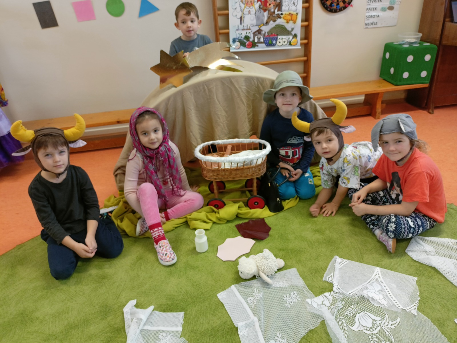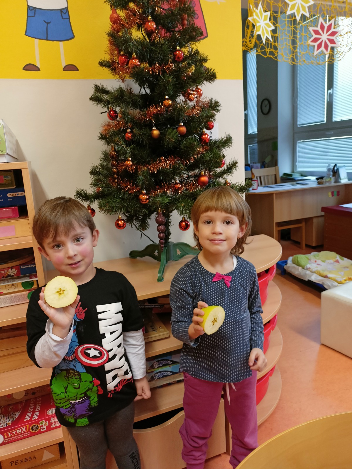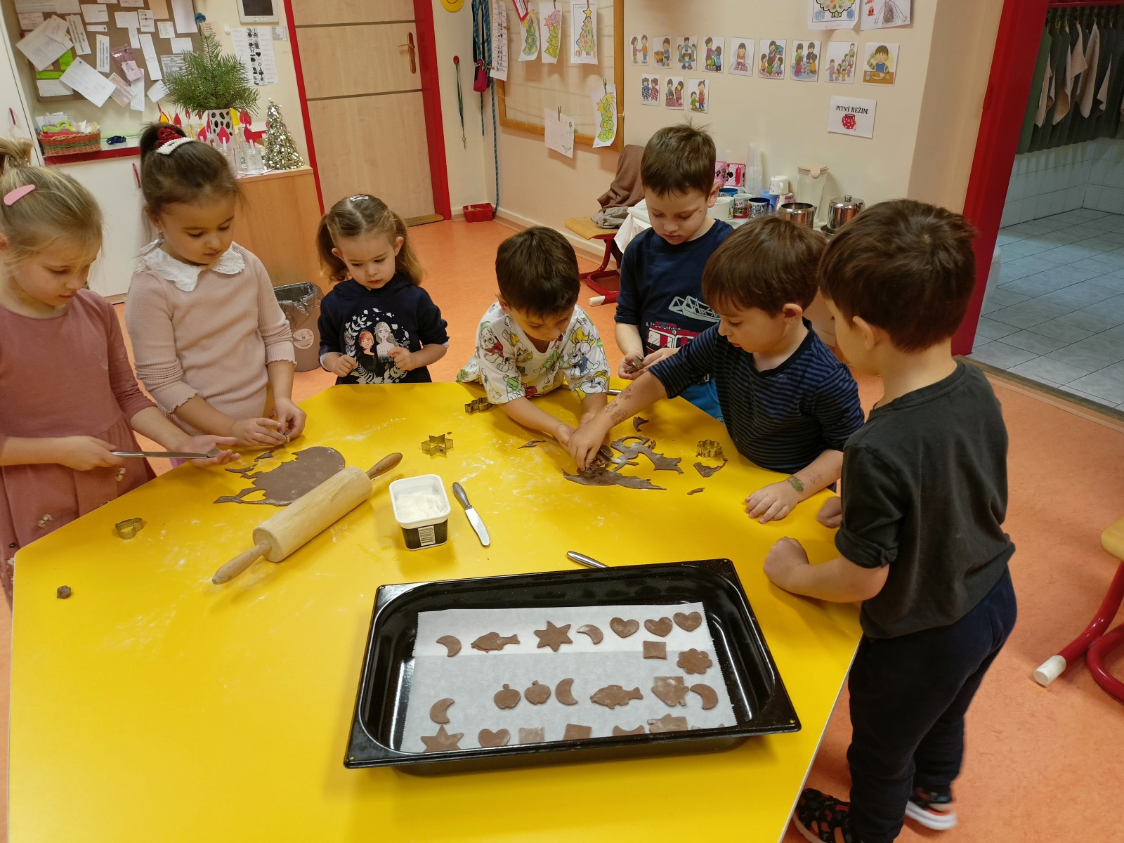 Na Ježíška jsme se moc těšili, společně jsme si povídali o Štědrém dni, co dobrého si připravíme k večeři a s kým budeme u stromečku. Připomněli jsme si české vánoční tradice, poslouchali a zpívali koledy, ozdobili jsme si stromeček ve třídě. Děti vyráběly přáníčka, svítilničky, napsaly svá přání. Sestavovaly rozstříhané vánoční pohlednice, vykrajovaly těsto – perníčky byly mňam . Zahráli jsme si betlémský příběh o narození Ježíška.