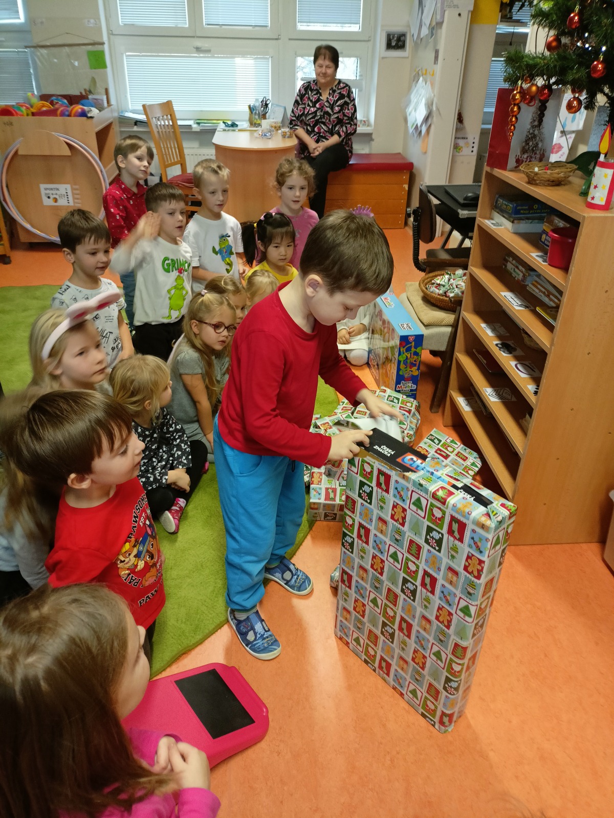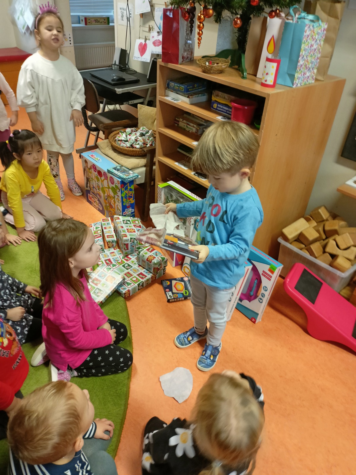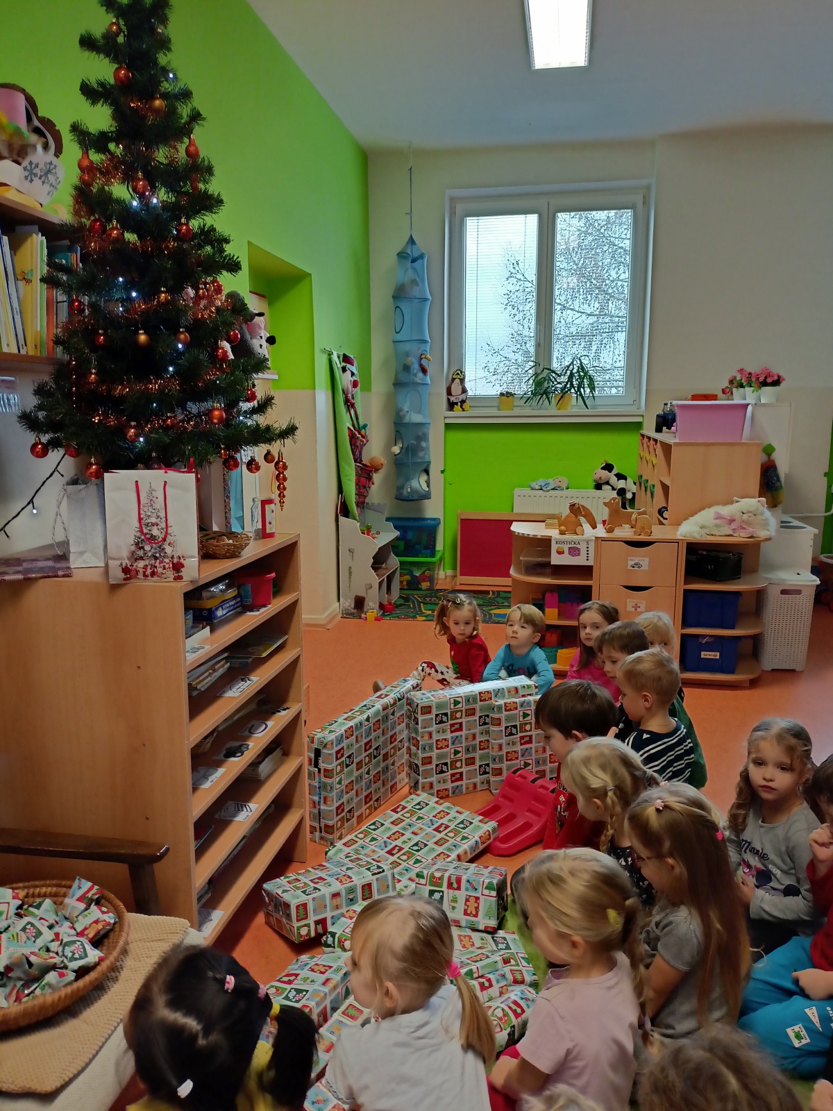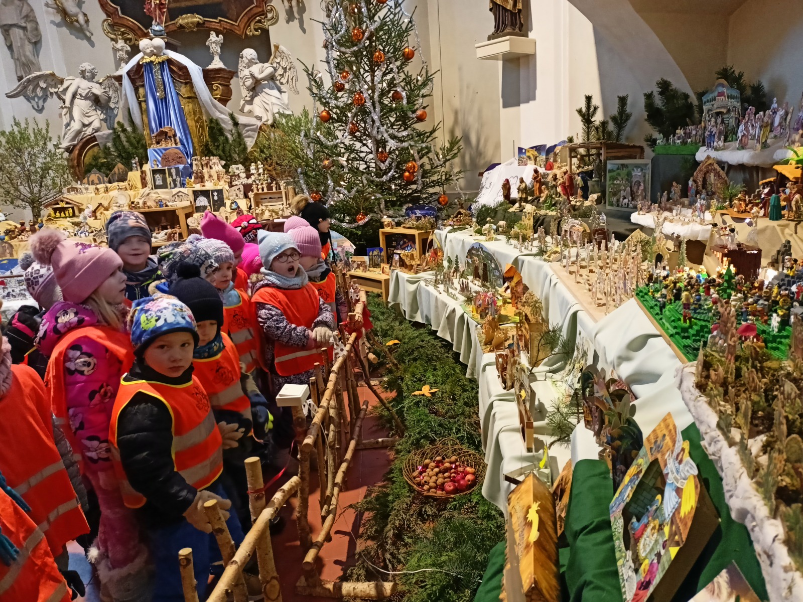 A jaká byla u nás nadílka? Ježíšek přišel - to bylo radosti . Děti zazpívaly Ježíškovi u stromečku koledy, rozbalily dárečky, pohrály si s novými hračkami a ochutnávaly výtečné cukroví. Poslední den ve školce jsme ještě stihli zajít do kaple sv. Barborky na výstavu nádherných betlémů z různých materiálů.