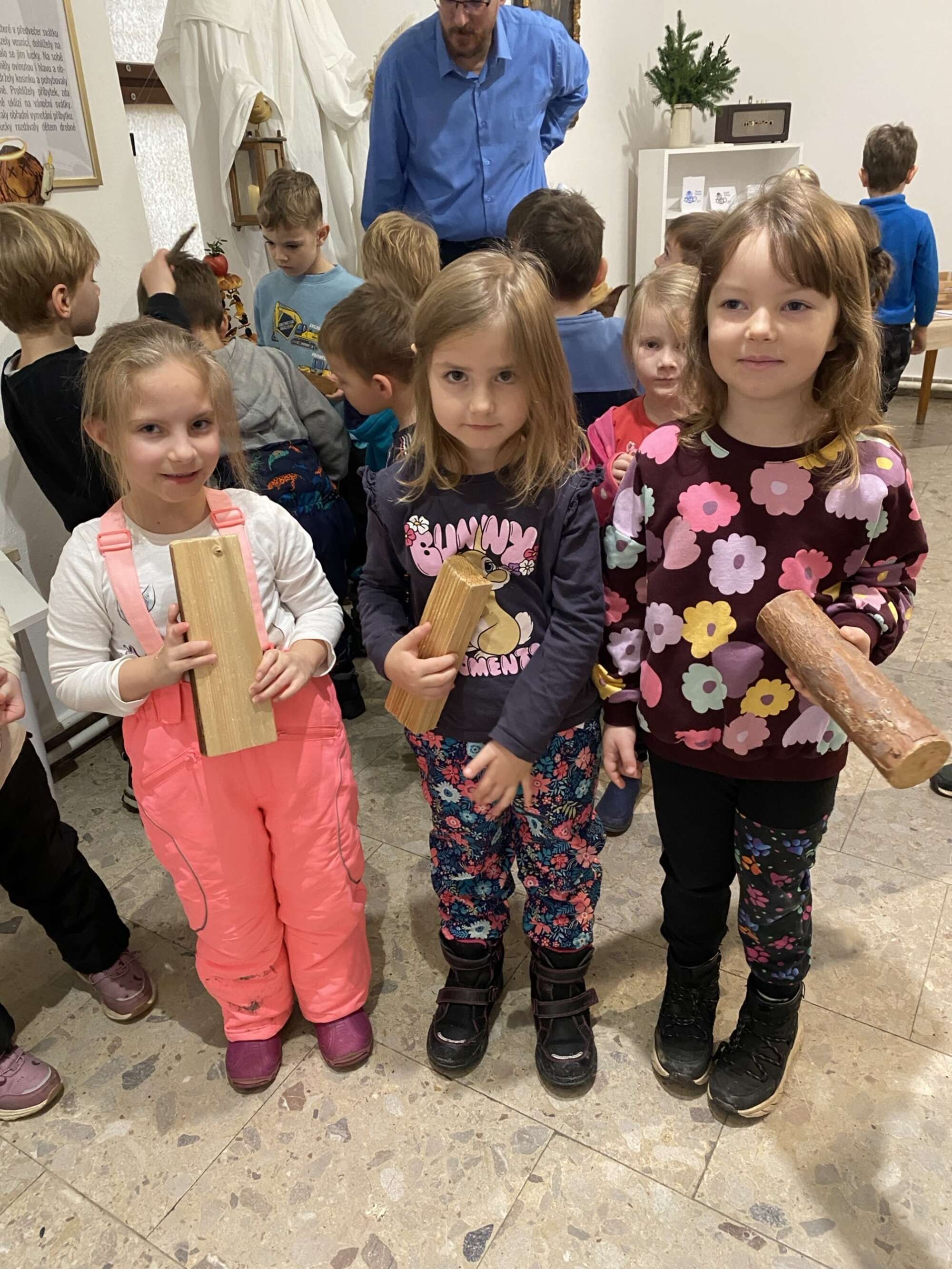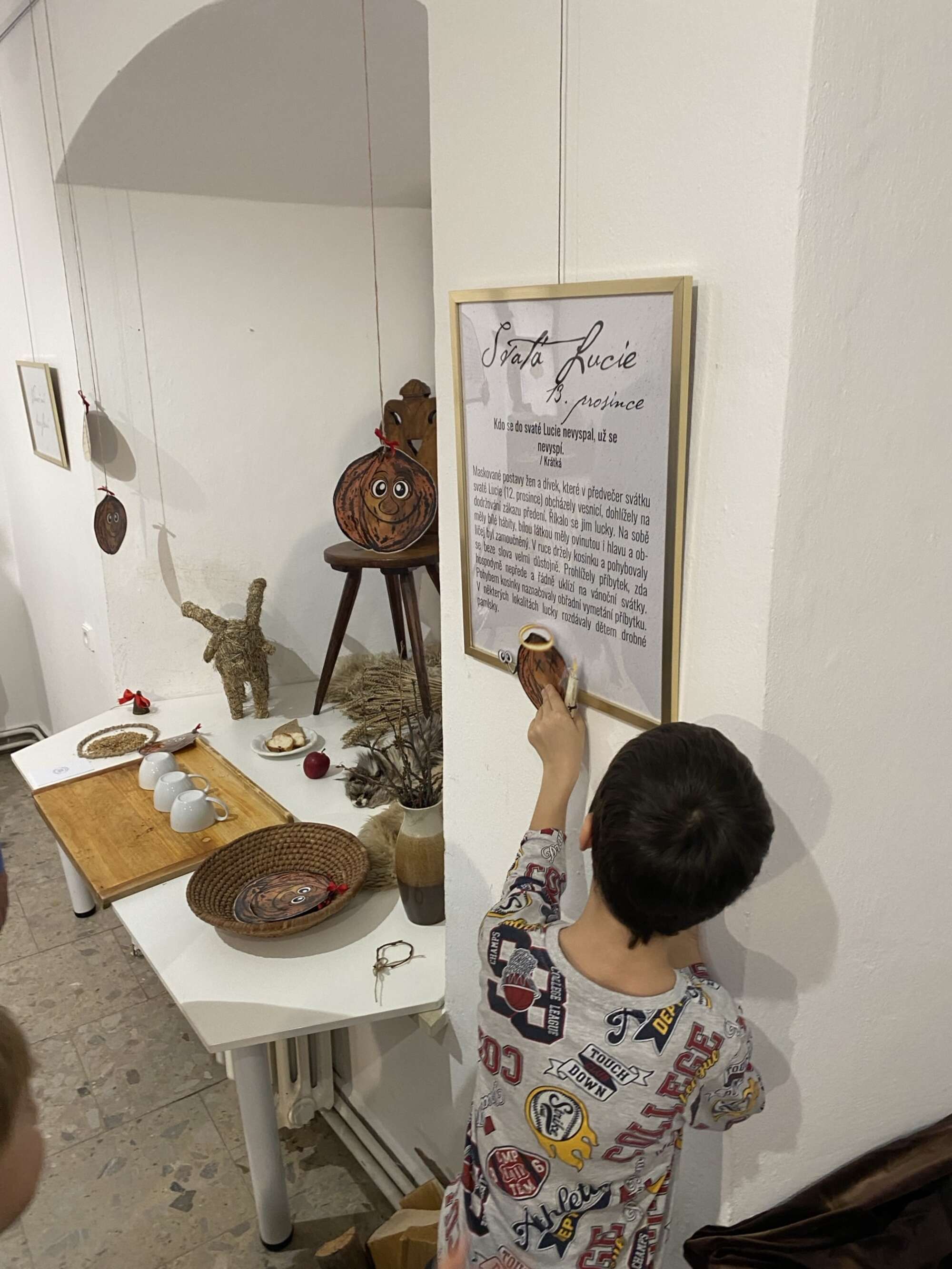 Výstavou děti provedla hravá postava vánočního vlašského oříšku.