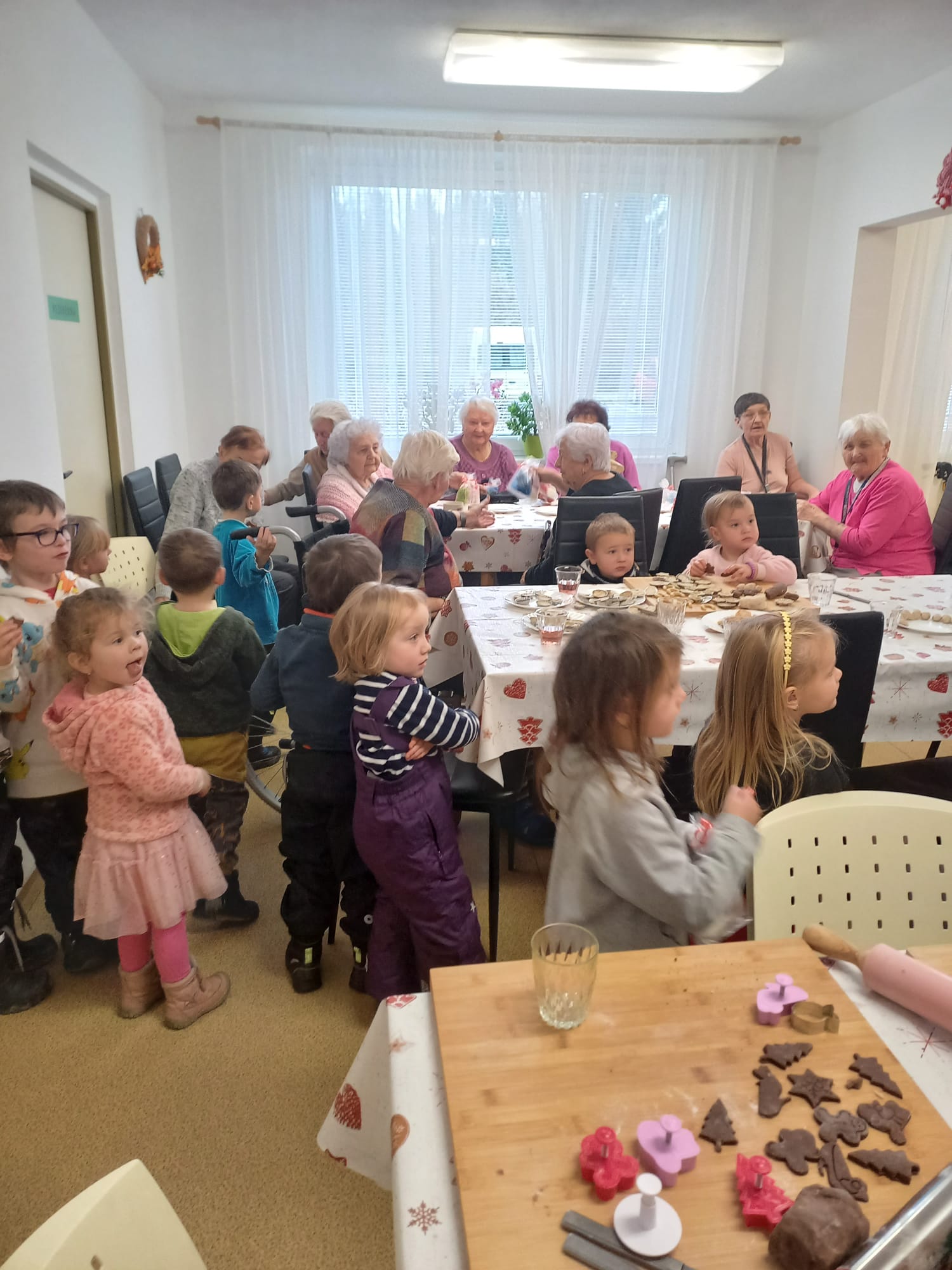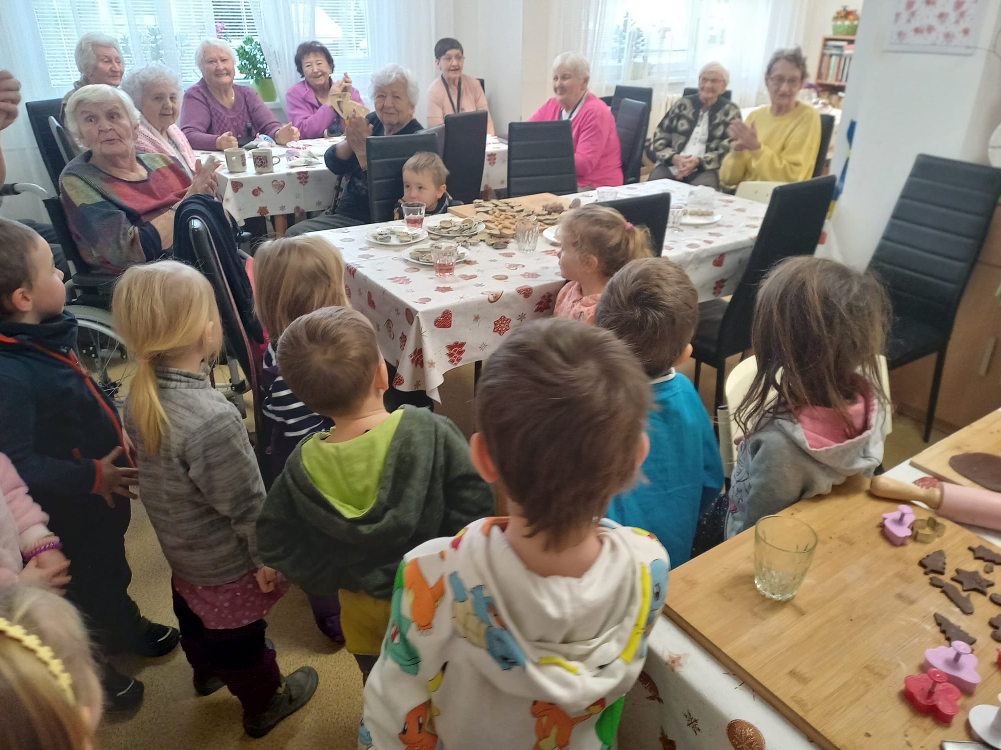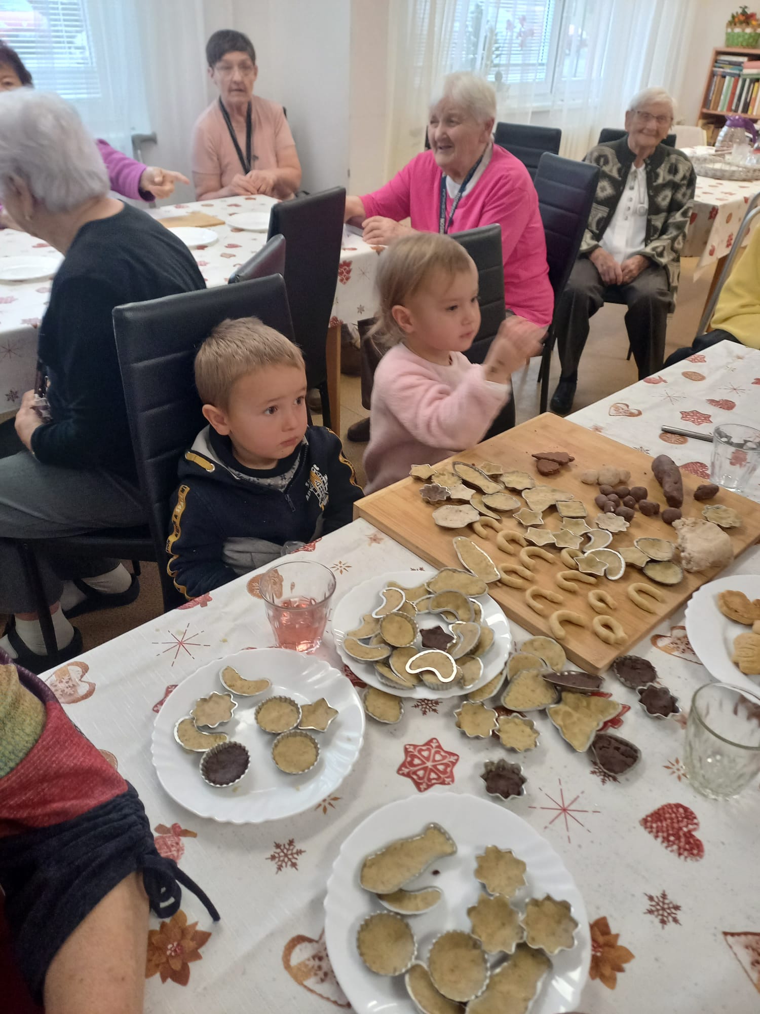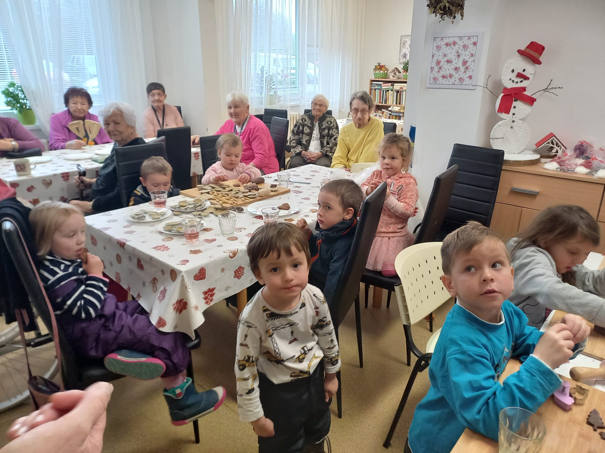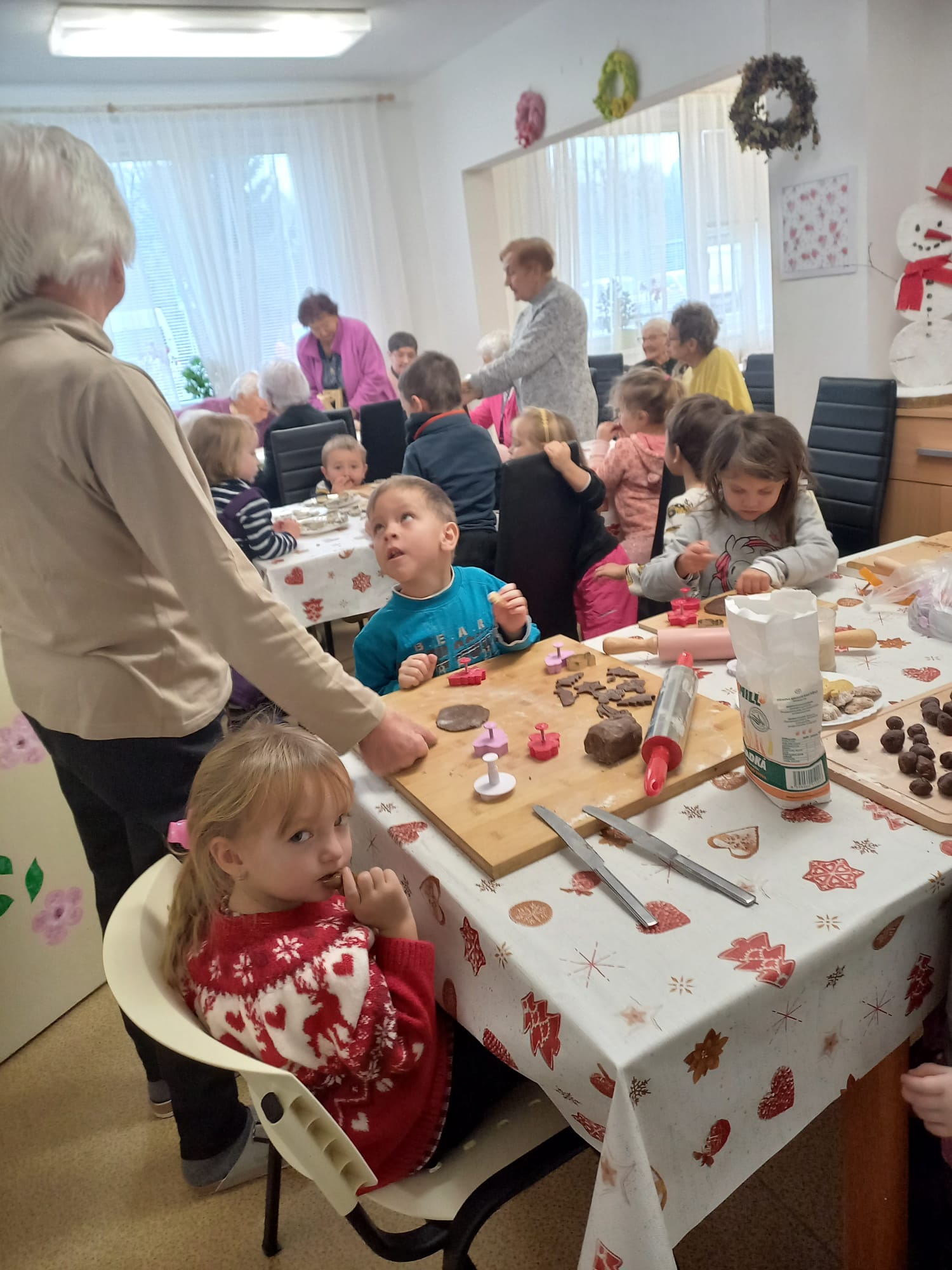 Děti svojí přítomností seniorům rozzářily úsměvy na tváři a společně s babičkami pekli vánoční cukroví, ochutnávali, povídali si a zpívali vánoční koledy.