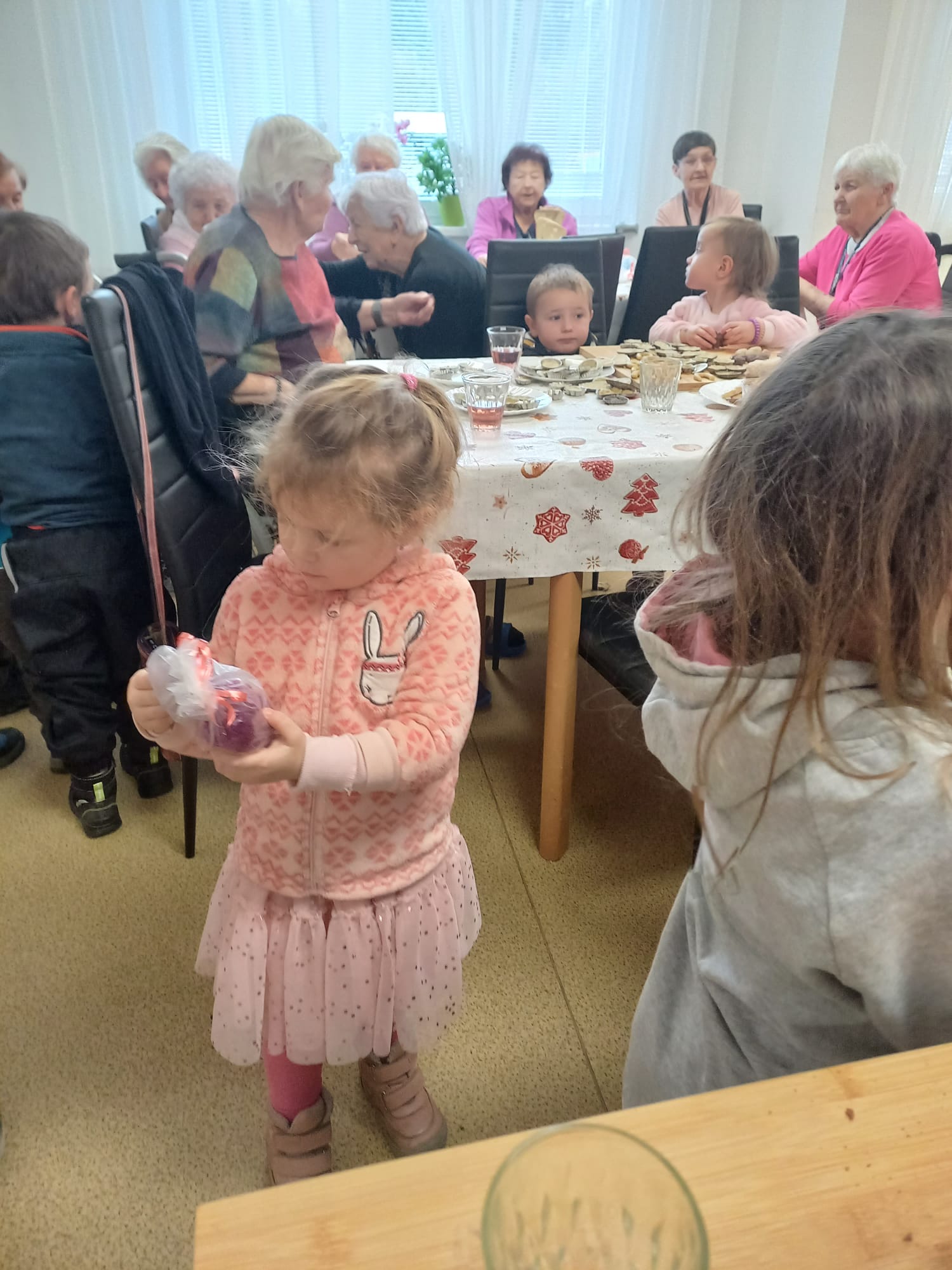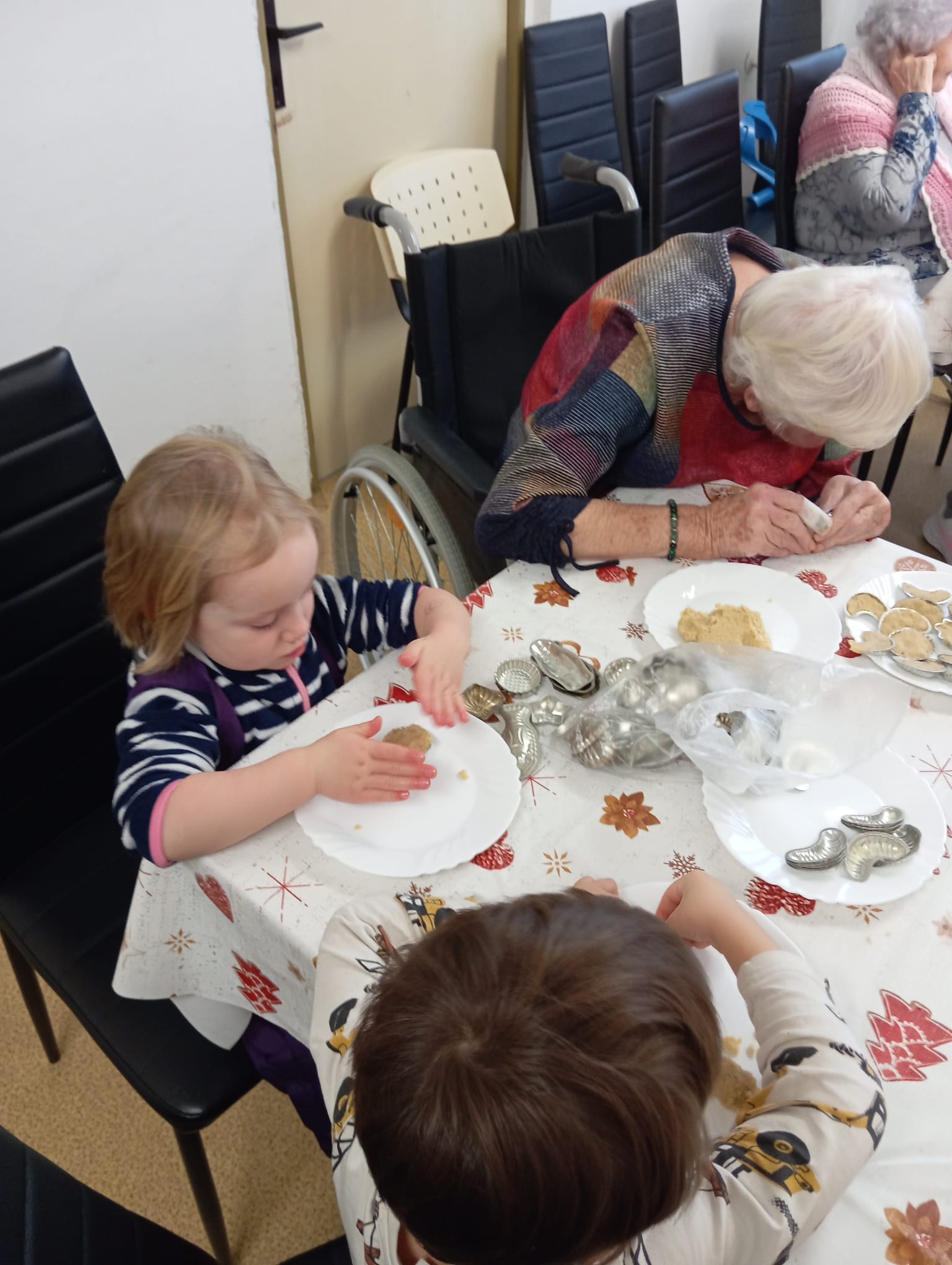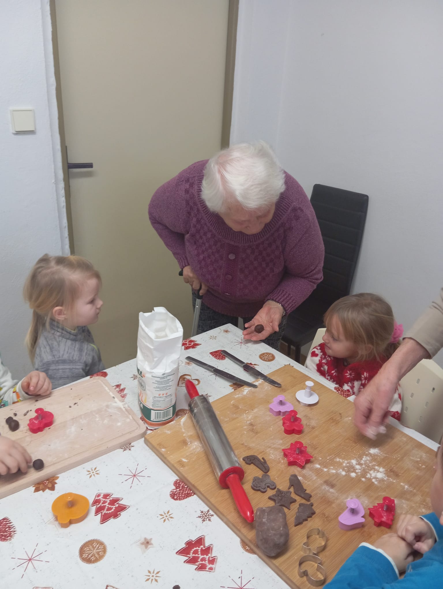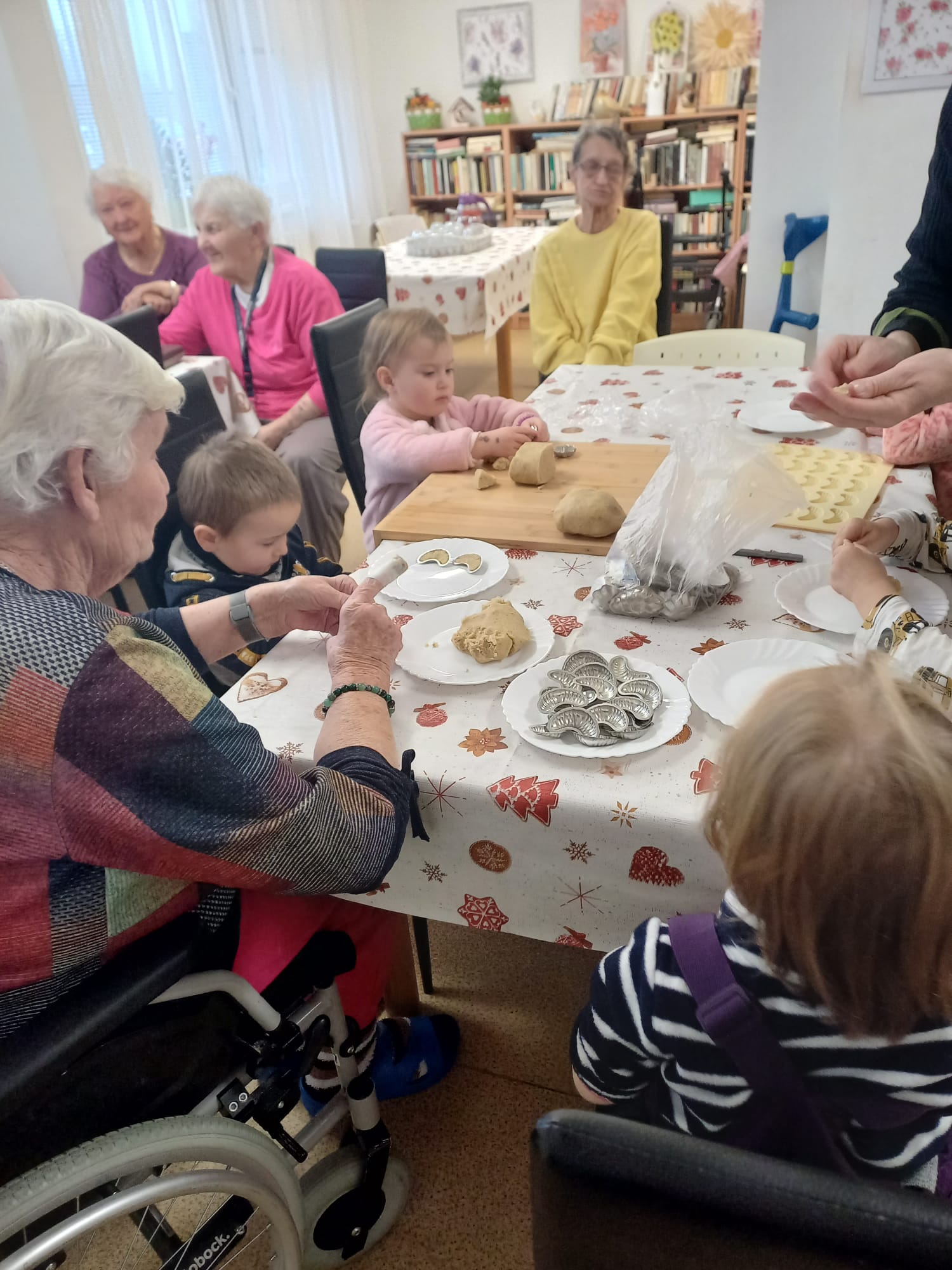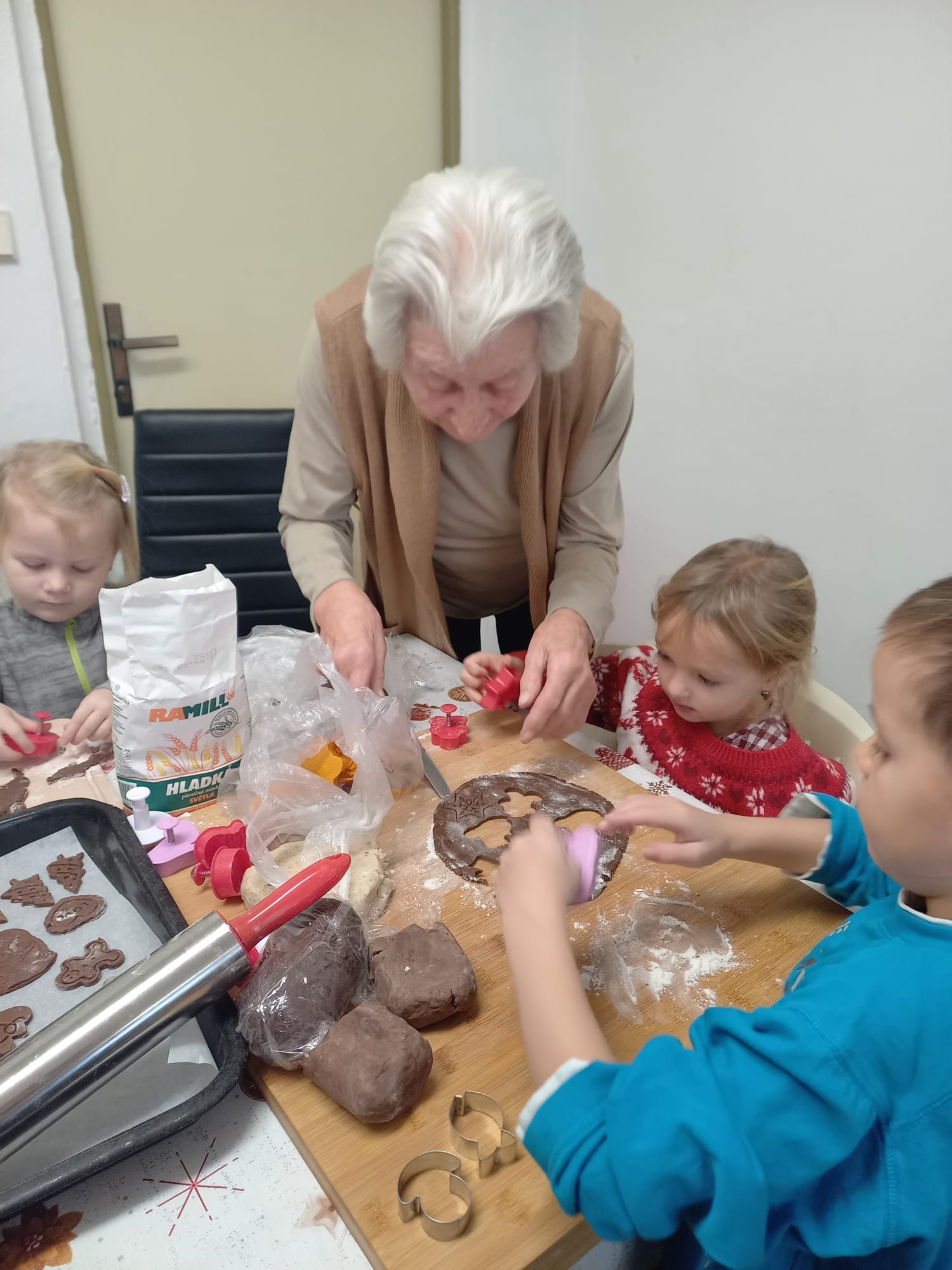 Děti svojí přítomností seniorům rozzářily úsměvy na tváři a společně s babičkami pekli vánoční cukroví, ochutnávali, povídali si a zpívali vánoční koledy.