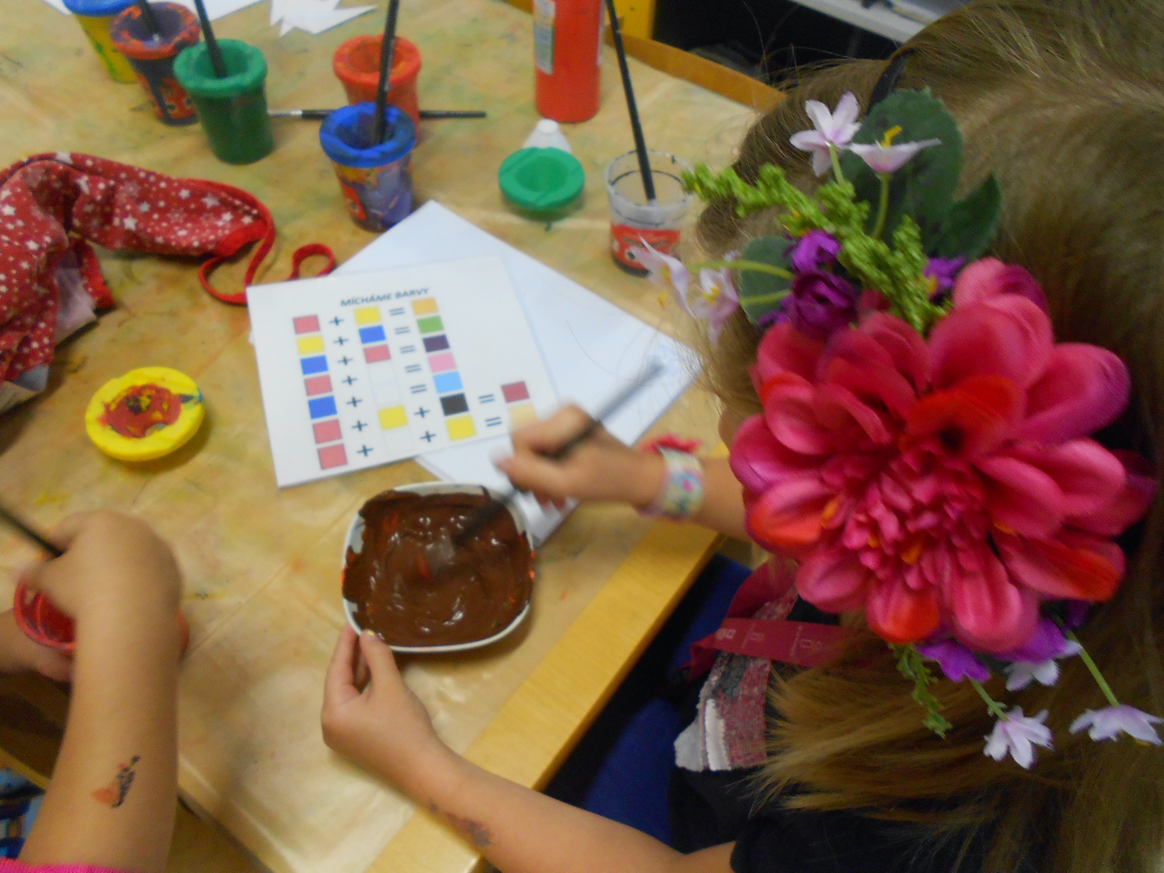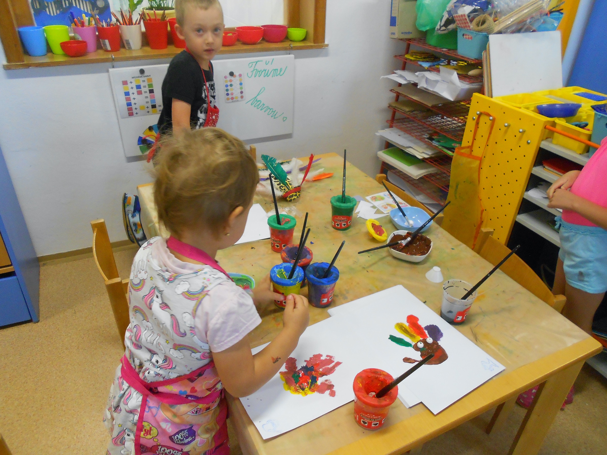 TVOŘILI - tisk ruky - hlava indiána ( barevná péra )