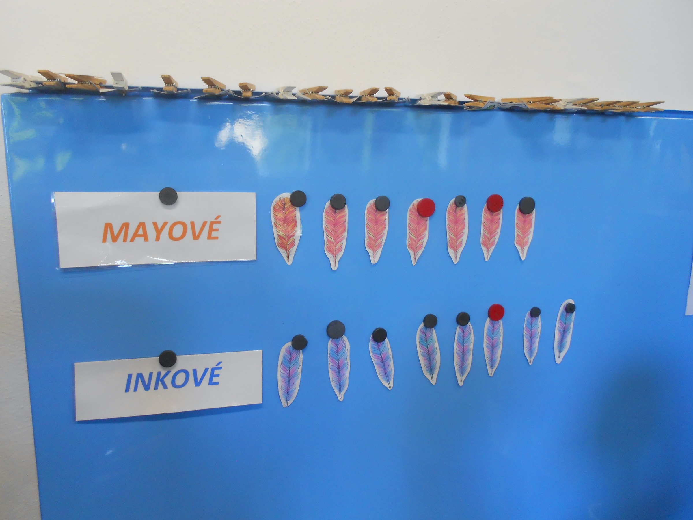 Soutěžily o to, který z nich je rychlejší, umí lépe lovit, střílet z luku,....jejich oceněním bylo získání barevných per. Zvítězil kmen Mayů o jedno červené pírko. Avšak náčelníci obou kmenů vykouřili dýmku míru a kmeny se udobřily.