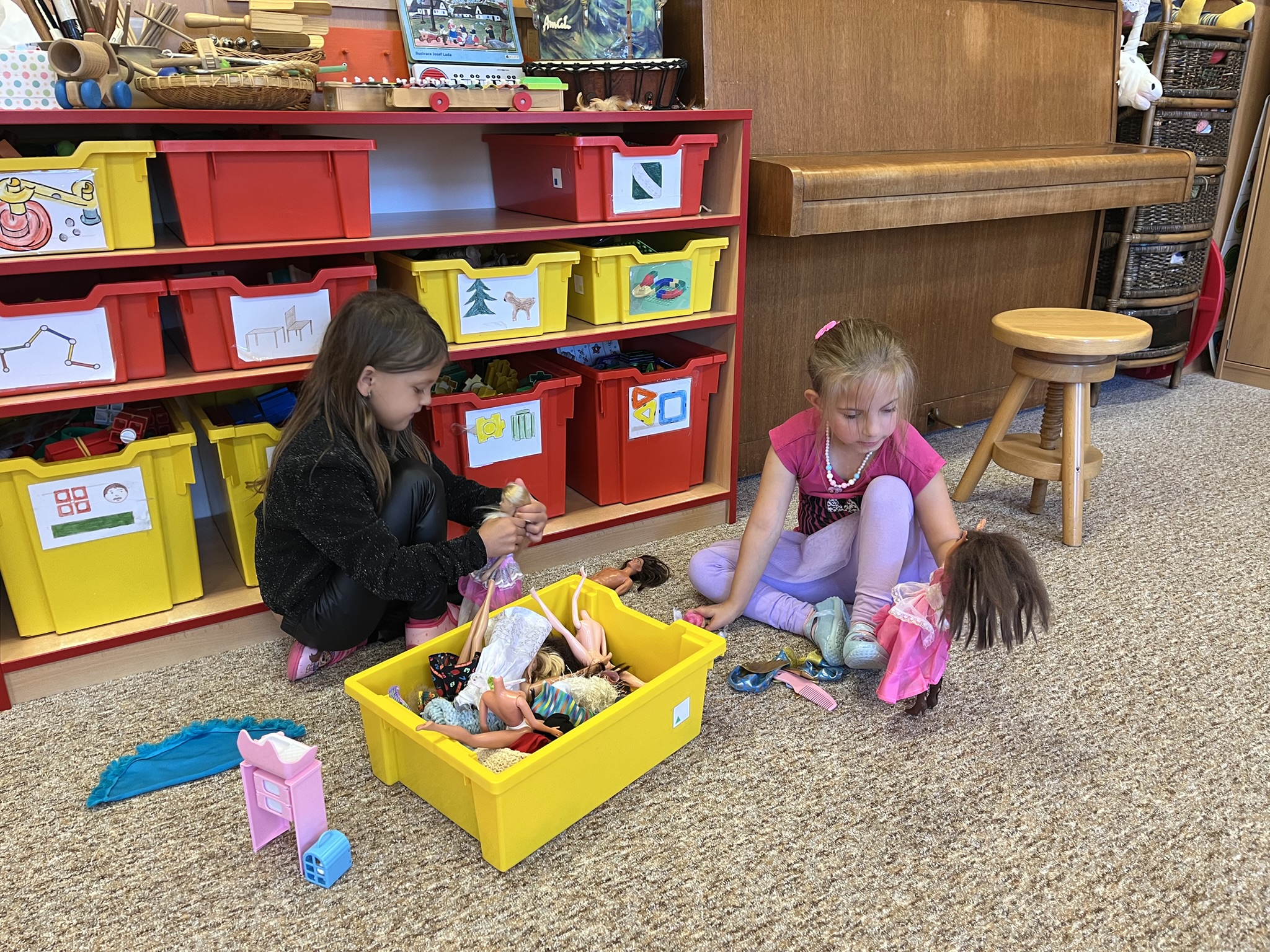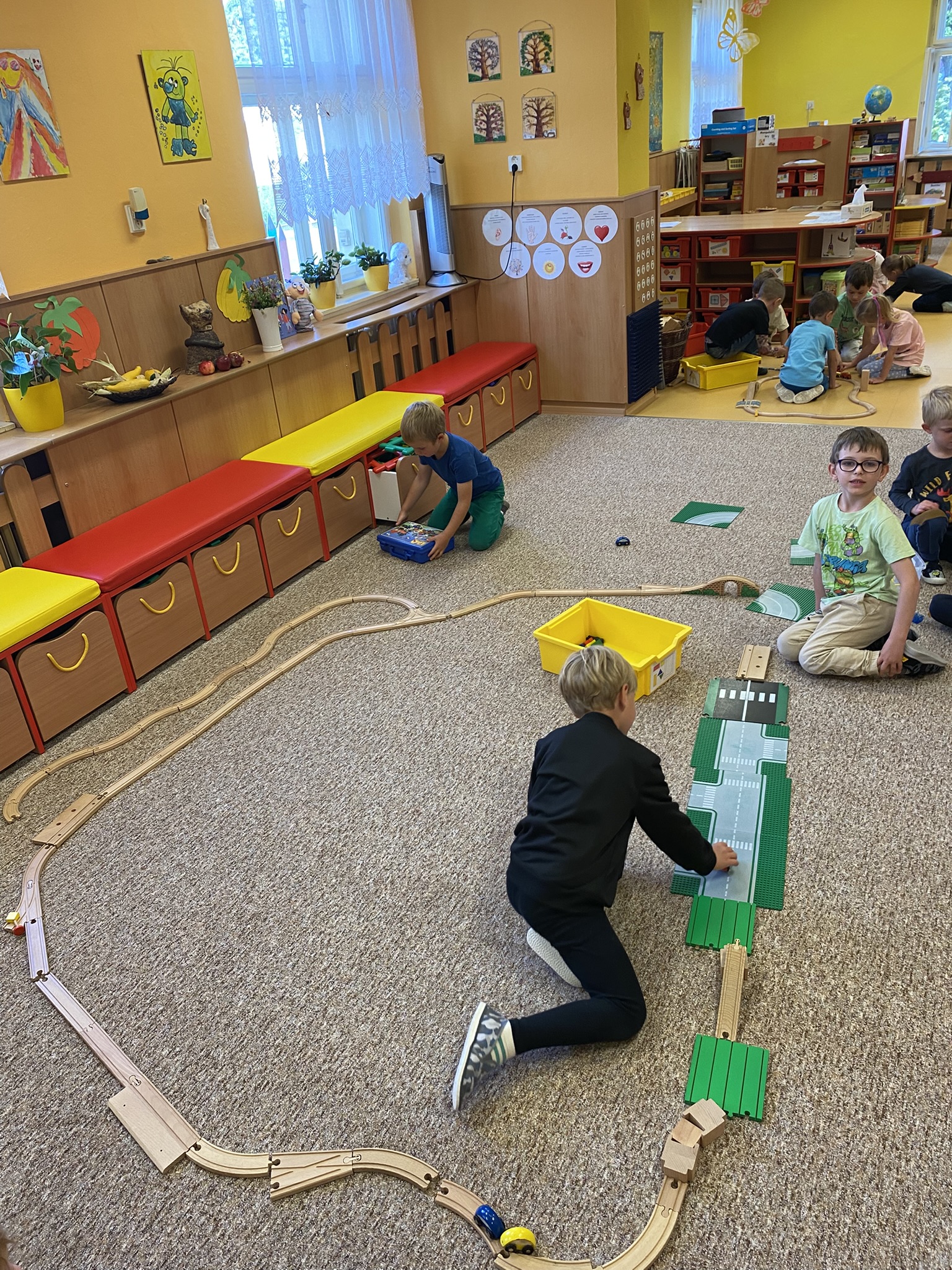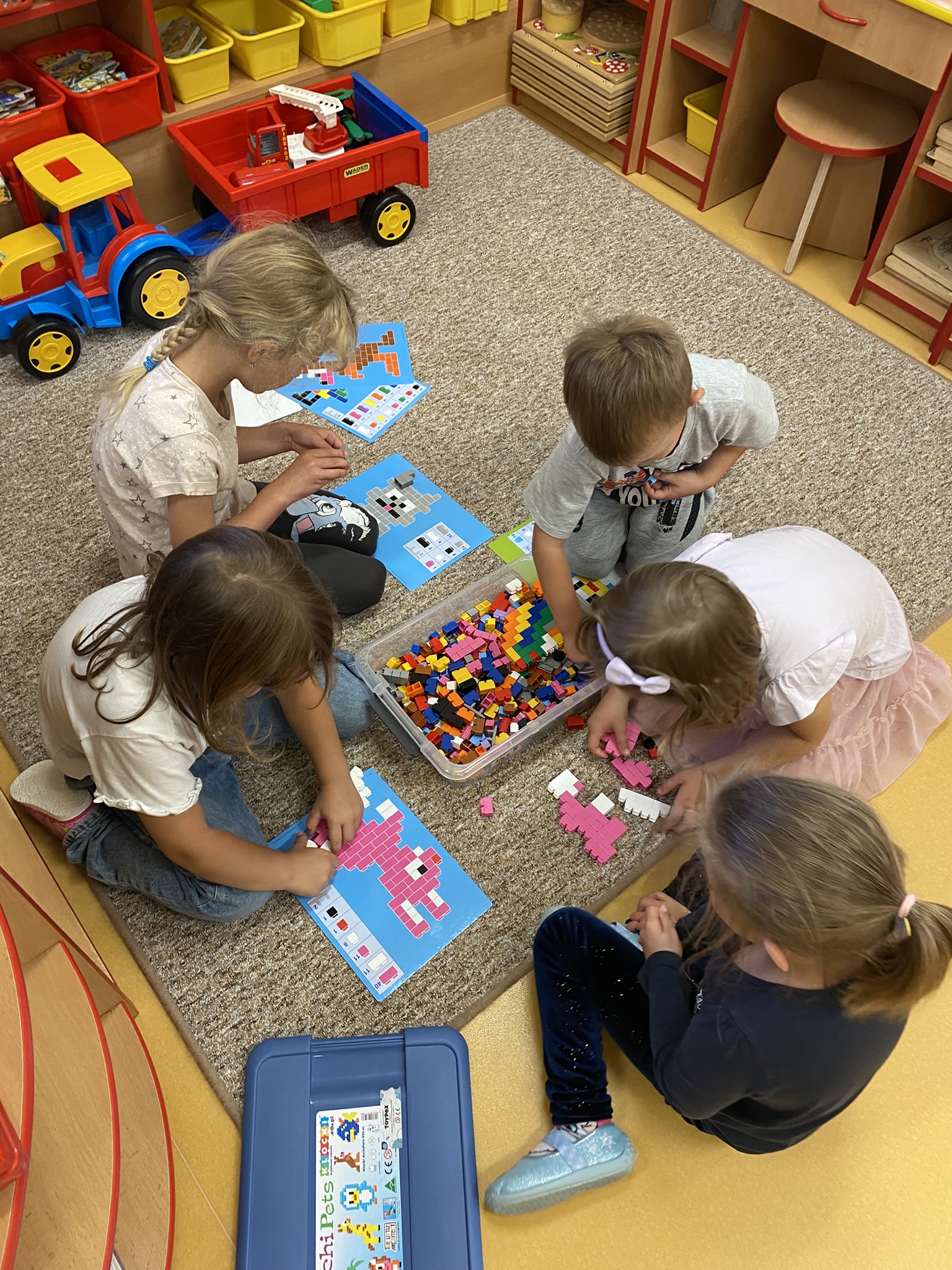 Velkou radost jim přinášely hry ve třídě, kde si mohly vyzkoušet různé koutky center aktivit, stavebnice, pomůcky a postupně objevovaly další nové hračky.