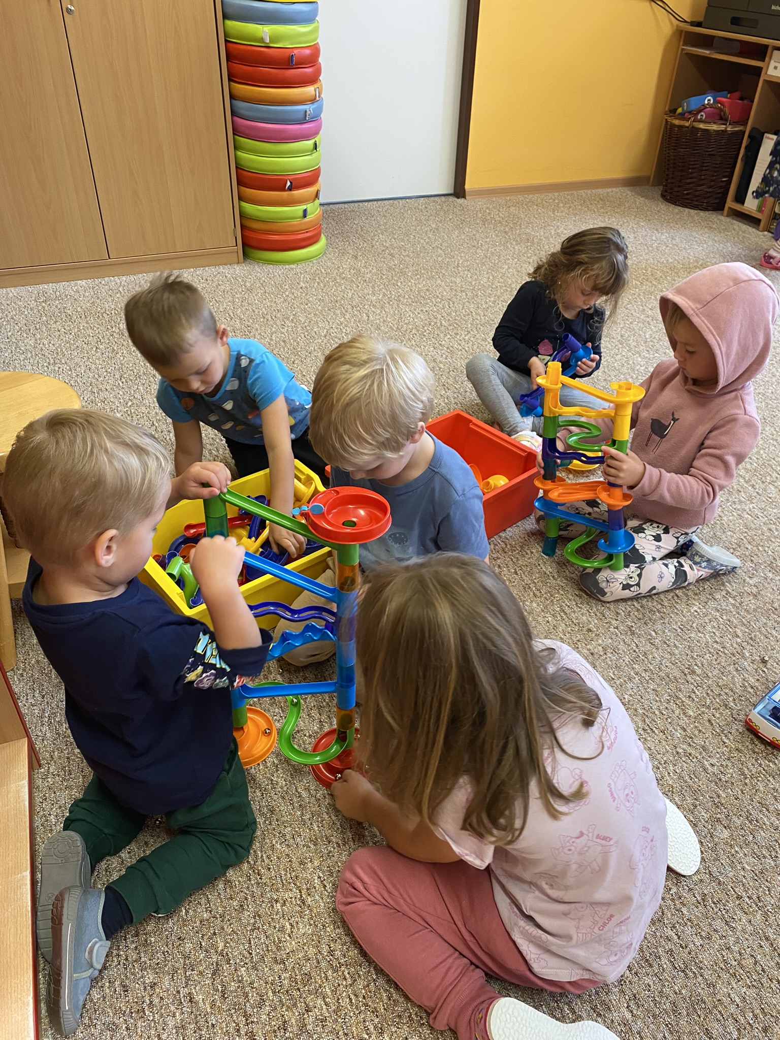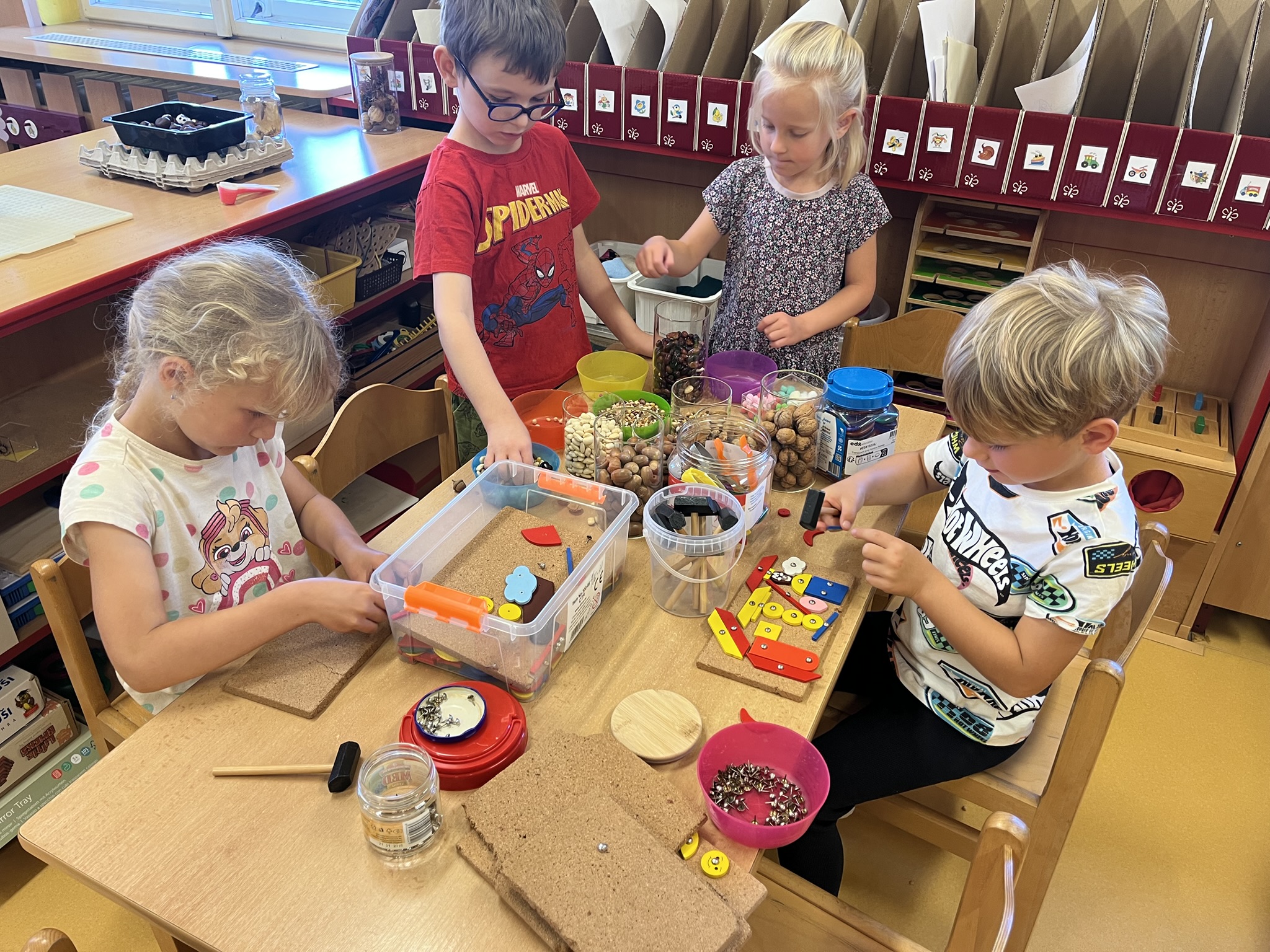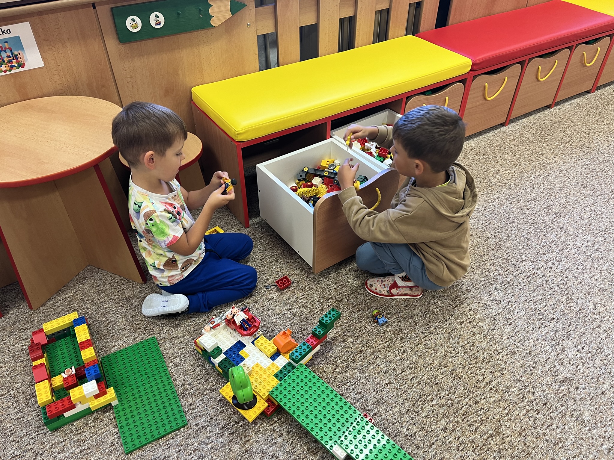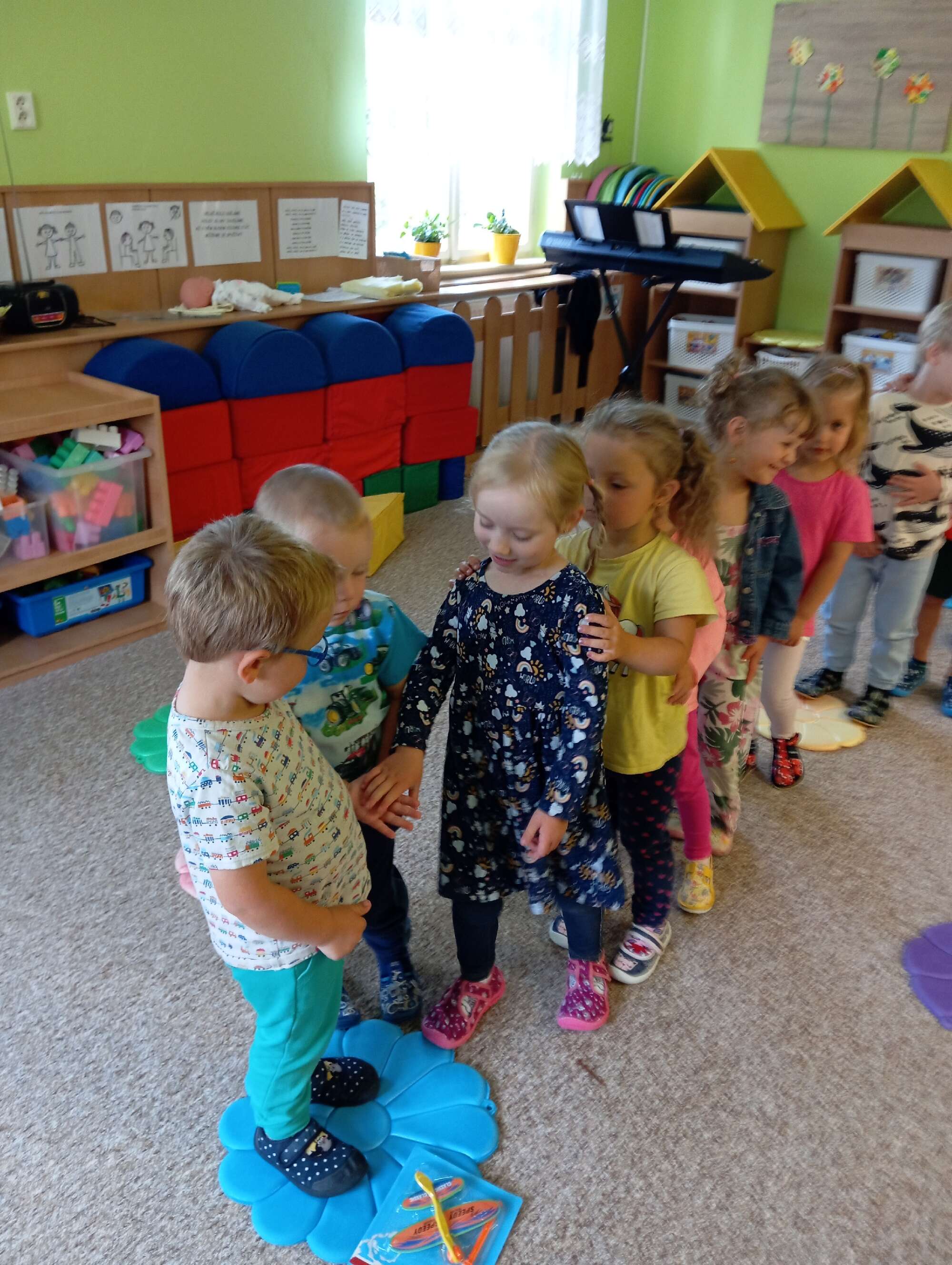 Velkou radost jim přinášely hry ve třídě, kde si mohly vyzkoušet různé koutky center aktivit, stavebnice, pomůcky a postupně objevovaly další nové hračky.