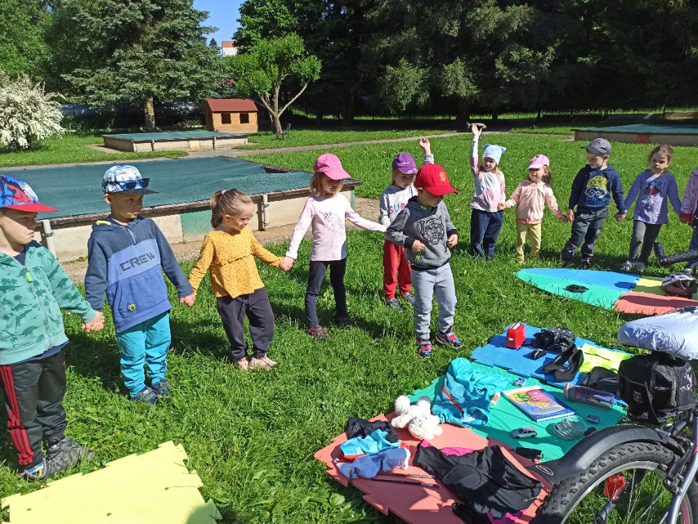 Ve čtvrtek jsme měli den dopravní, kde jsme plnili spoustu úkolů a dozvěděli se, co vše u sebe musí mít správný cyklista. Za odměnu jsme si u nás v Beruškách dali výborné nanuky.