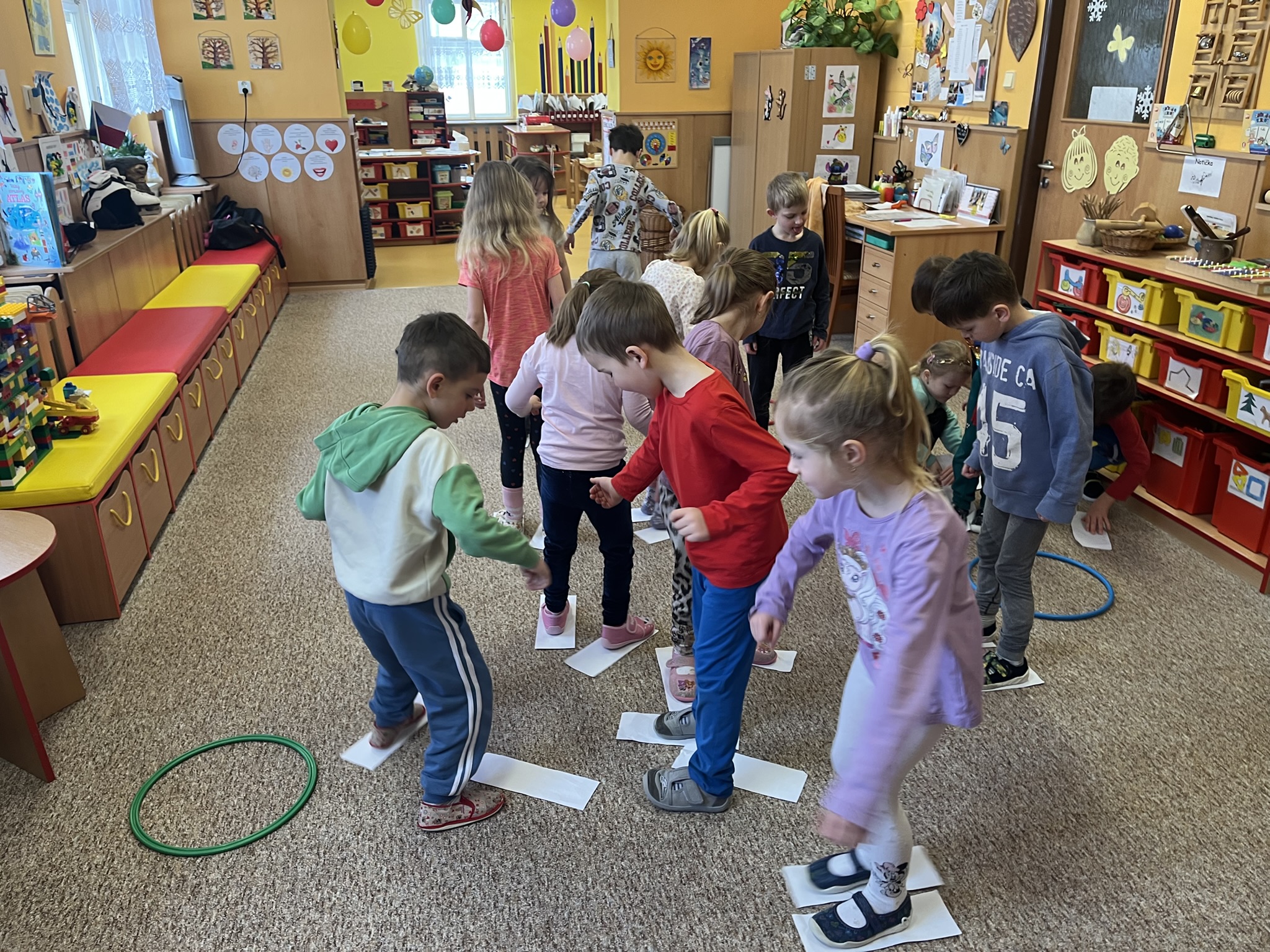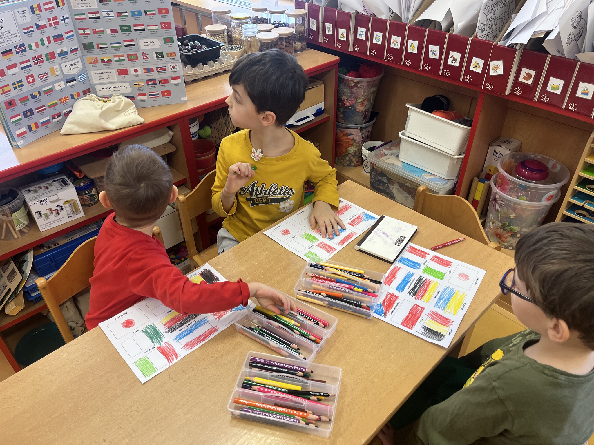 V centrech aktivit si děti procvičily grafomotoriku, zrakovou percepci, jemnou motoriku a barvy na vlajkách.