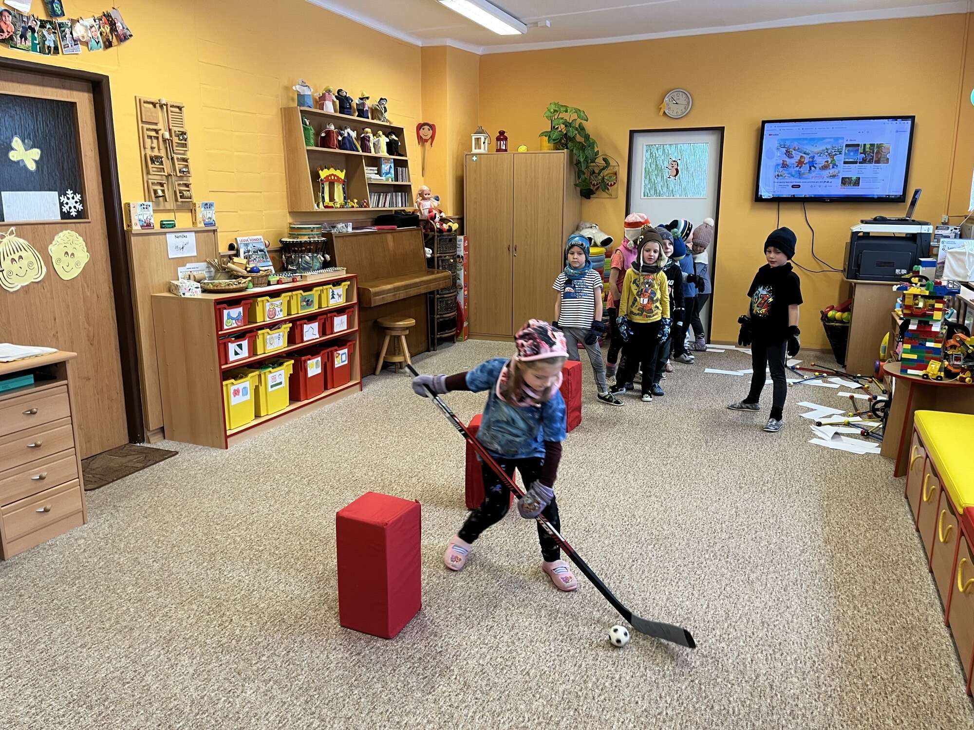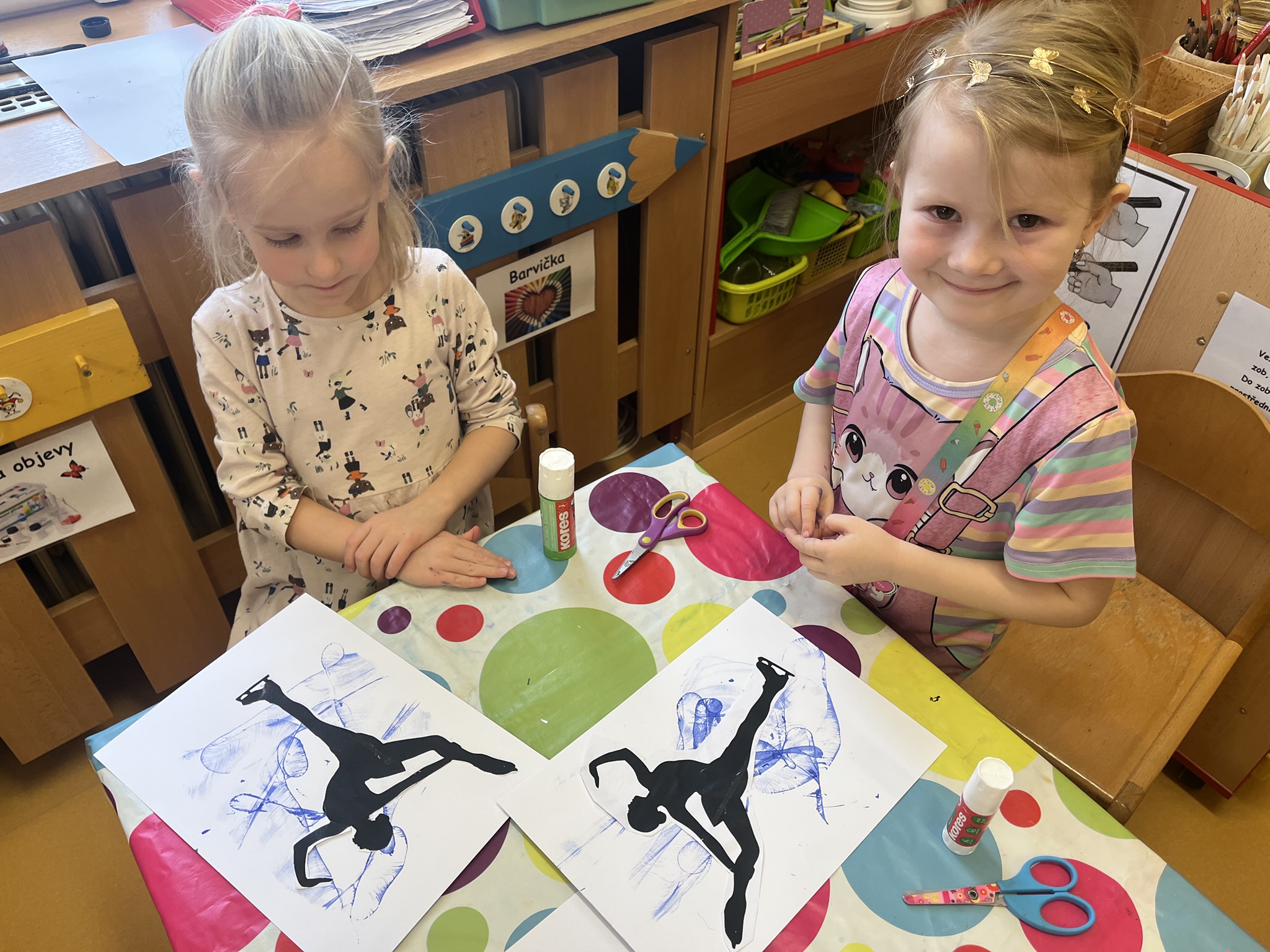V centru „Barvička“ dokonce vytvořily krásnou „ledovou plochu“ pro své malé sportovce — a při tvoření se skvěle bavily.