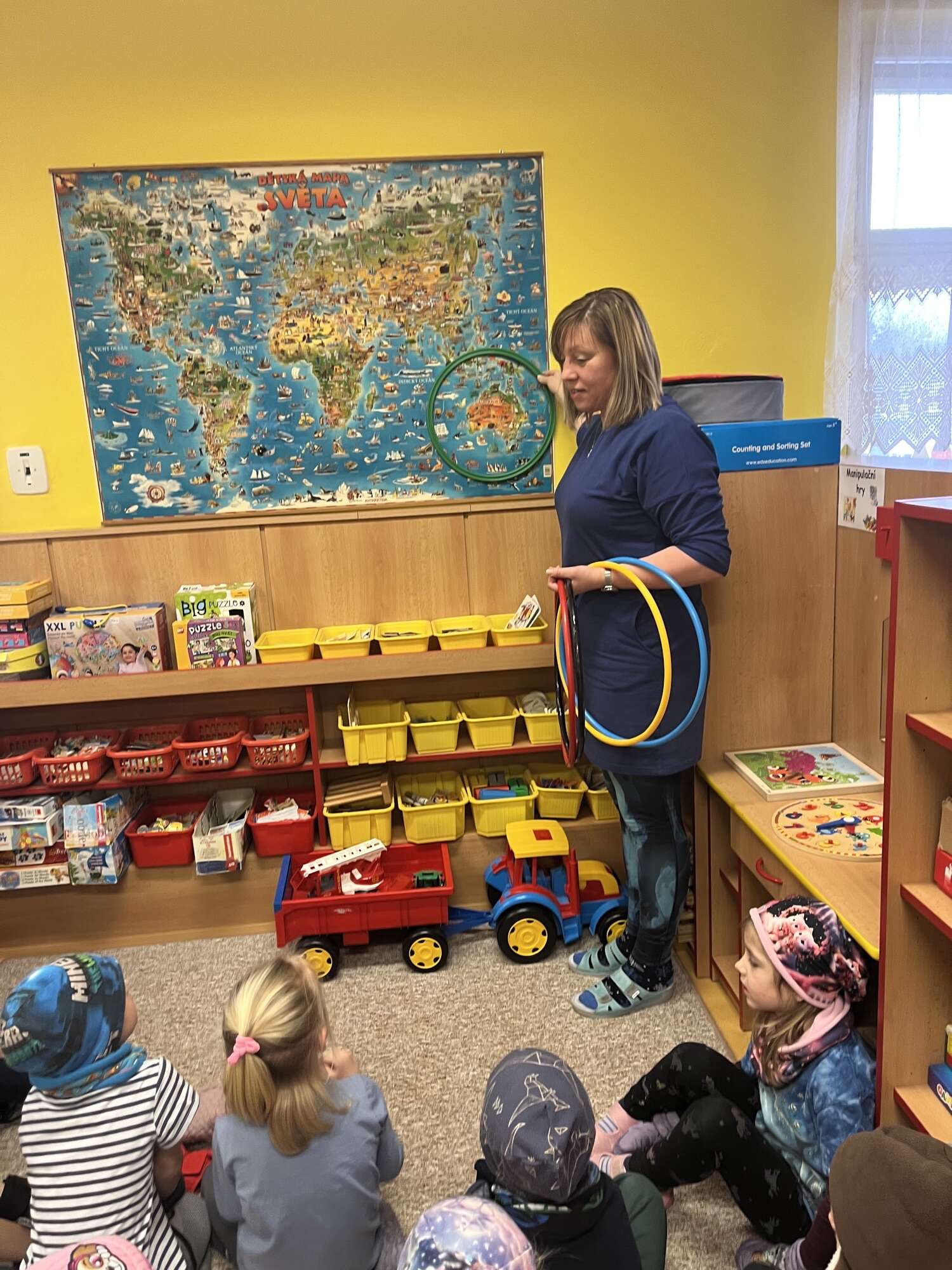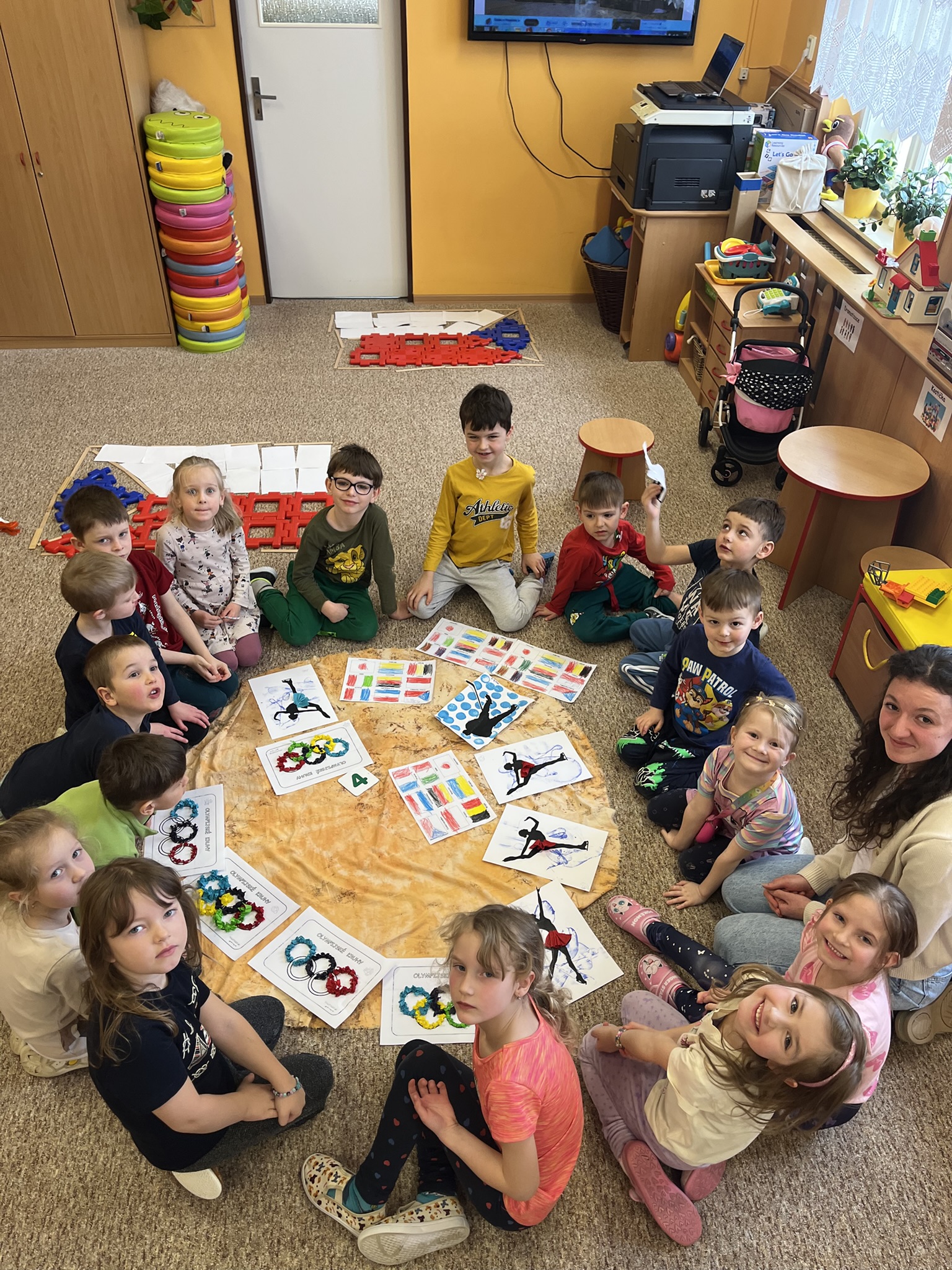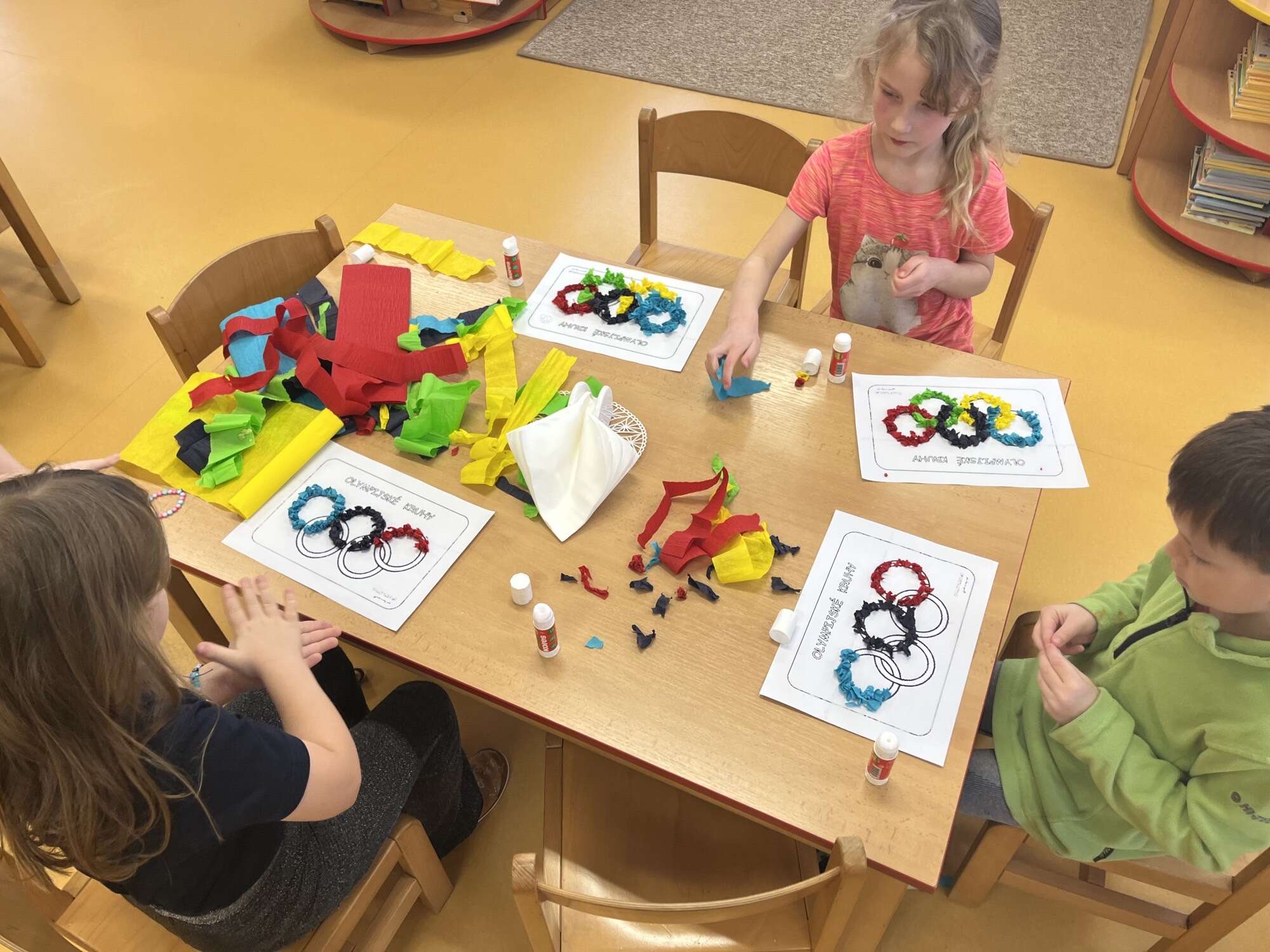 Děti se hravou formou seznamovaly s olympijskými kruhy – naučily se jejich barvy ve správném pořadí i přiřazovat barvu ke kontinentu.