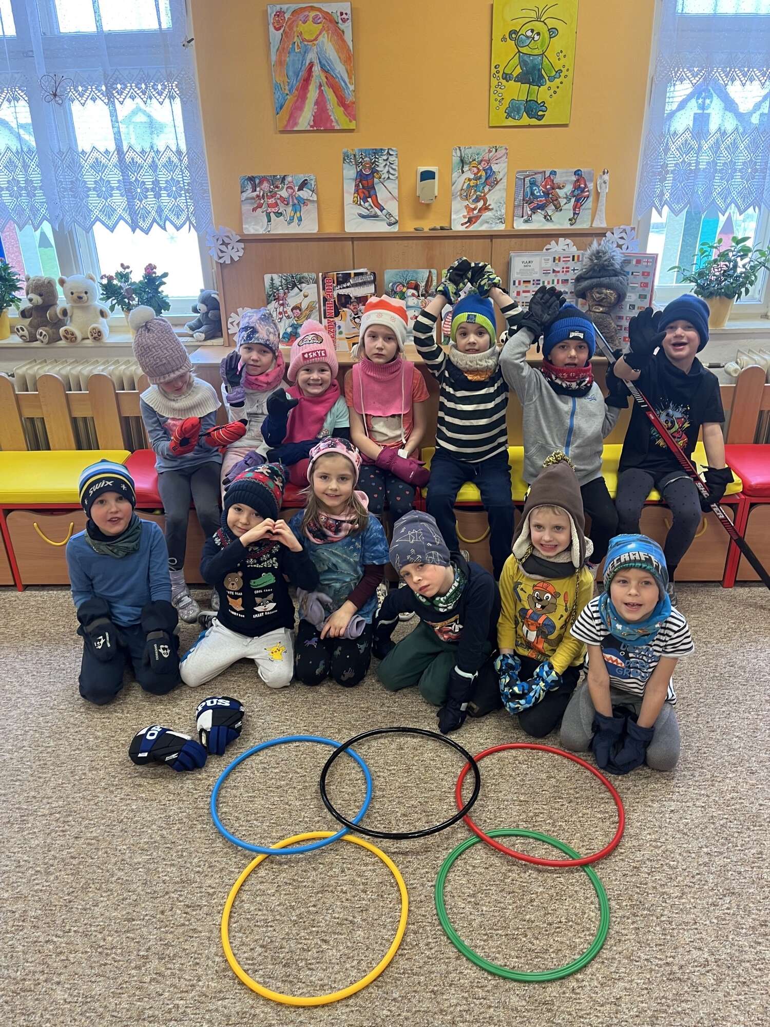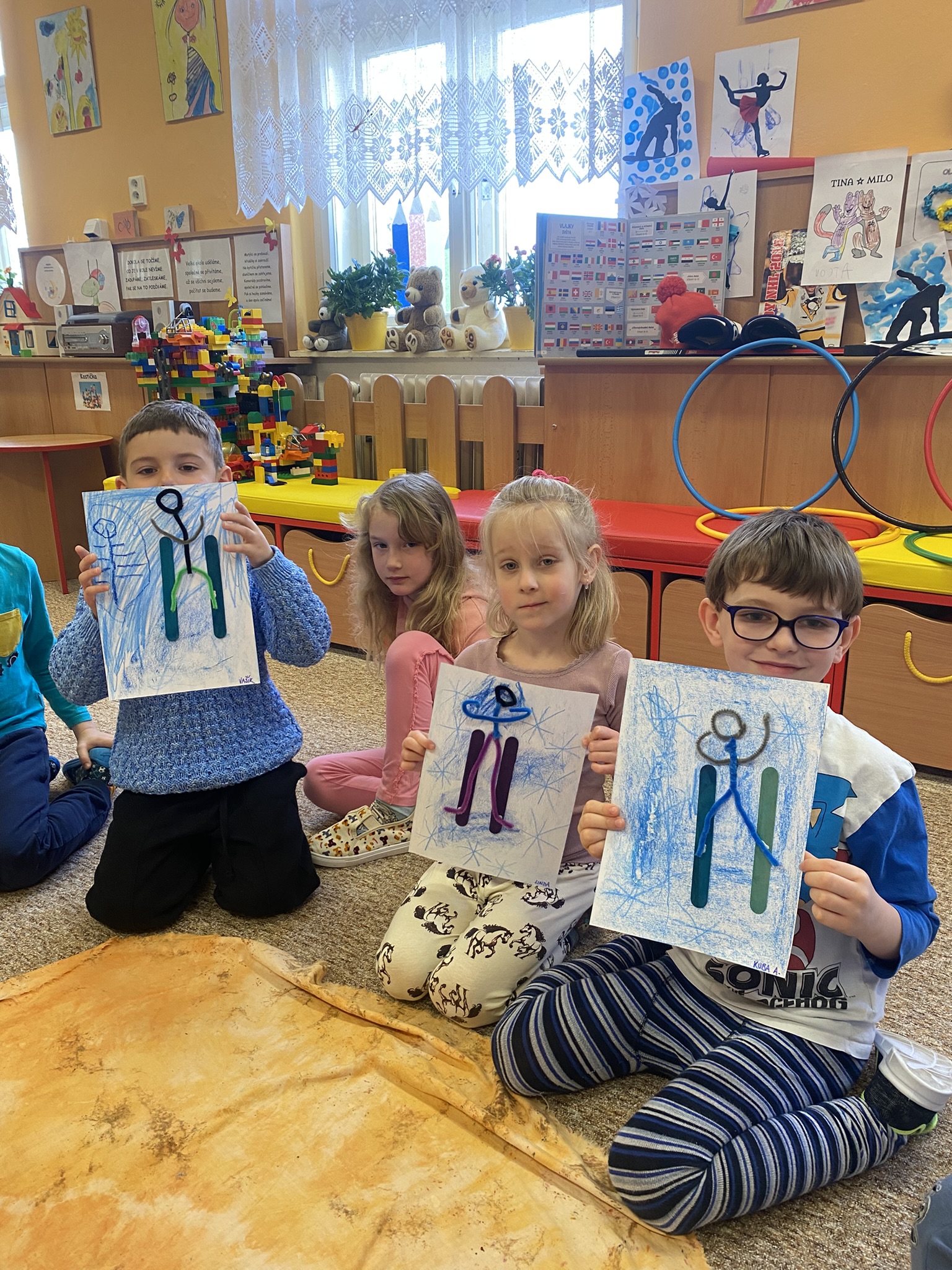 Společně jsme objevovali různé vlajky zemí, poznávali zimní olympijské sporty a učili se, jaké vybavení který sportovec potřebuje.